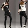 N7928# stretch pants-dark blue, N7928# stretch pants-Black, N7928-black fleece-lined