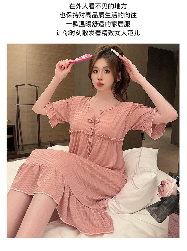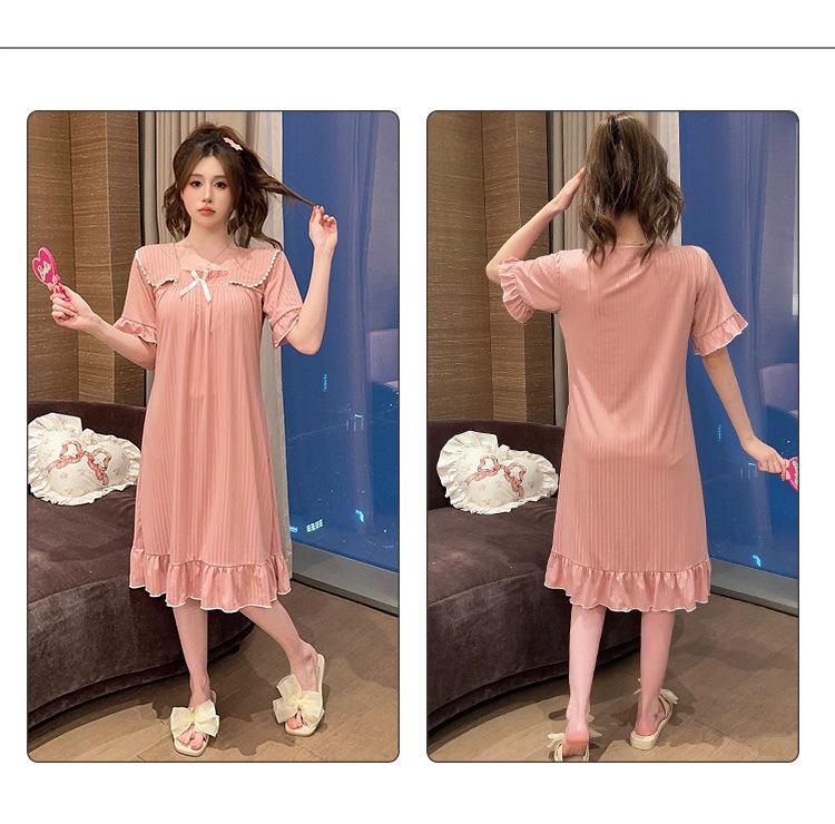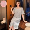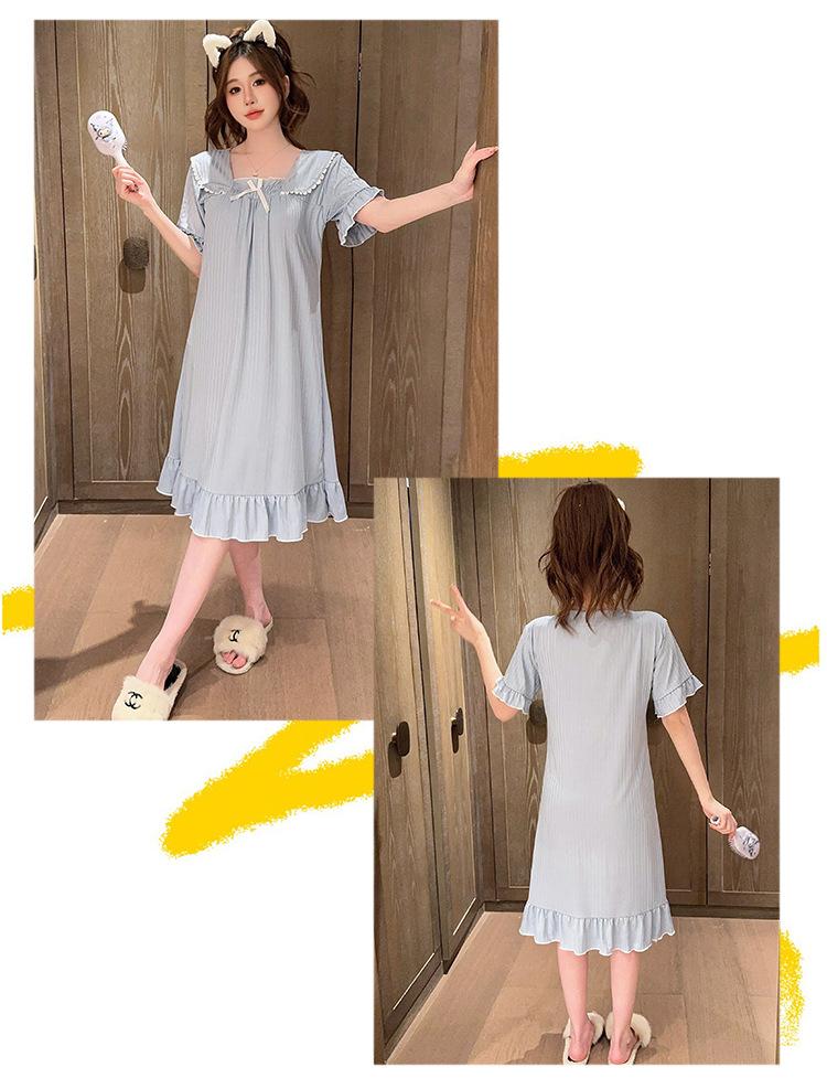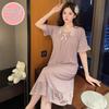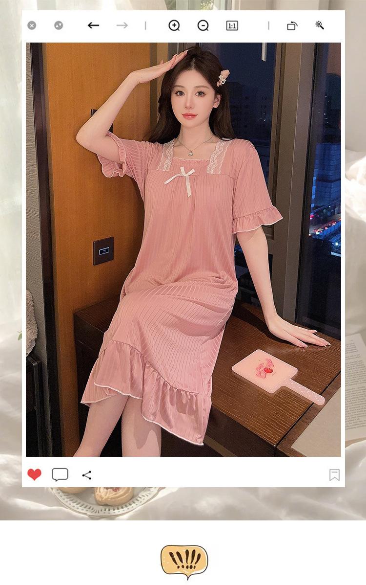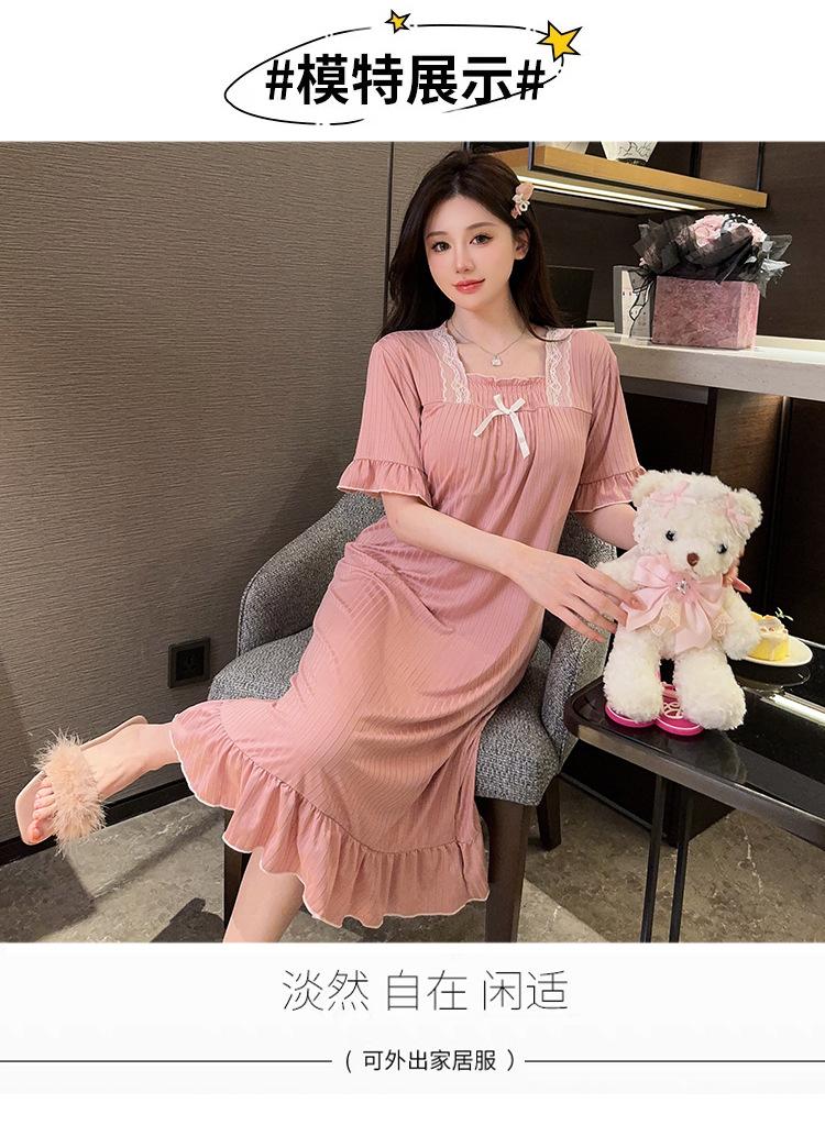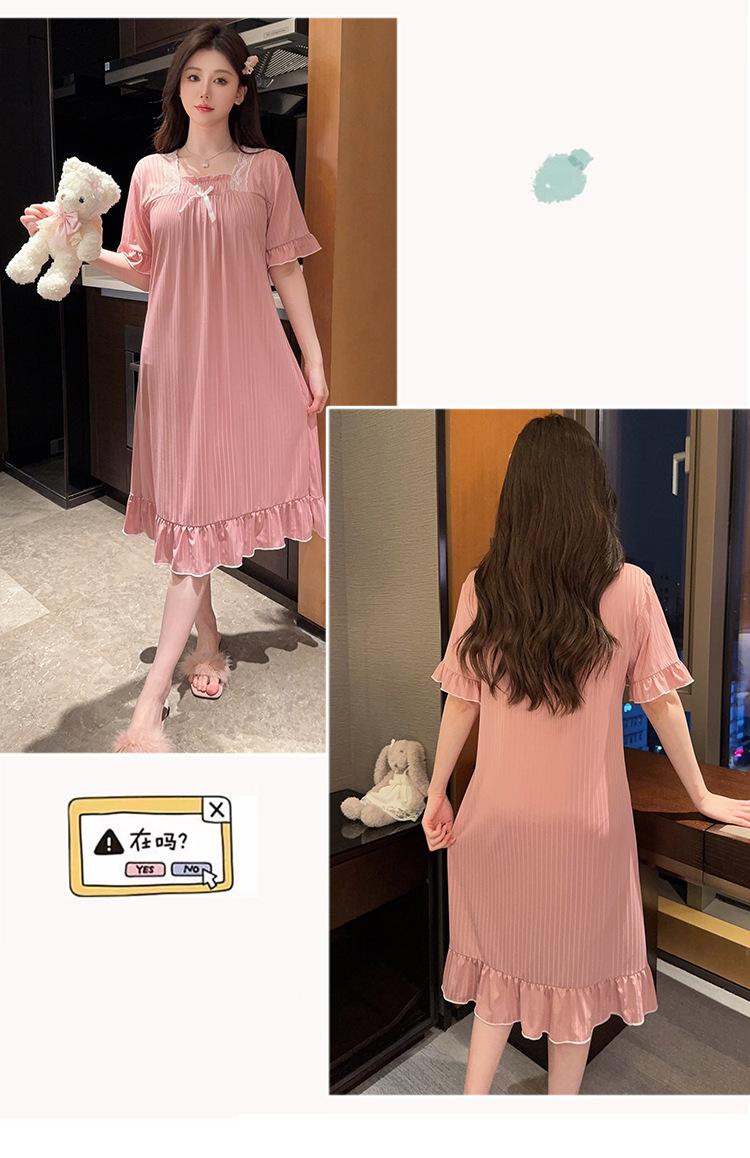 Camisón de Verano Transfronterizo para Mujer Lindo Dulce Almohadilla en el Pecho Largo Medio Suelto Talla Extra para Chica Gordita Ropa para el Hogar