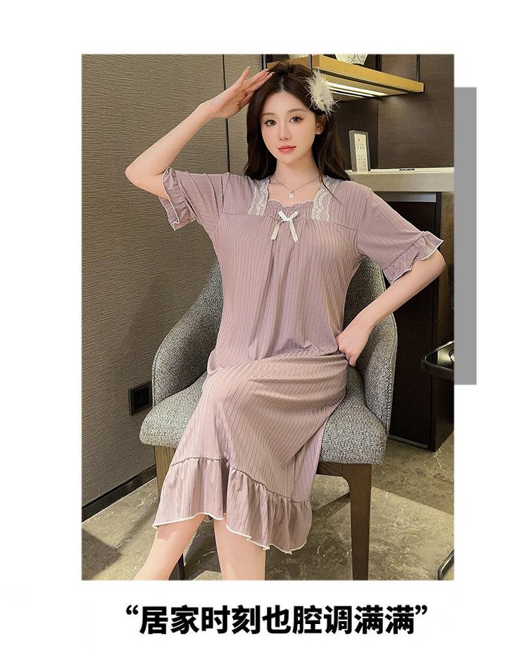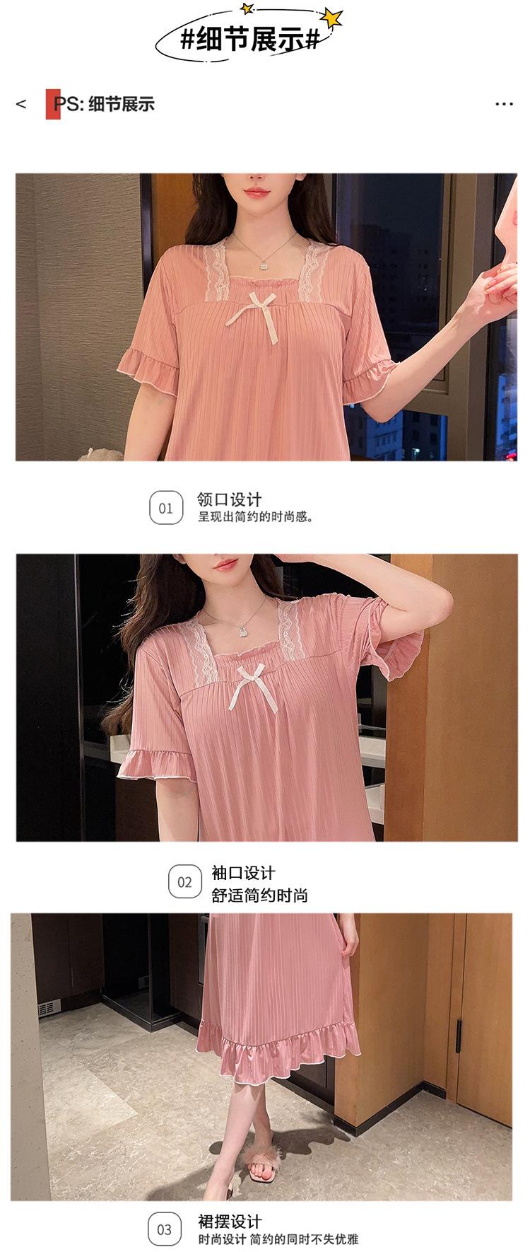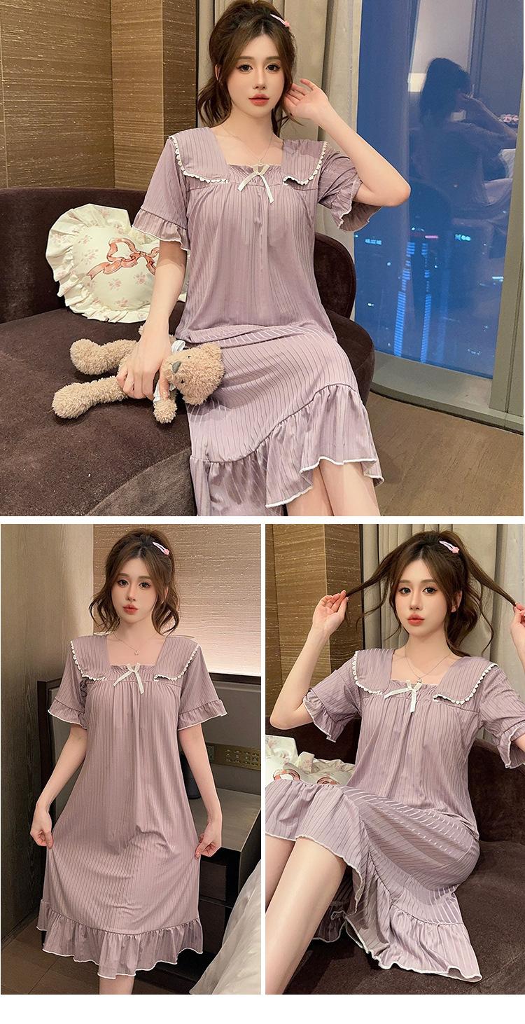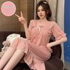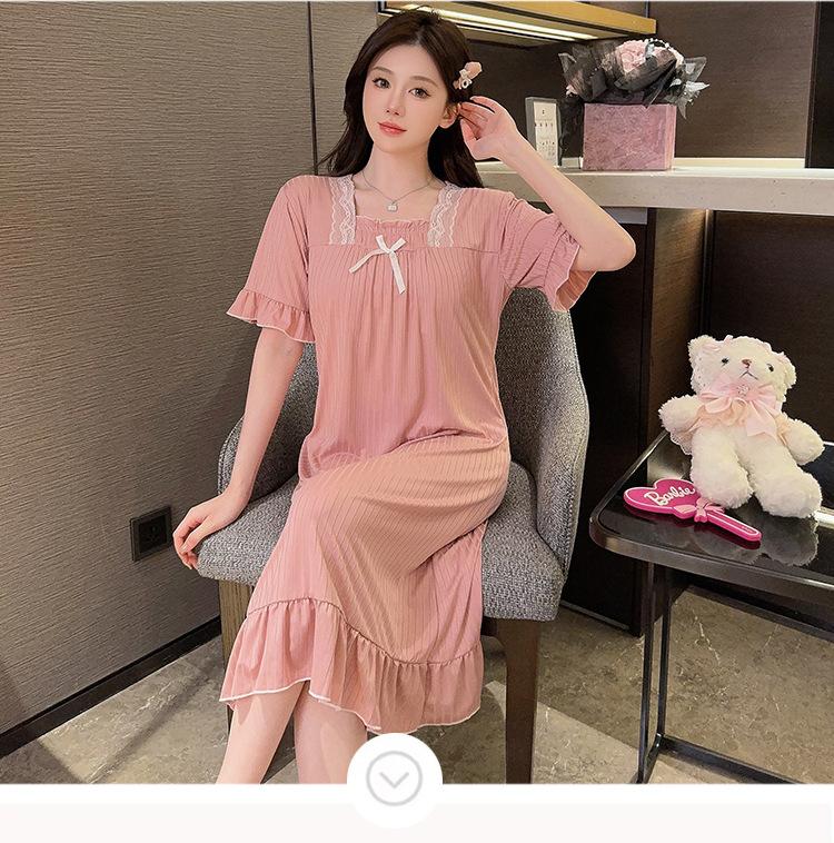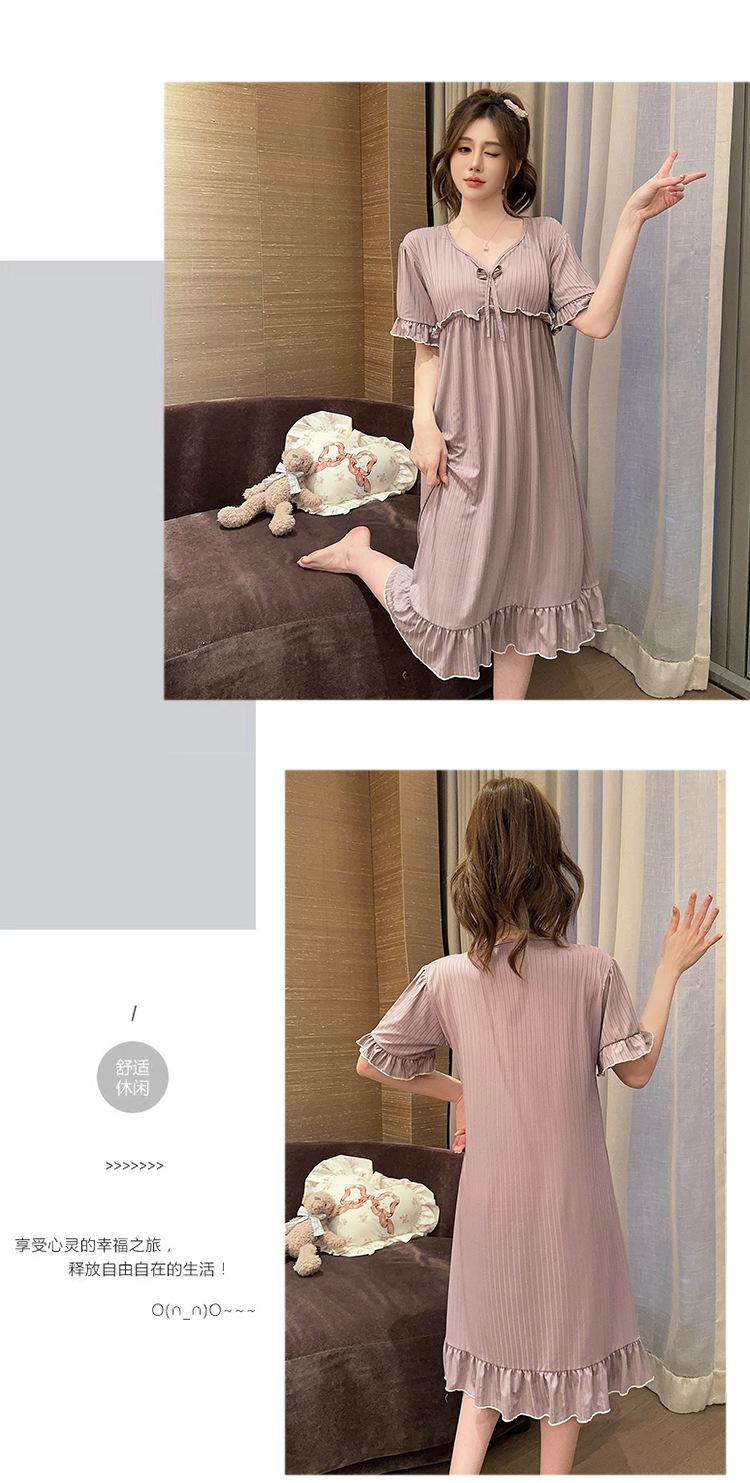 Camisón de Verano Transfronterizo para Mujer Lindo Dulce Almohadilla en el Pecho Largo Medio Suelto Talla Extra para Chica Gordita Ropa para el Hogar