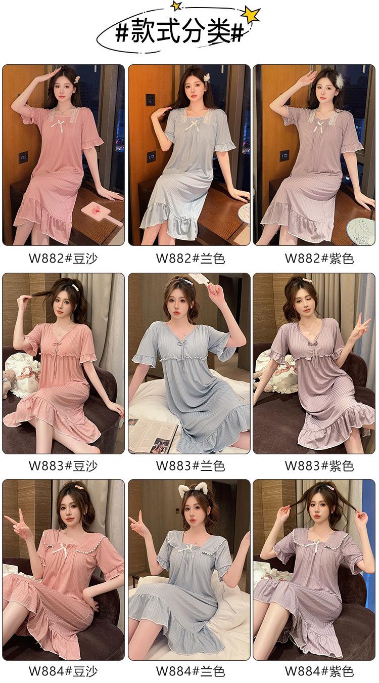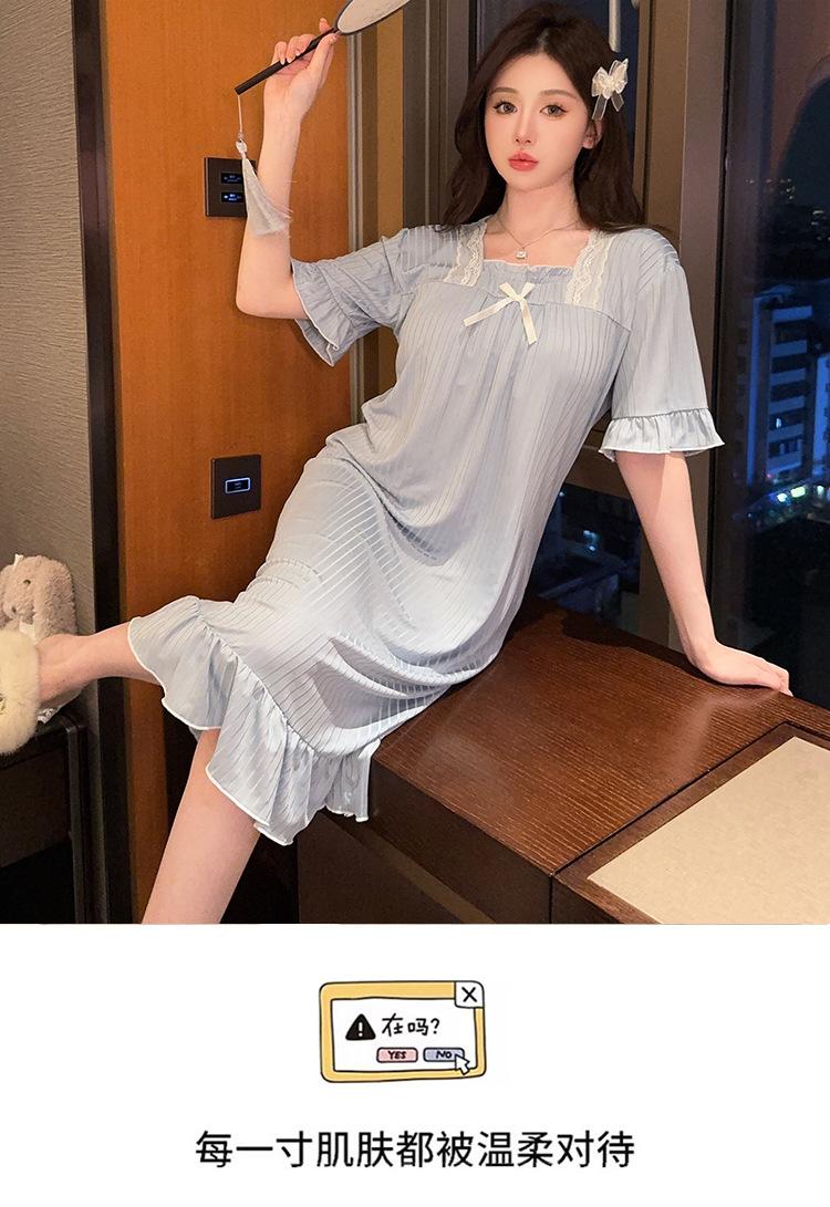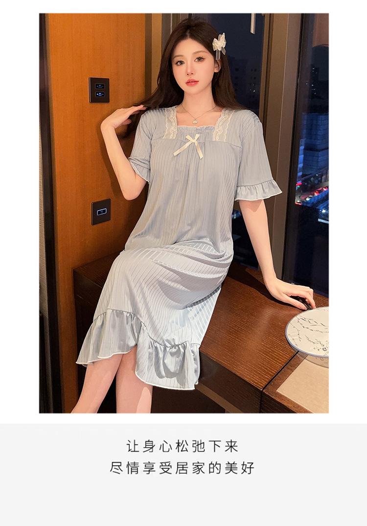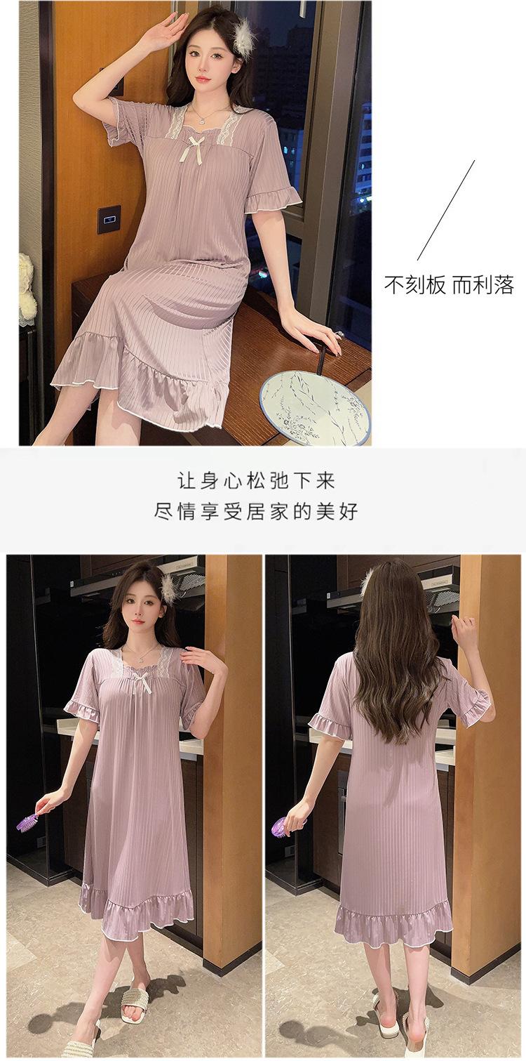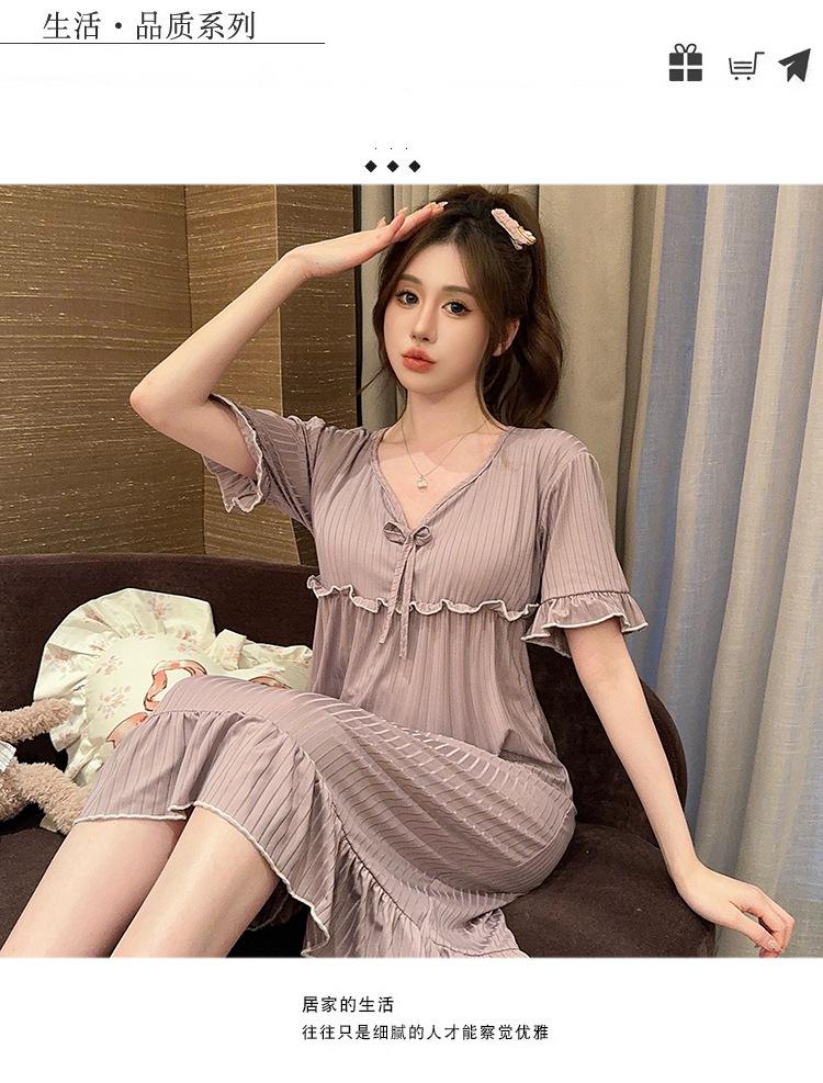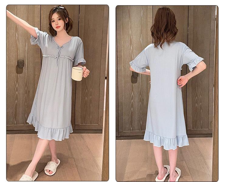 Camisón de Verano Transfronterizo para Mujer Lindo Dulce Almohadilla en el Pecho Largo Medio Suelto Talla Extra para Chica Gordita Ropa para el Hogar