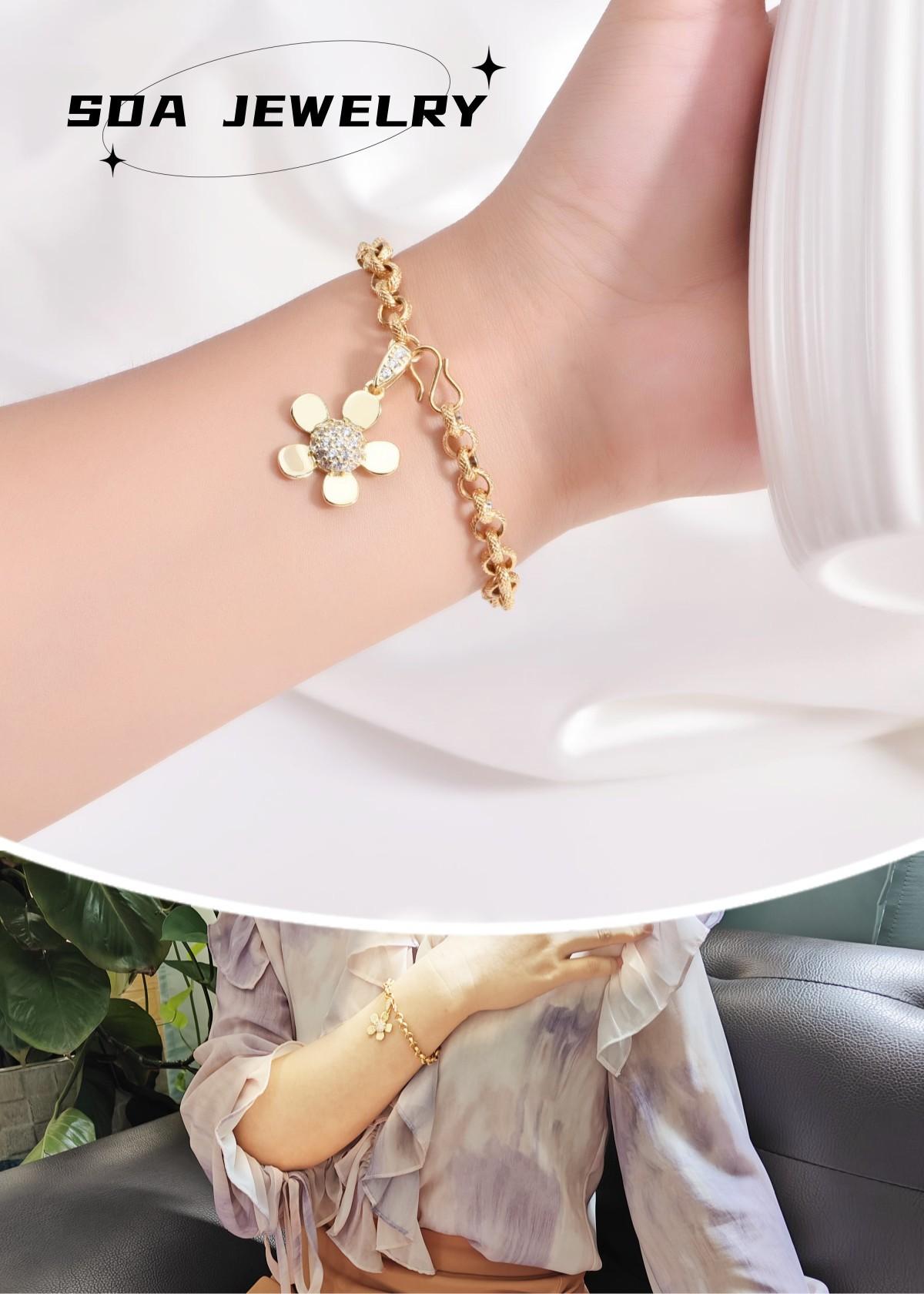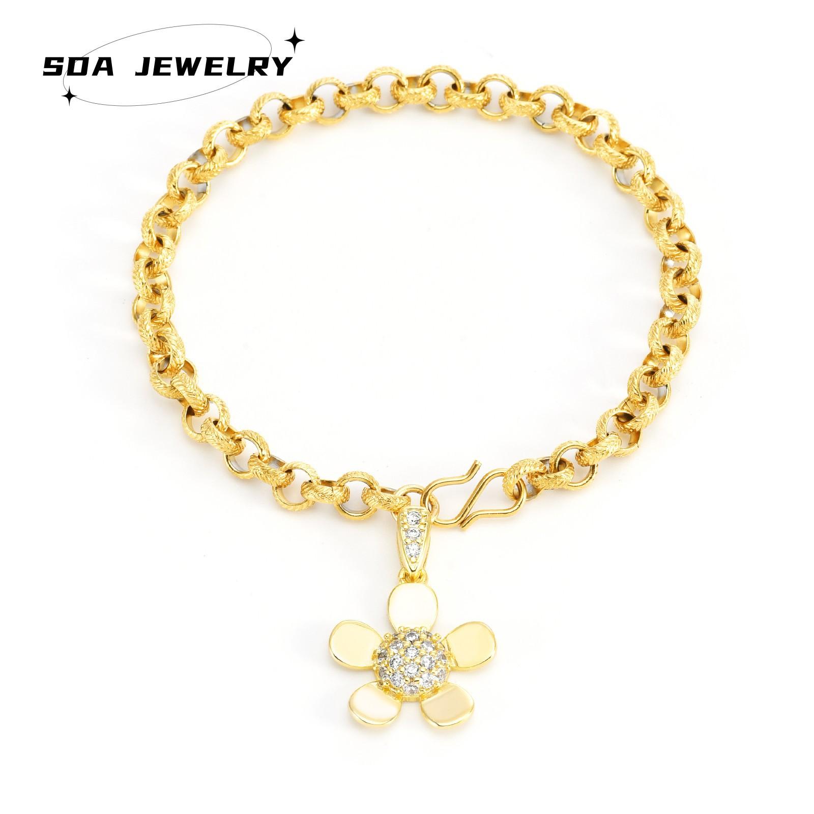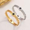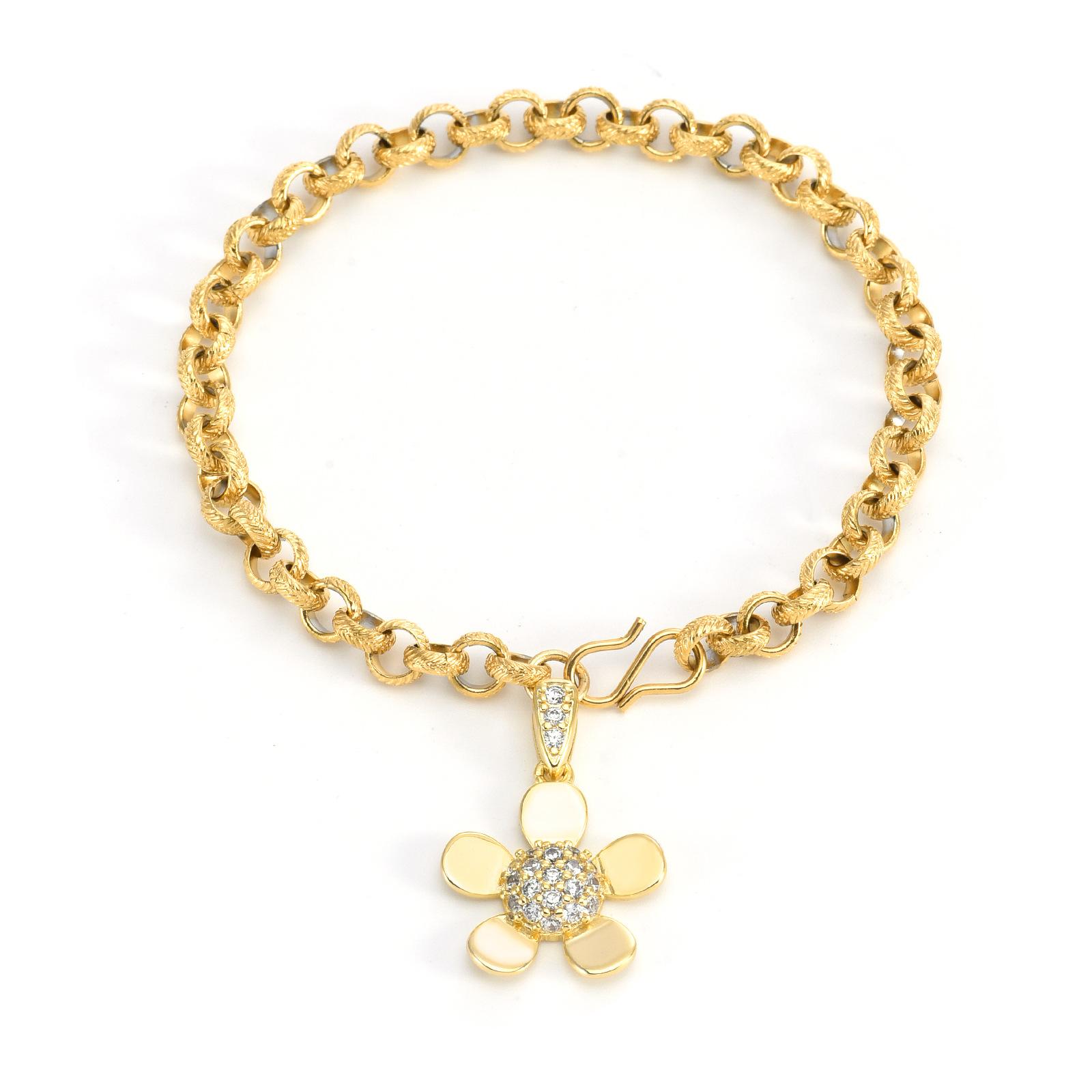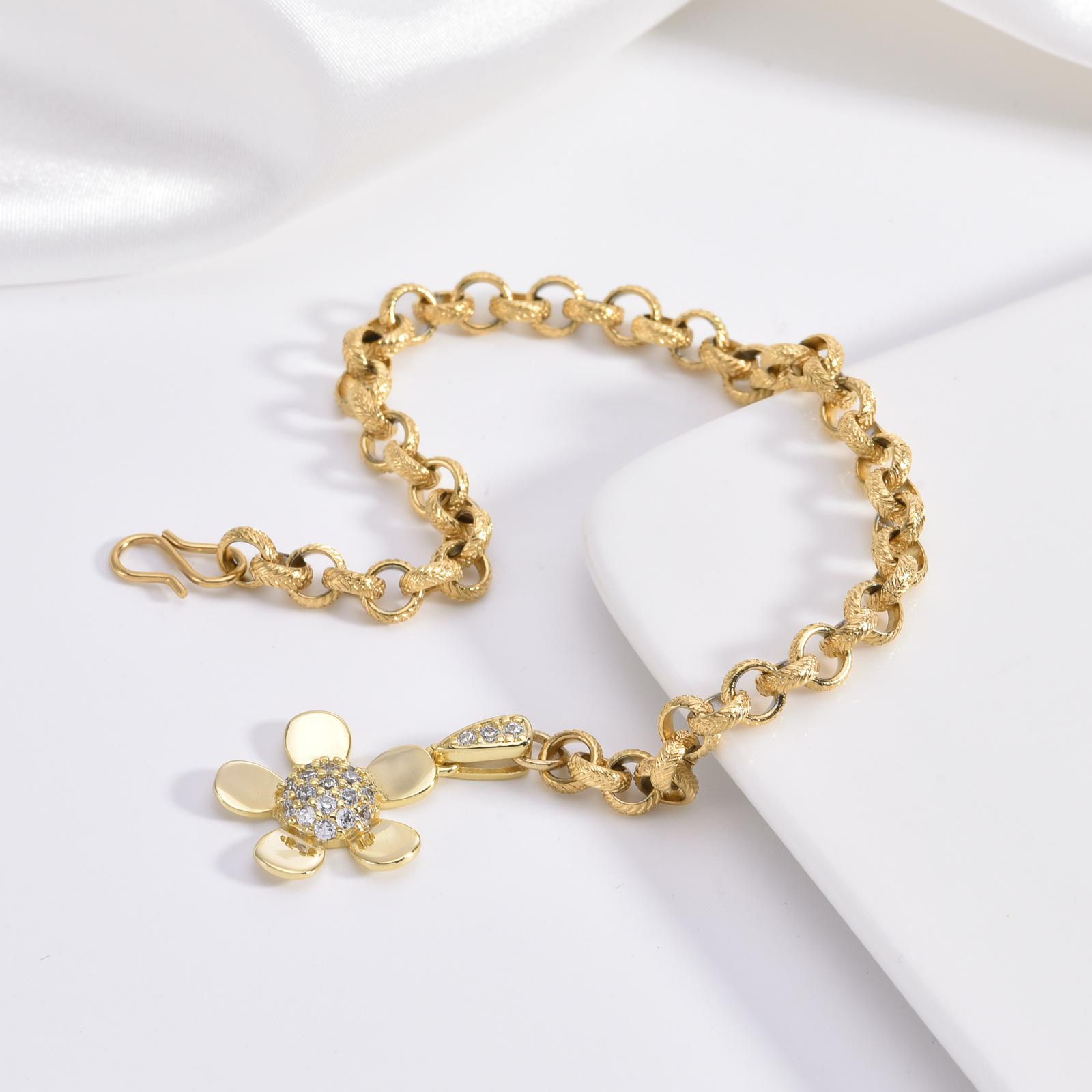 Pulsera de moda de alta gama transfronteriza de acero inoxidable chapado en oro de 18 quilates con diseño simple de acero de titanio y flores al por mayor