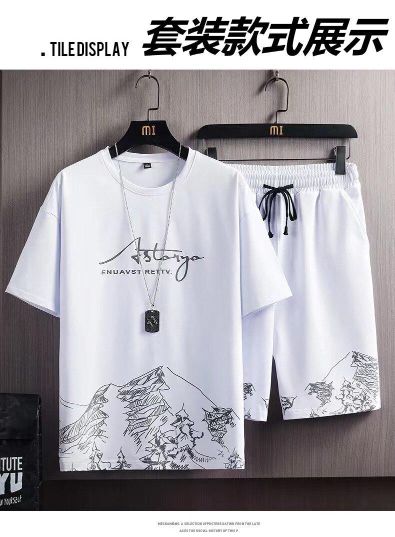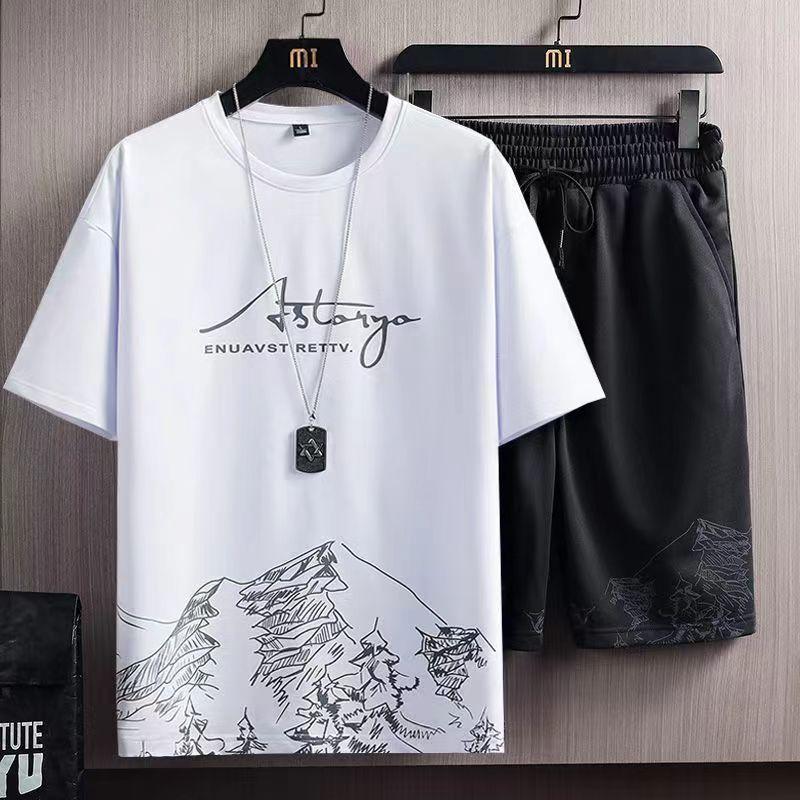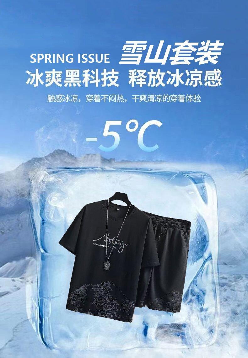 Traje de manga corta de seda helada de la serie Snow Mountain 2024, pantalones cortos de manga corta con estampado digital de moda coreana.
