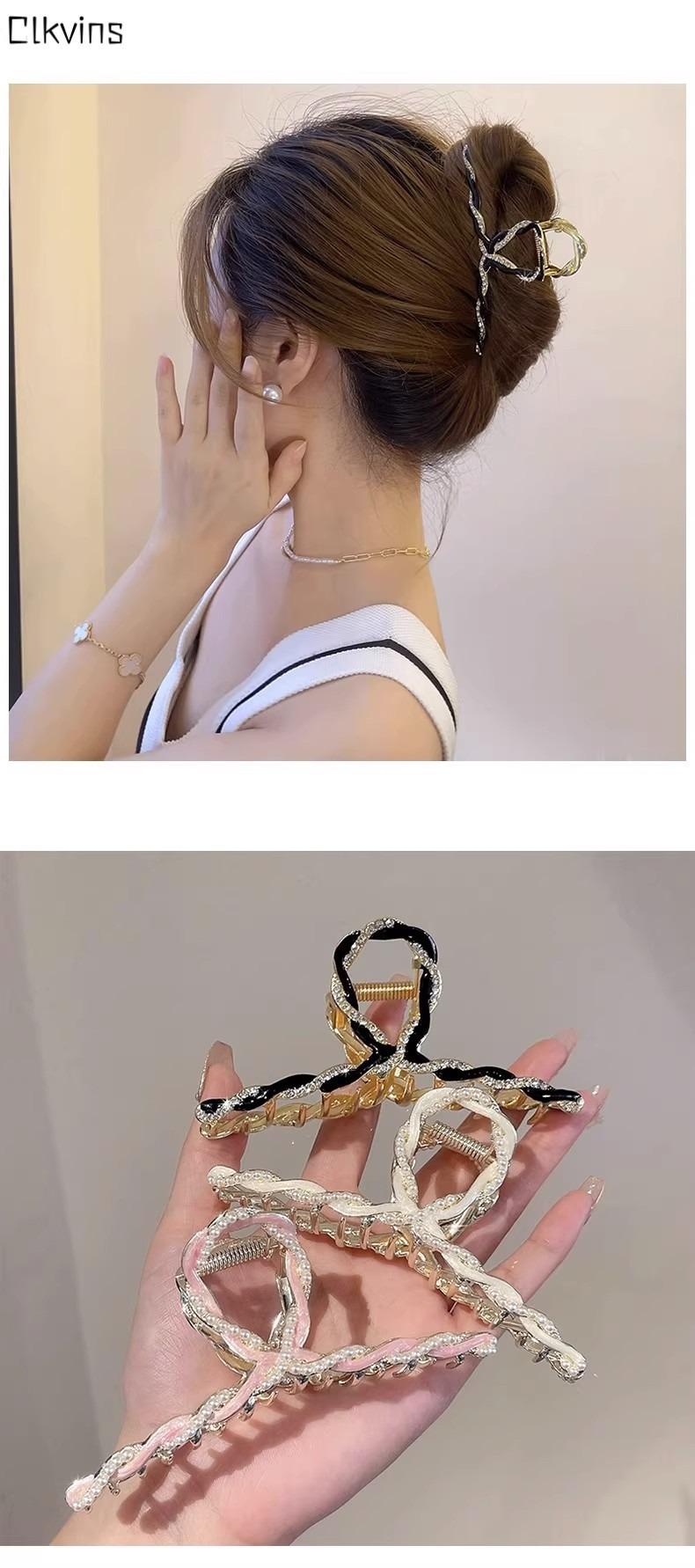 Horquilla de metal de alta gama con forma de perla de estilo coreano para mujer, elegante horquilla para el pelo en la parte trasera, grande y elegante, con forma de tiburón, para primavera y verano