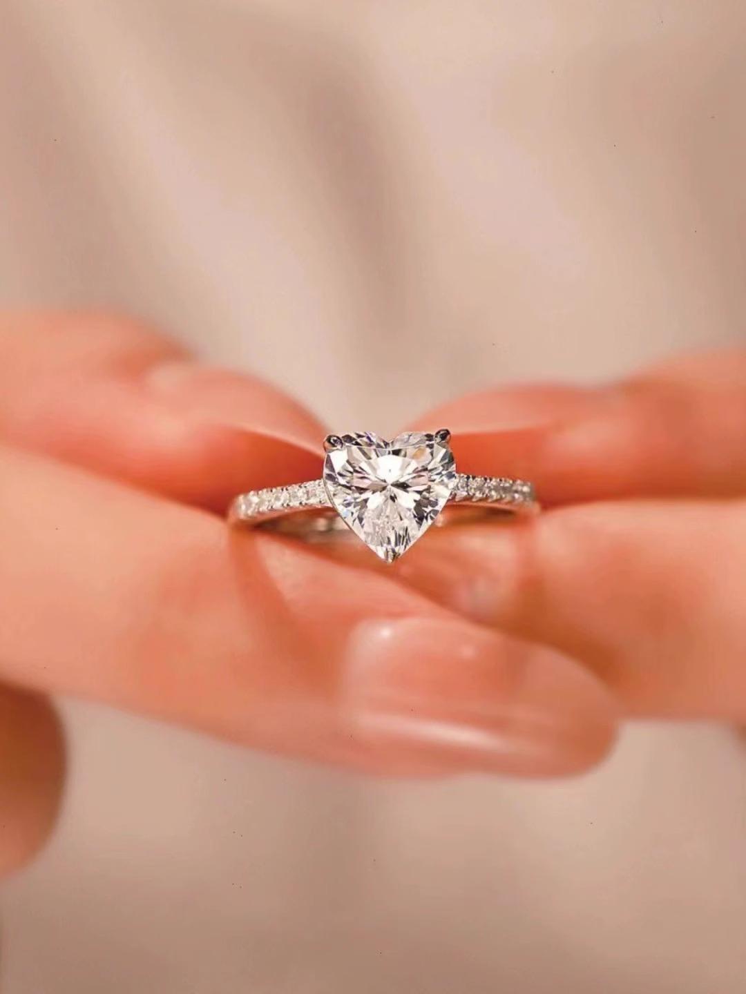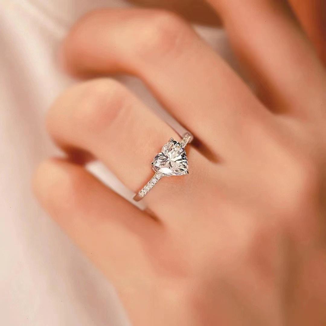 Venta caliente ins con incrustaciones de circonita AAA, anillo en forma de corazón, simple anillo abierto europeo y americano, anillo de amor de viento frío al por mayor