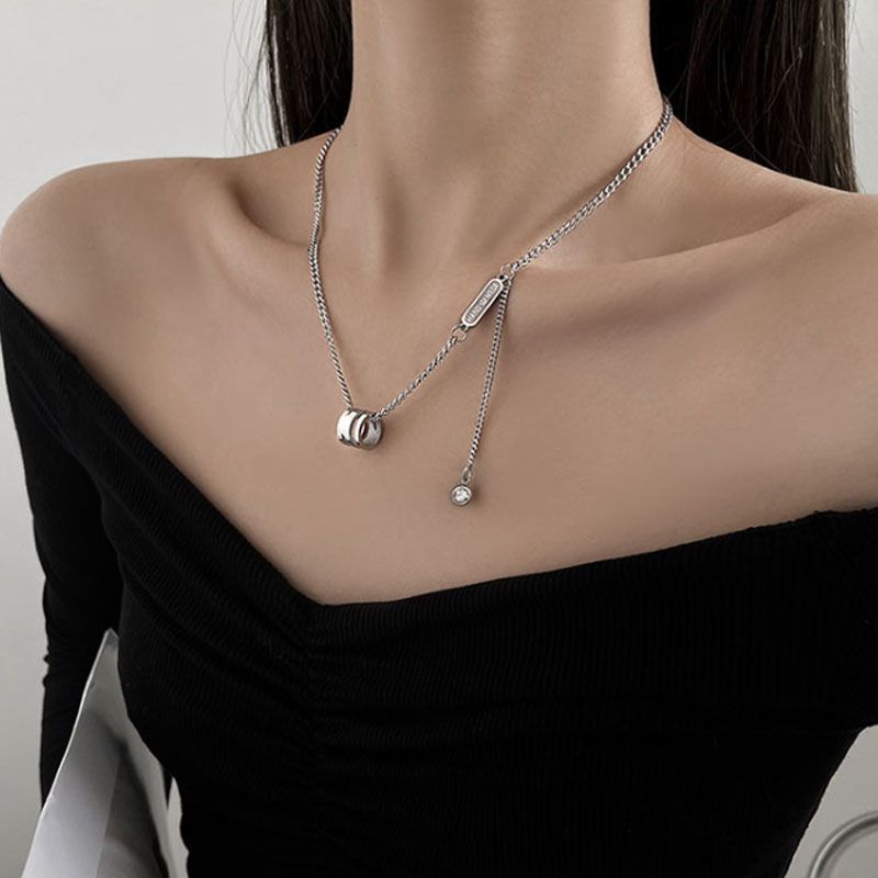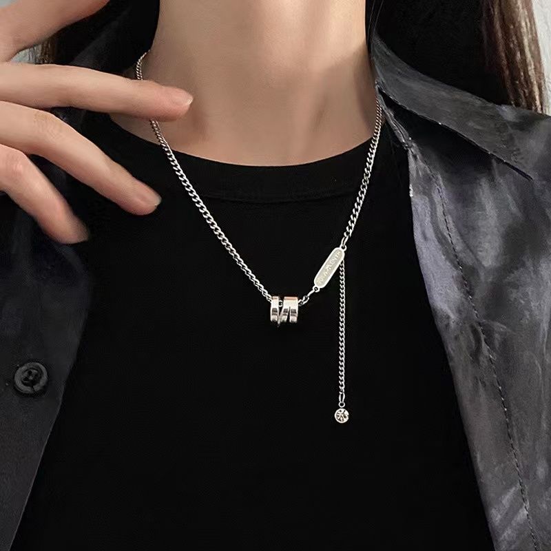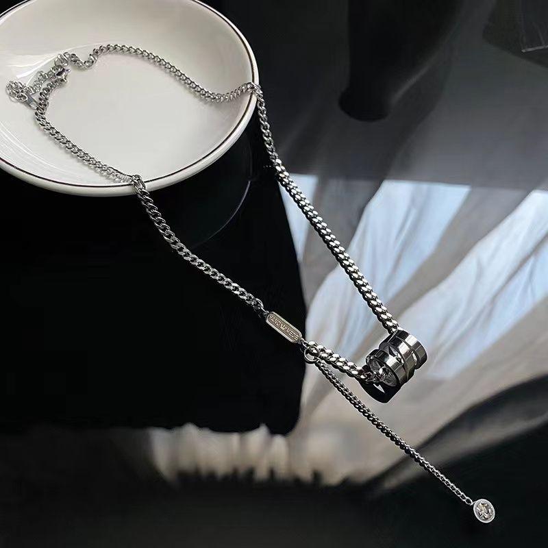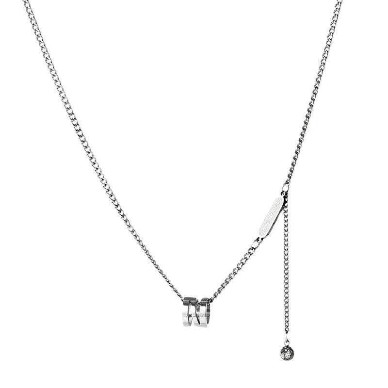 Oro Rosa de 18K Anillo Doble Simple Corazón Cadena Clavícula Acero Titanio No Se Desvanece Collar Popular Nicho Joyería Ins Exquisito