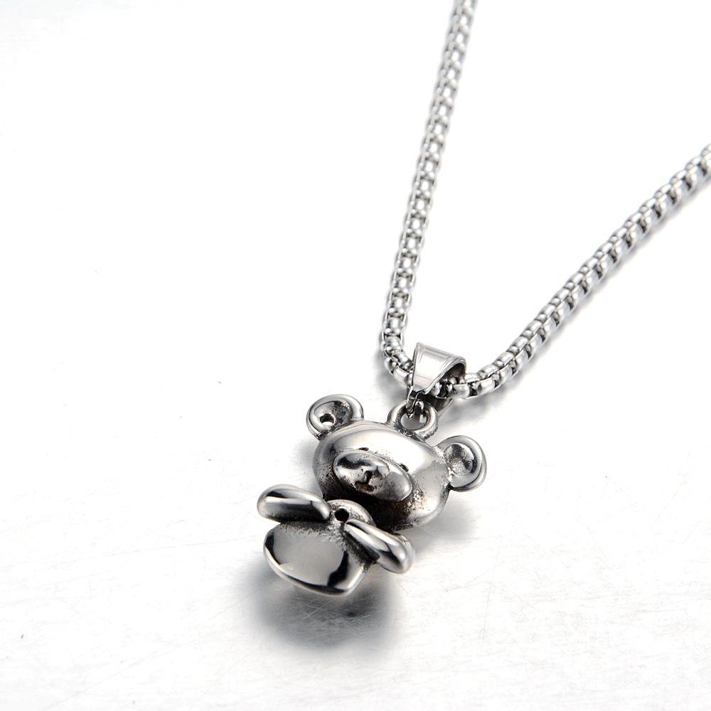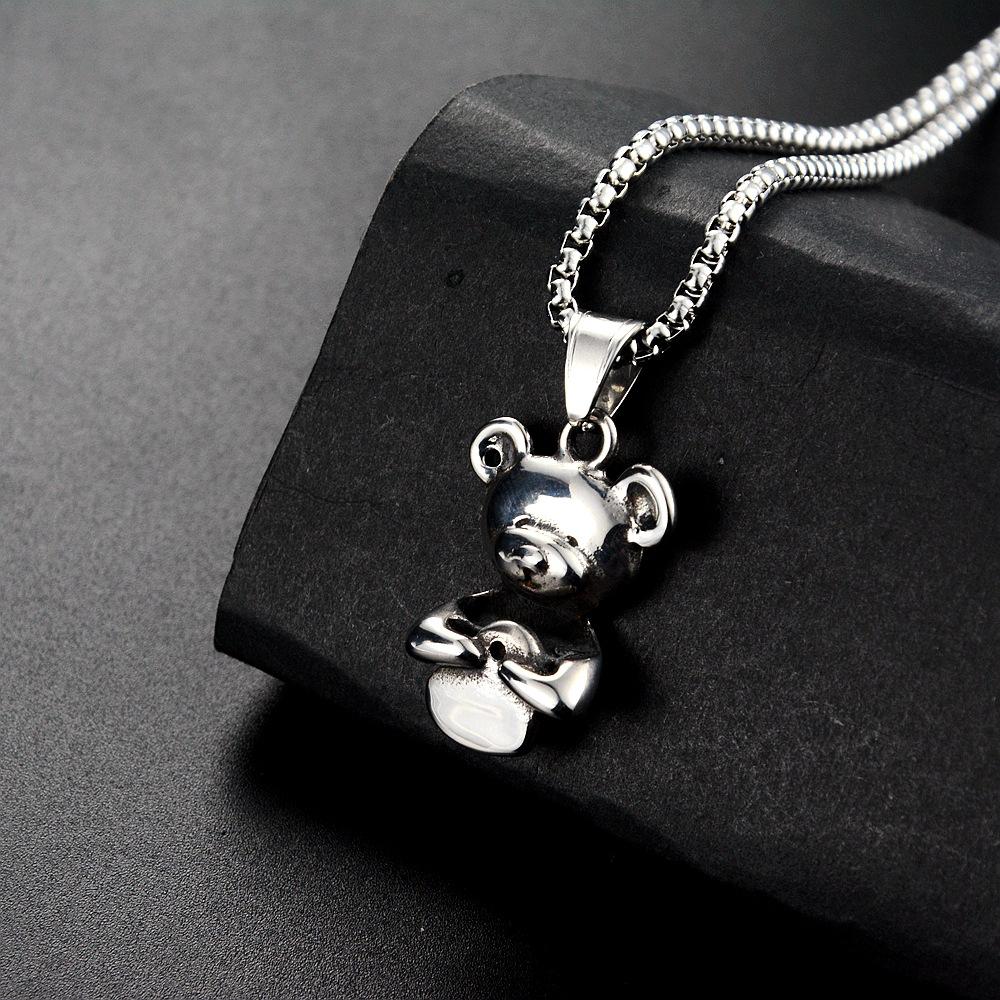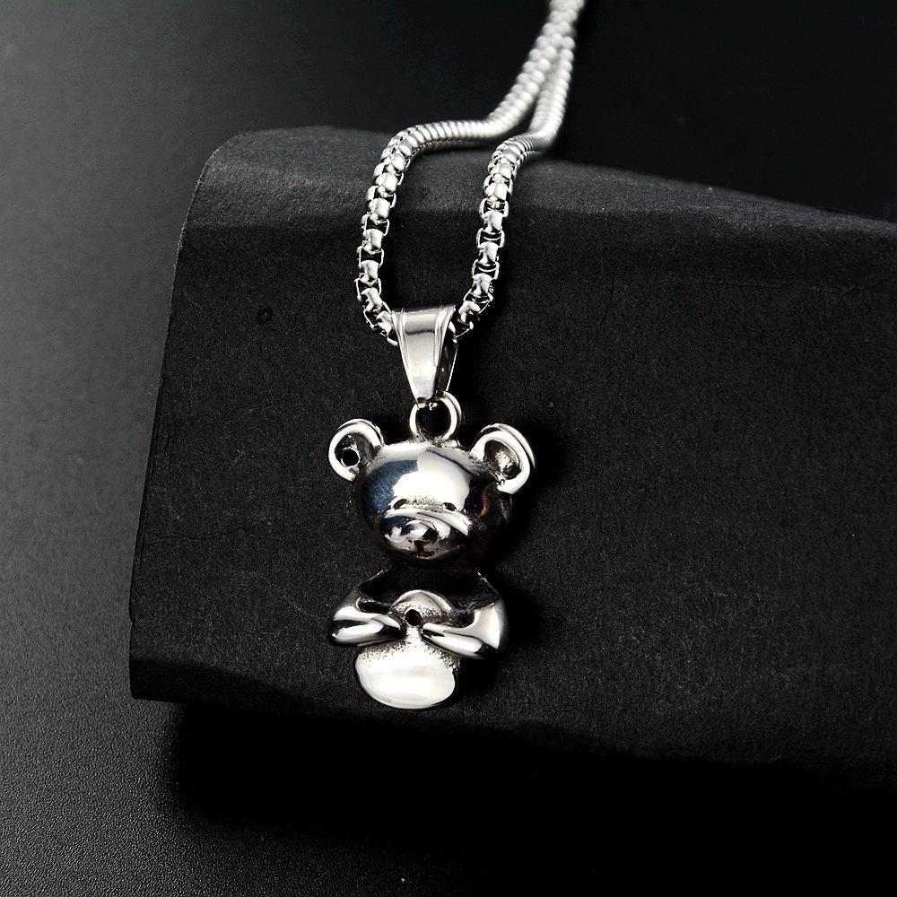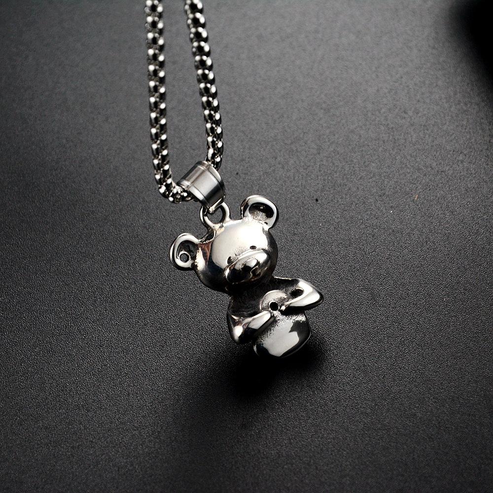 Collar con colgante de oso de nicho europeo y americano, japonés y coreano, personalizado, moda casual, joyería de acero de titanio, suministro transfronterizo