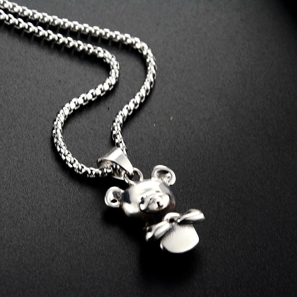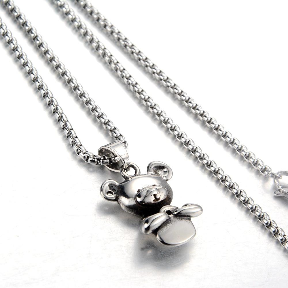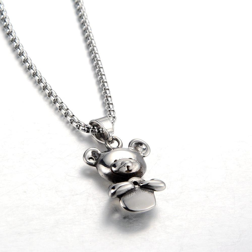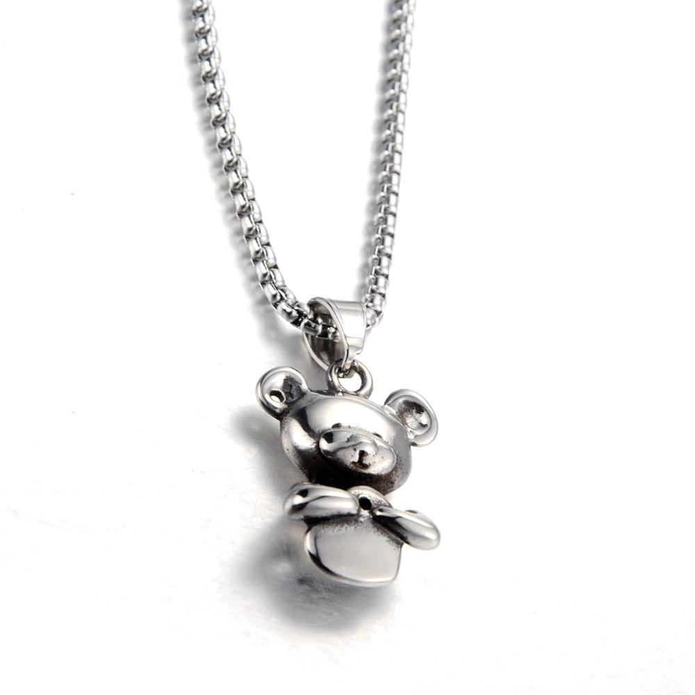 Collar con colgante de oso de nicho europeo y americano, japonés y coreano, personalizado, moda casual, joyería de acero de titanio, suministro transfronterizo