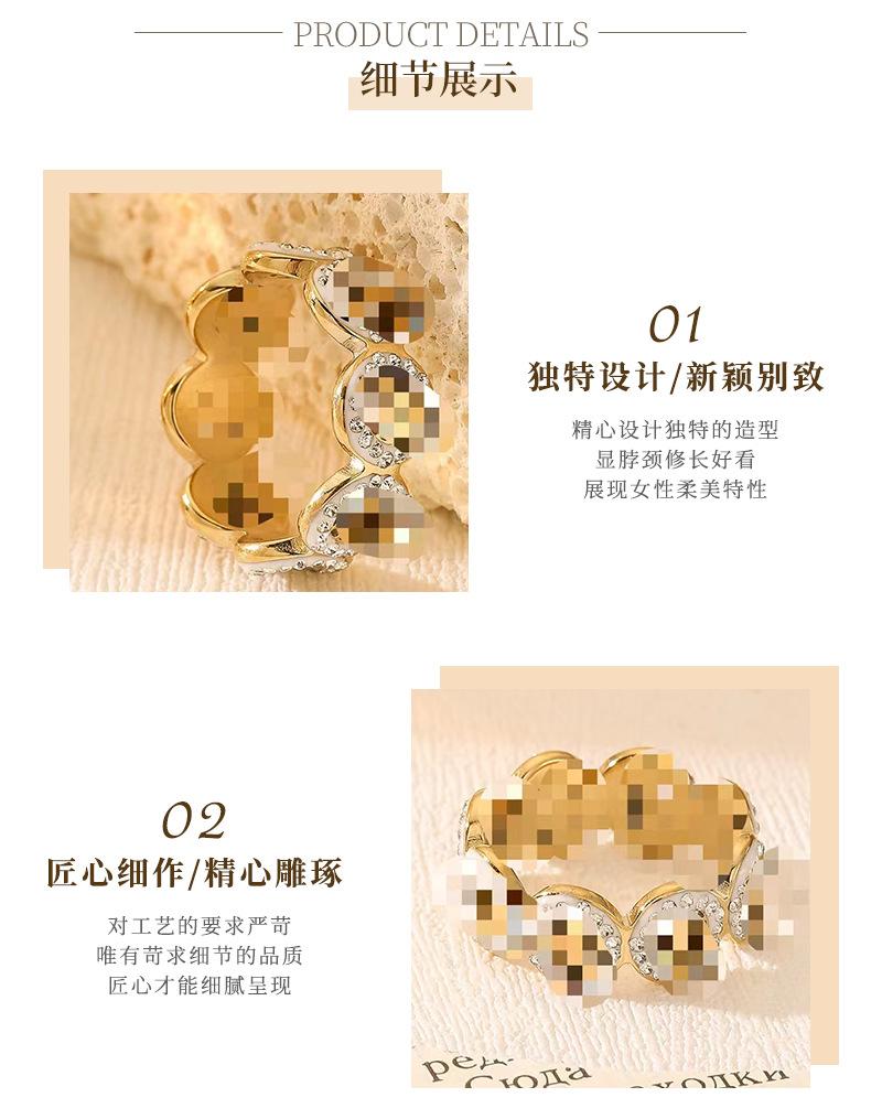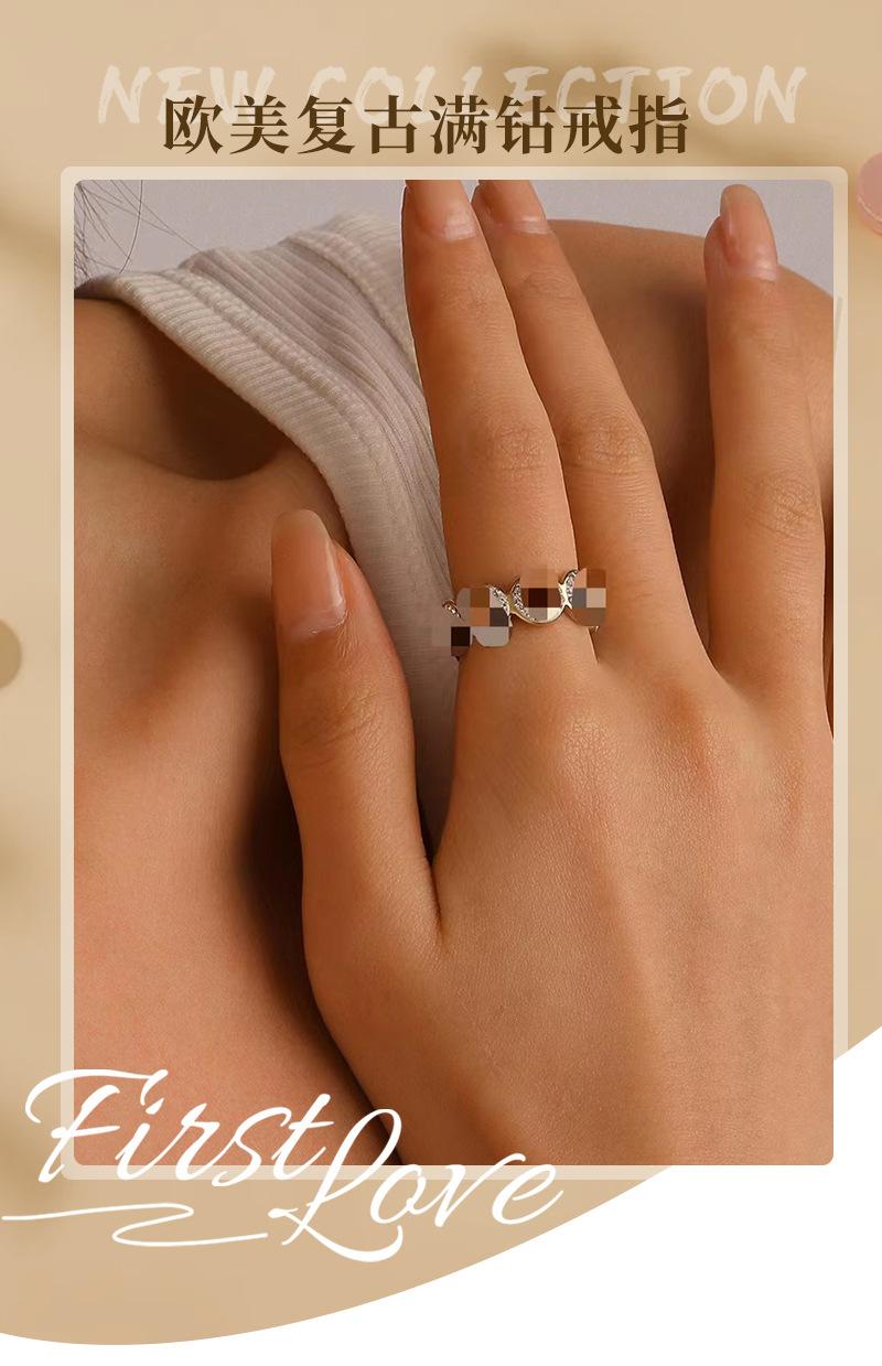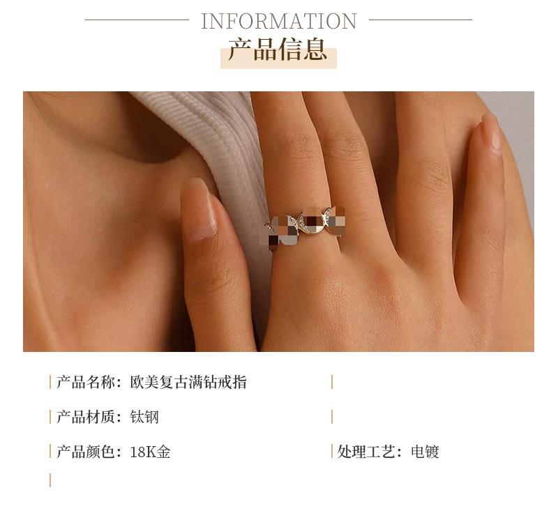 Diseño de nicho estilo europeo y americano acero de titanio retro temperamento simple combina con todo socialité anillo de diamantes completo anillo de diamantes hueco