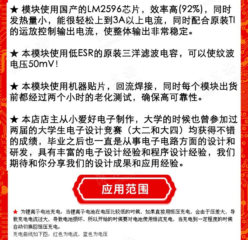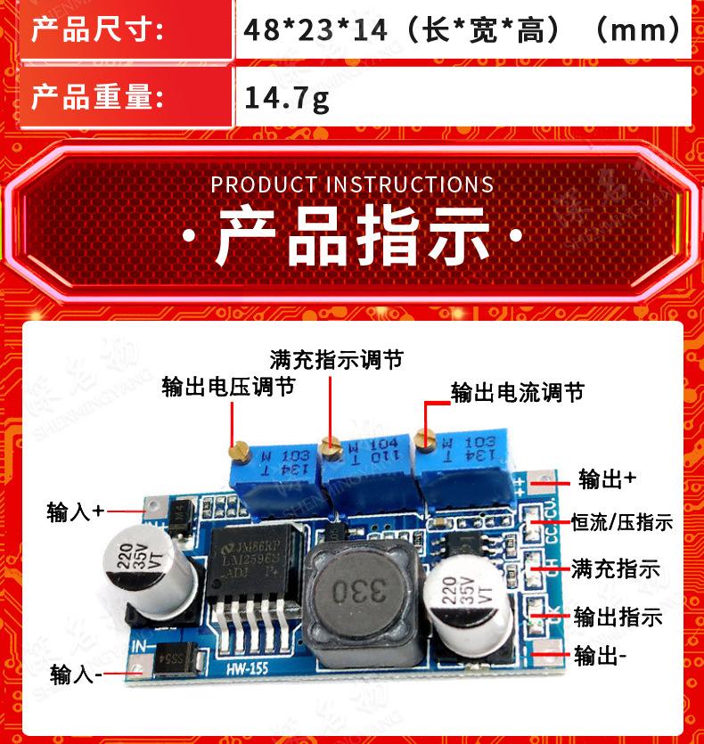 Módulo de fuente de alimentación de carga de batería de iones de litio con controlador LED de voltaje constante y corriente constante LM2596 de placa azul, bajo calor