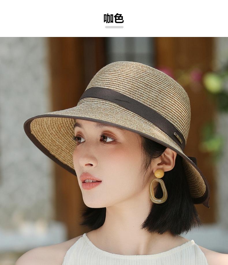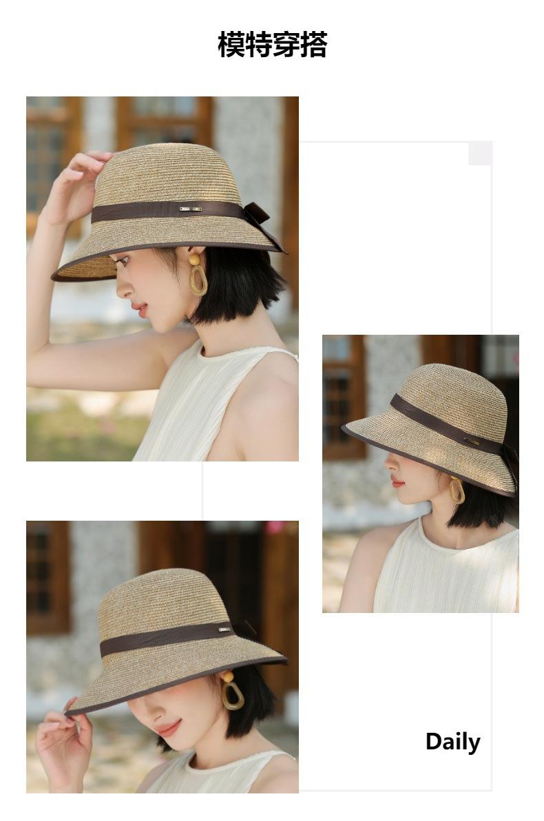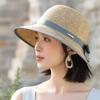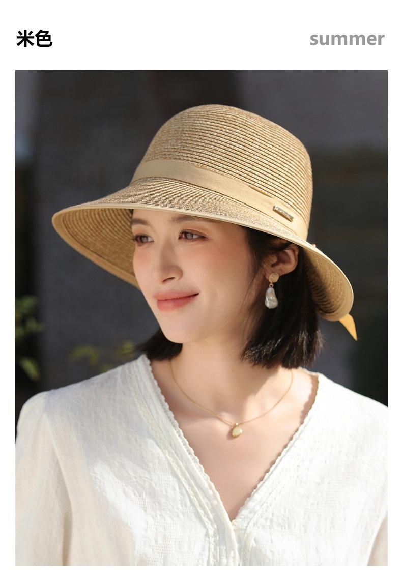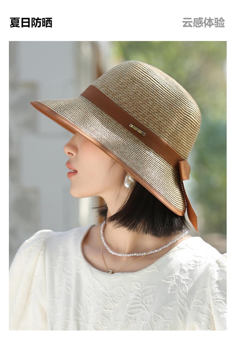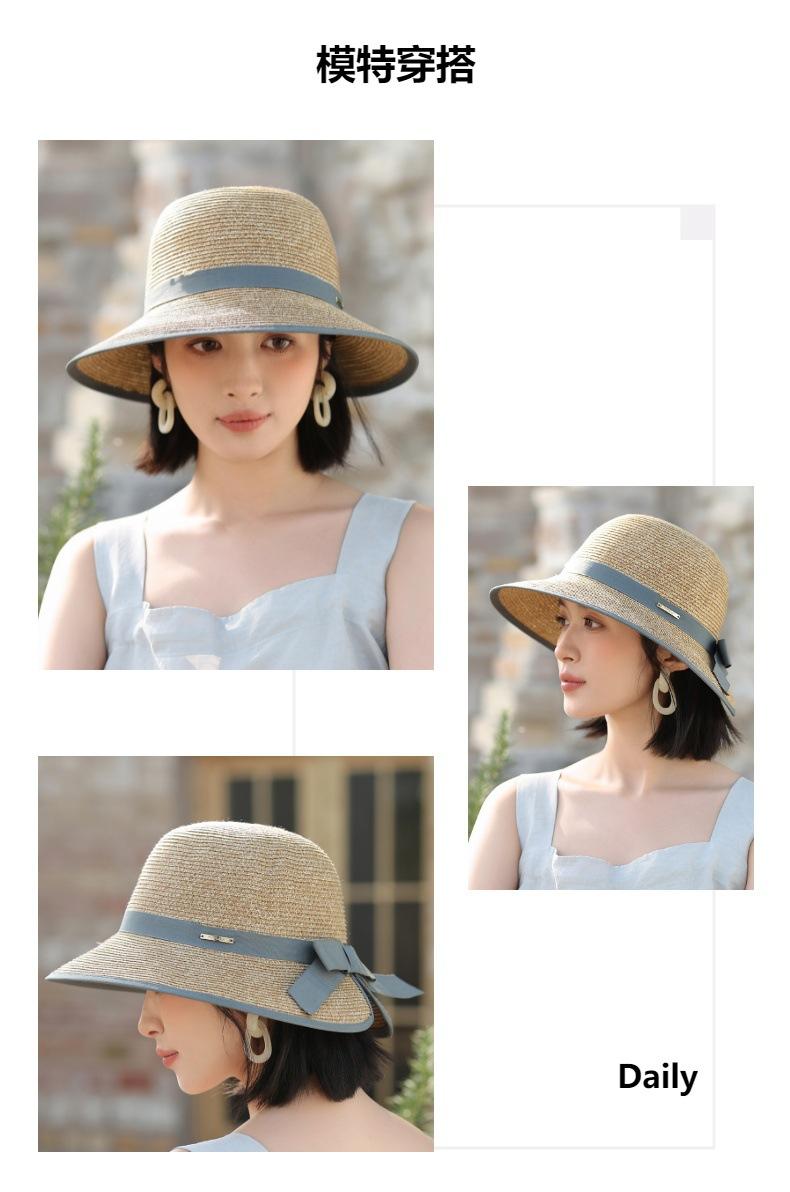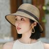Primavera y verano nuevo sombrero de paja con lazo protector solar casual simple sombrero de pescador estilo japonés elegante sombrero parasol para mujer de moda