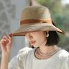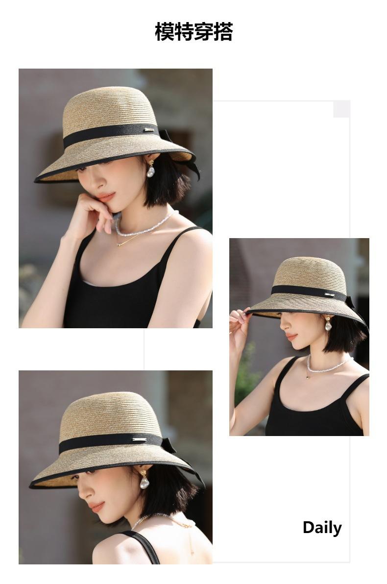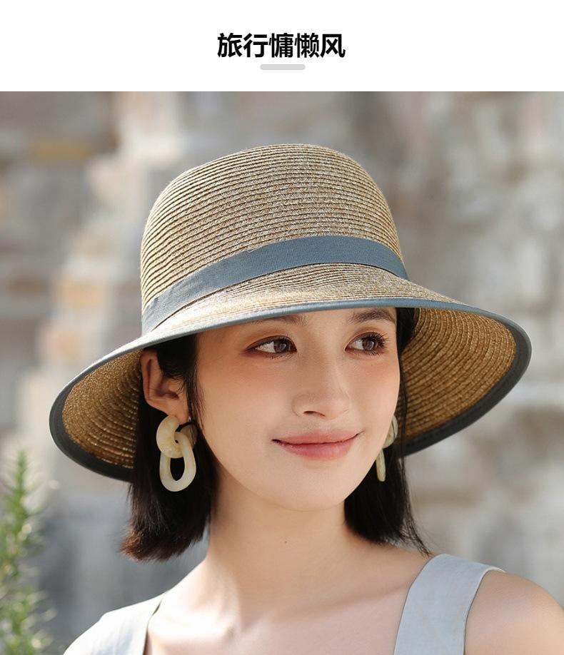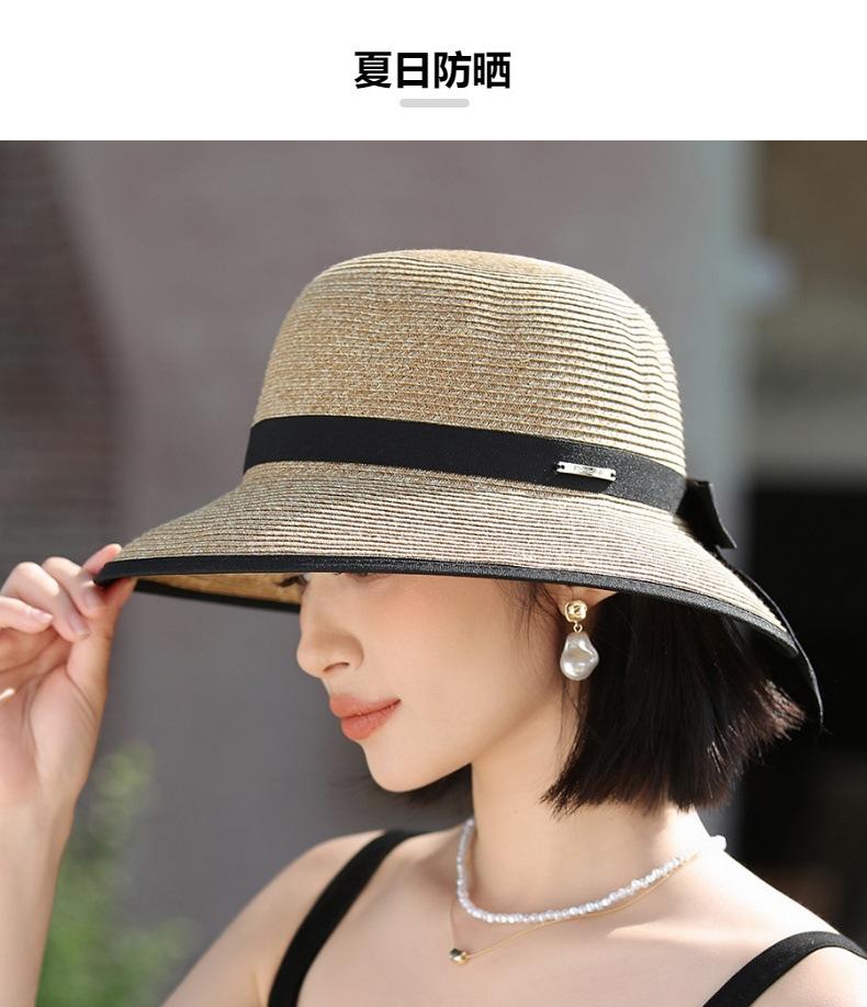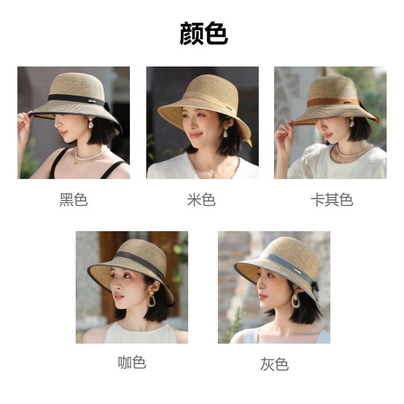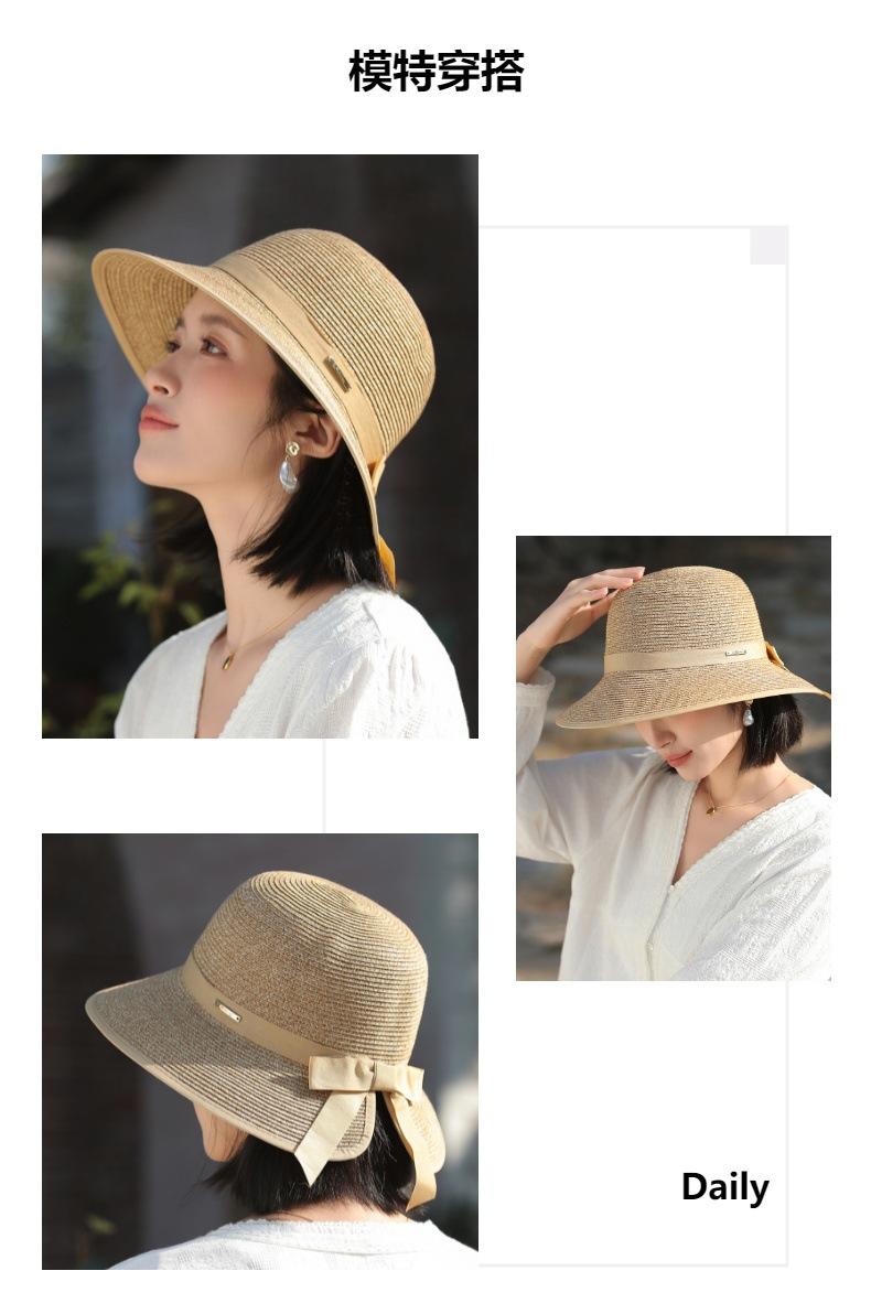 Primavera y verano nuevo sombrero de paja con lazo protector solar casual simple sombrero de pescador estilo japonés elegante sombrero parasol para mujer de moda
