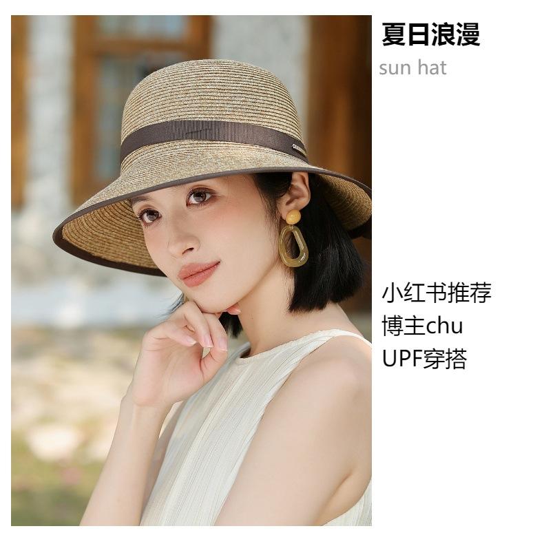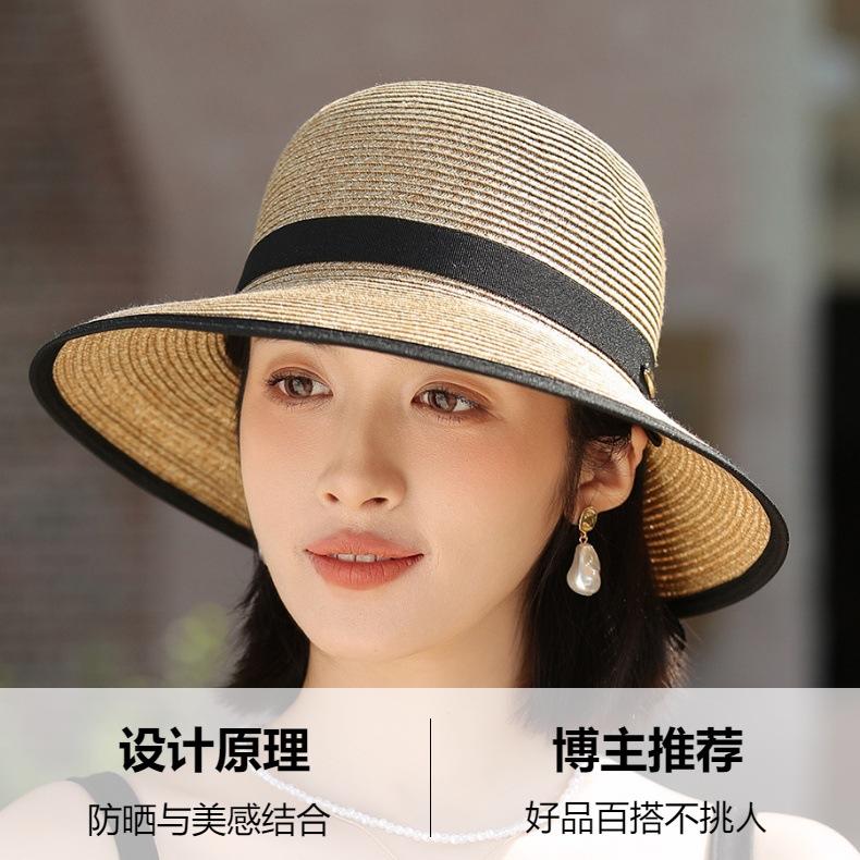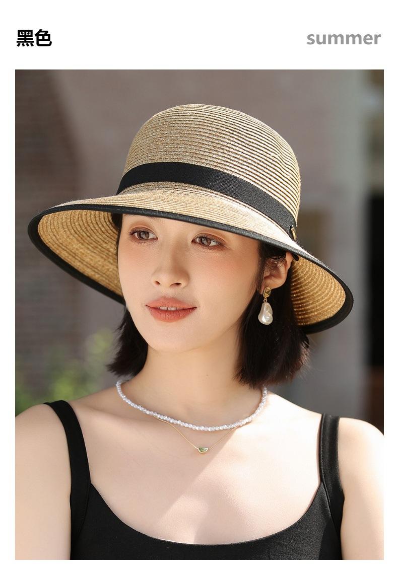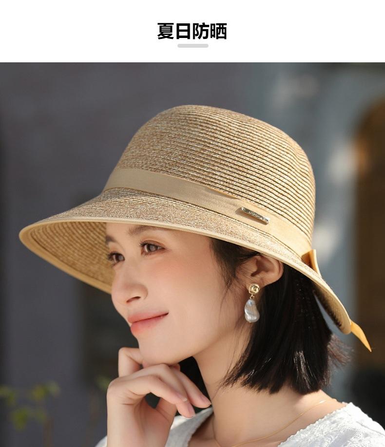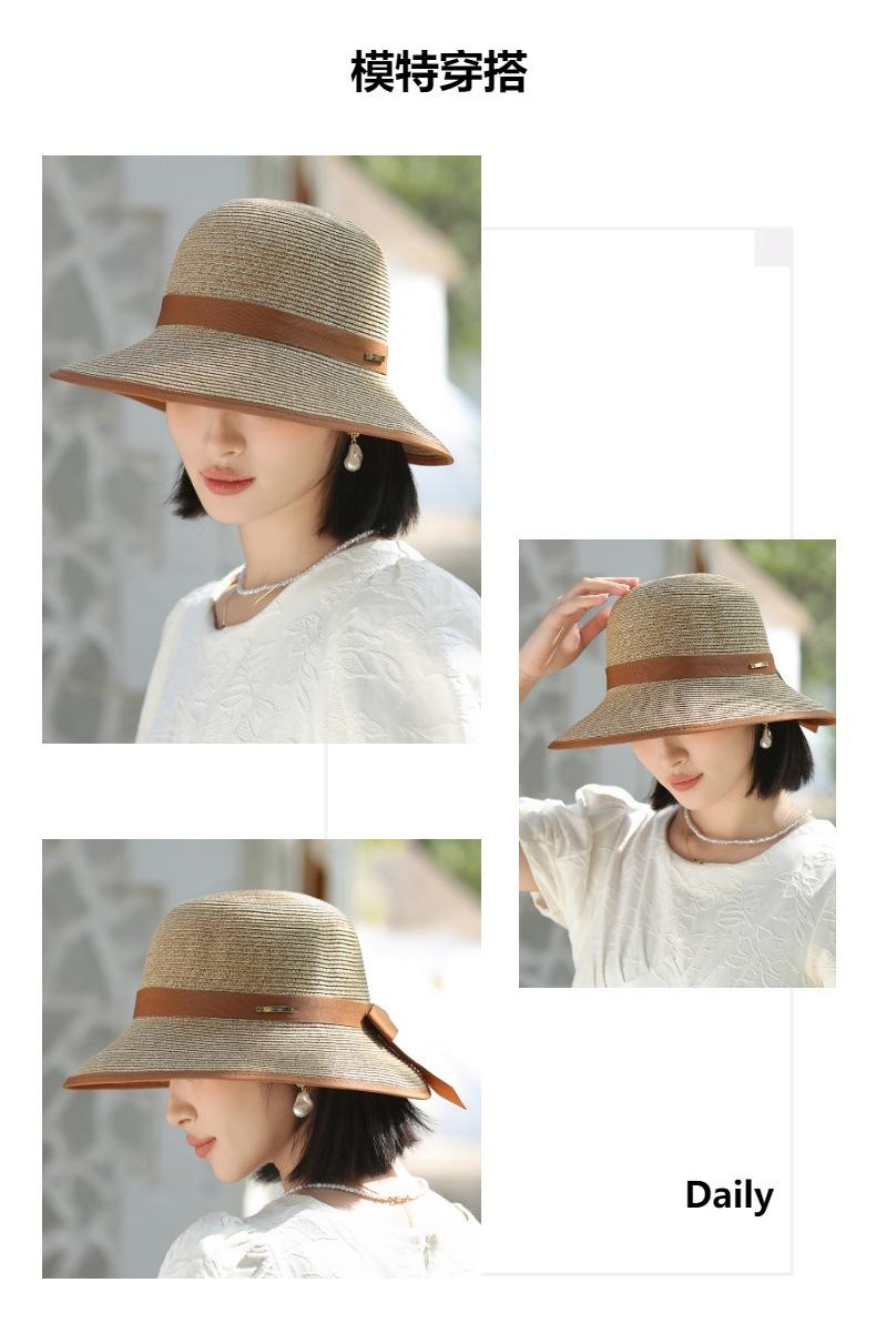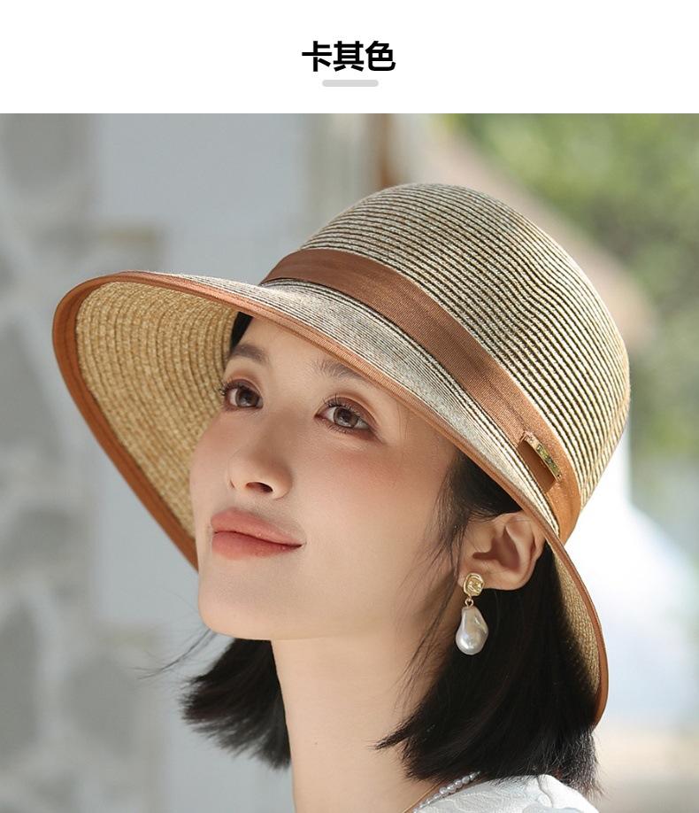 Primavera y verano nuevo sombrero de paja con lazo protector solar casual simple sombrero de pescador estilo japonés elegante sombrero parasol para mujer de moda
