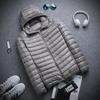Chaqueta ligera acolchada de algodón y plumón para hombre, otoño e invierno 2023, informal, con cuello alto, capucha, corta, sencilla, cálida, de talla grande