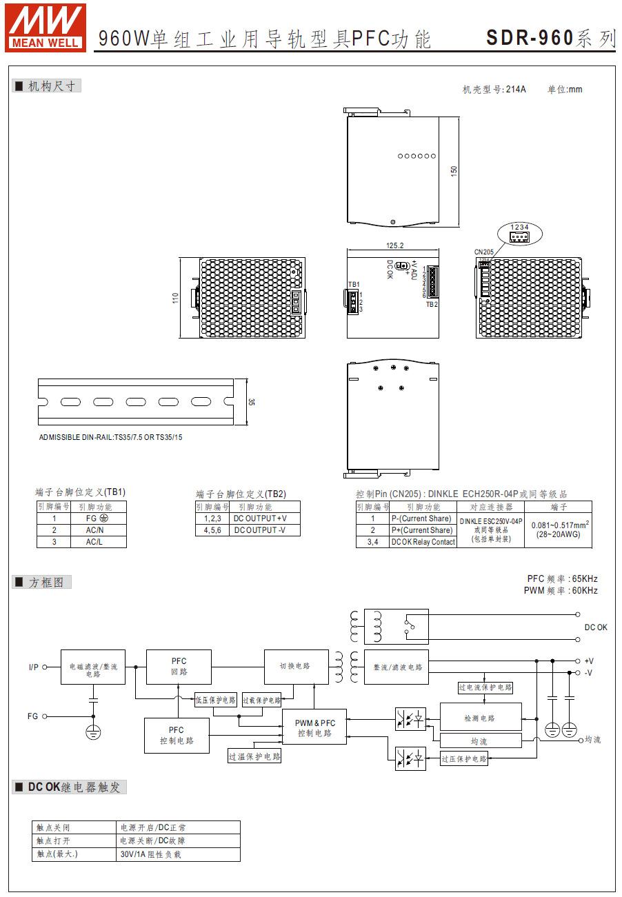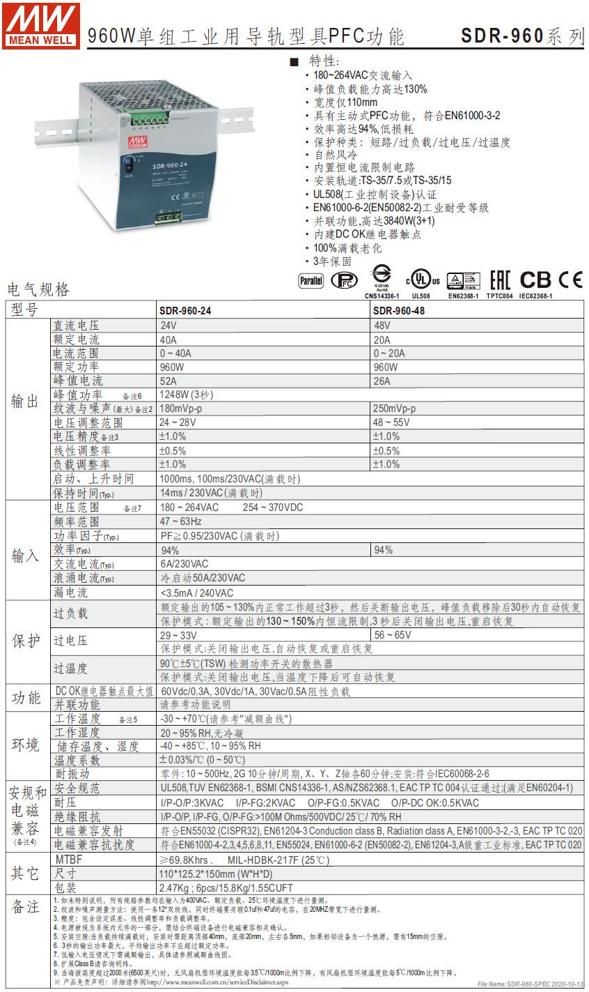 En stock SDR-960-24/48 Mingwei Fuente de Alimentación de Riel de Alta Potencia MEAN WELL