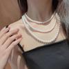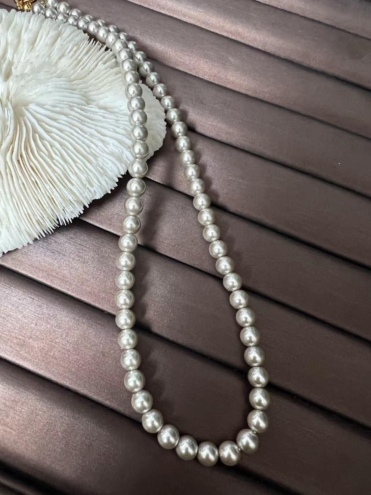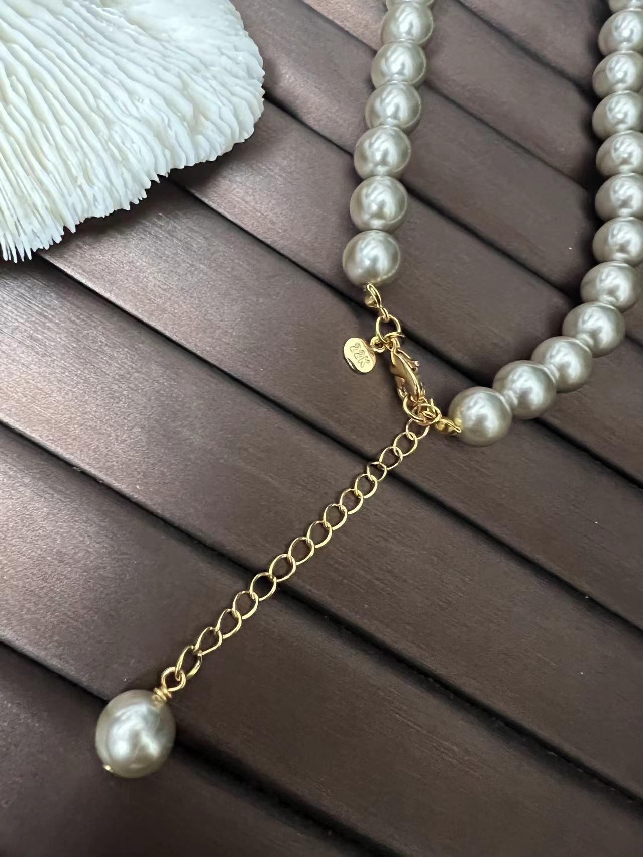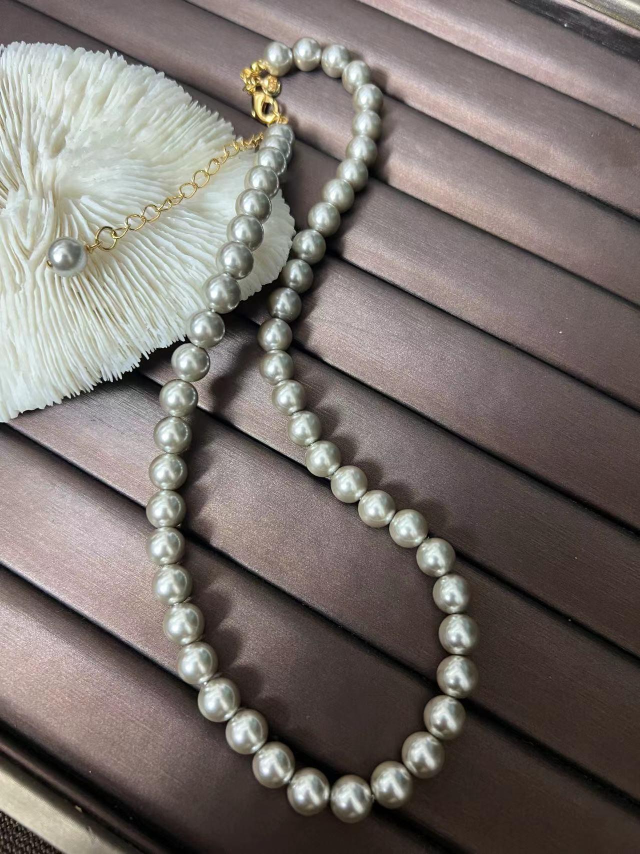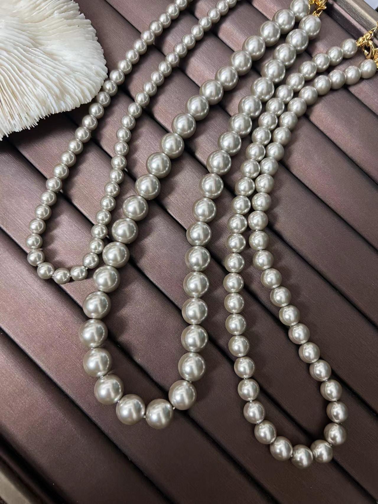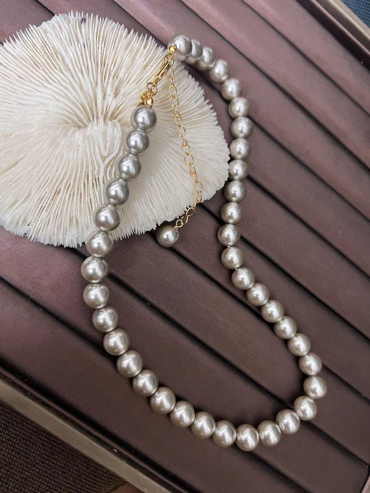 Cadena para Suéter de Perlas Redondas Grises, Collar de Moda para Mujer, Cadena Versátil de Clavícula de Lujo Ligero, Elegante Cadena Corta de Perlas