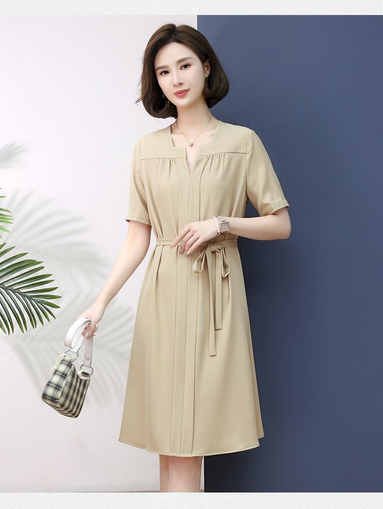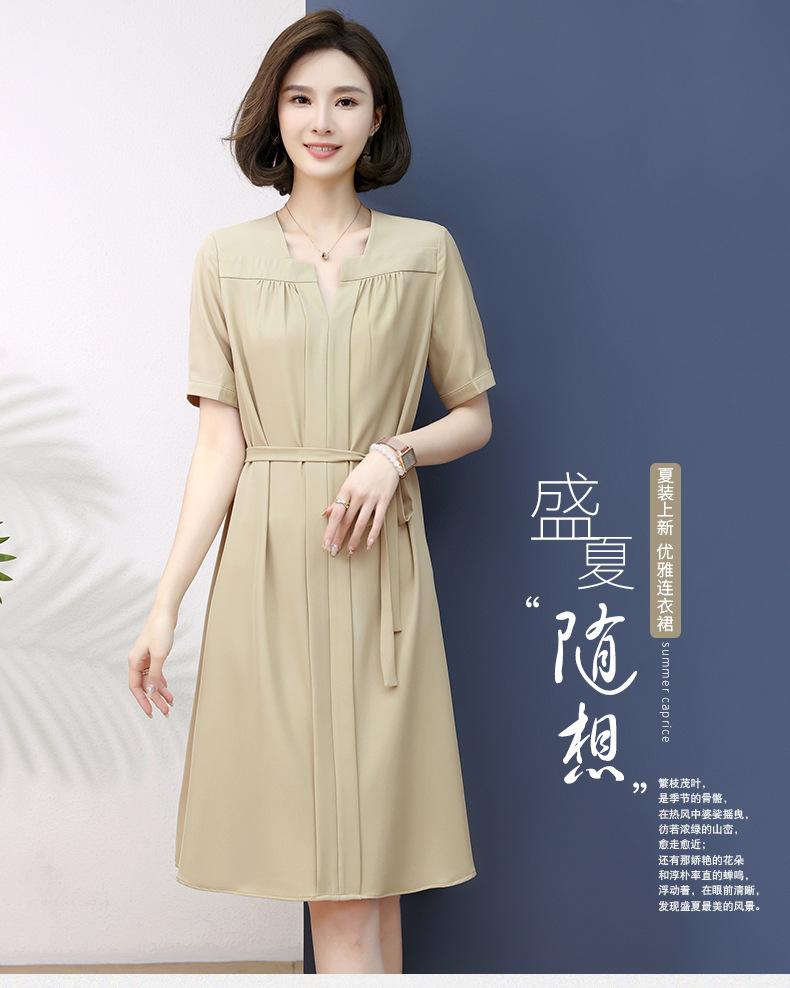 Vestido de gasa para mujer, verano 2024, nuevo, elegante, de alta gama, falda recta para madres pequeñas, falda adelgazante con cintura alta.