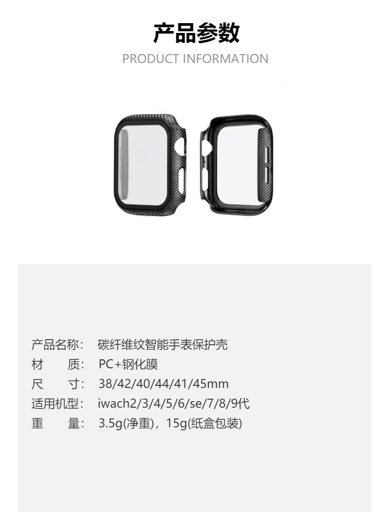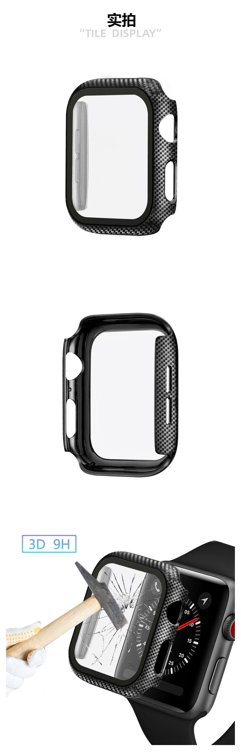 Para Apple Watch s9 funda protectora patrón de fibra de carbono película templada todo en uno funda protectora transparente para reloj