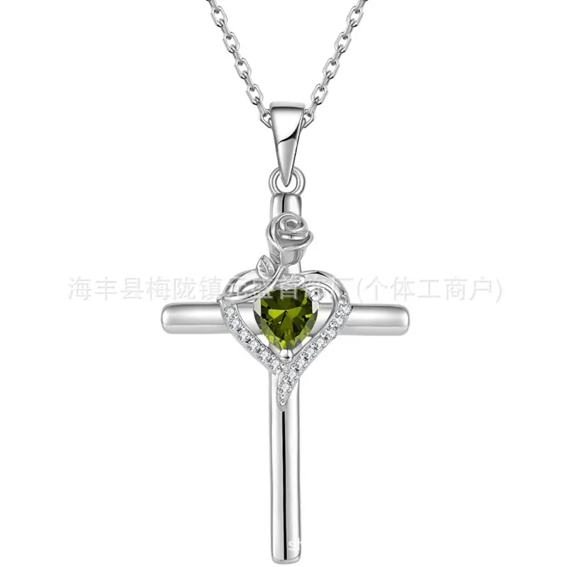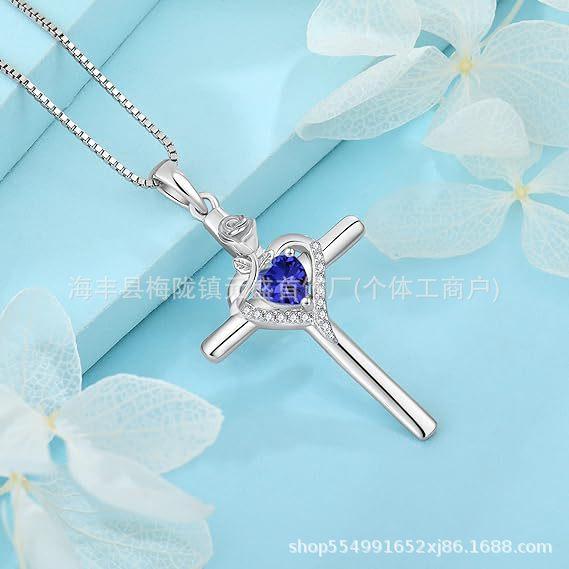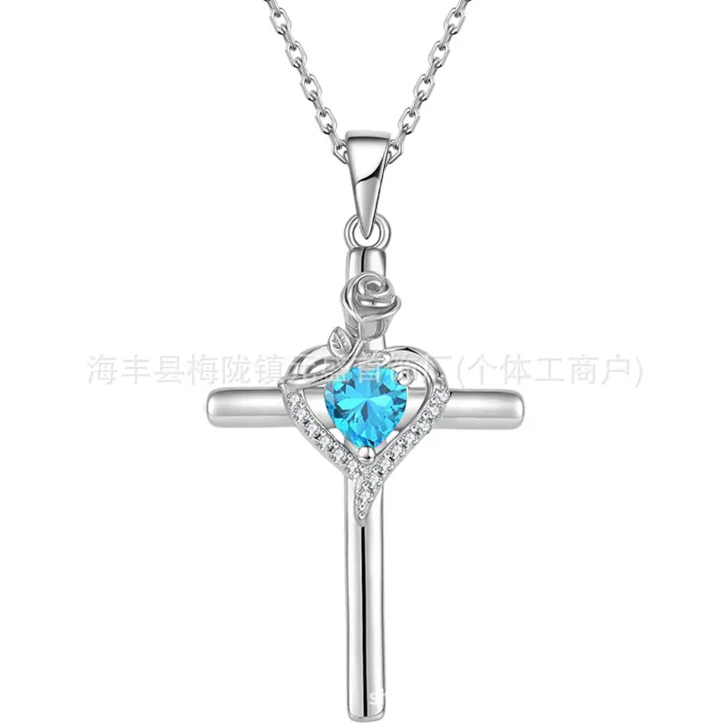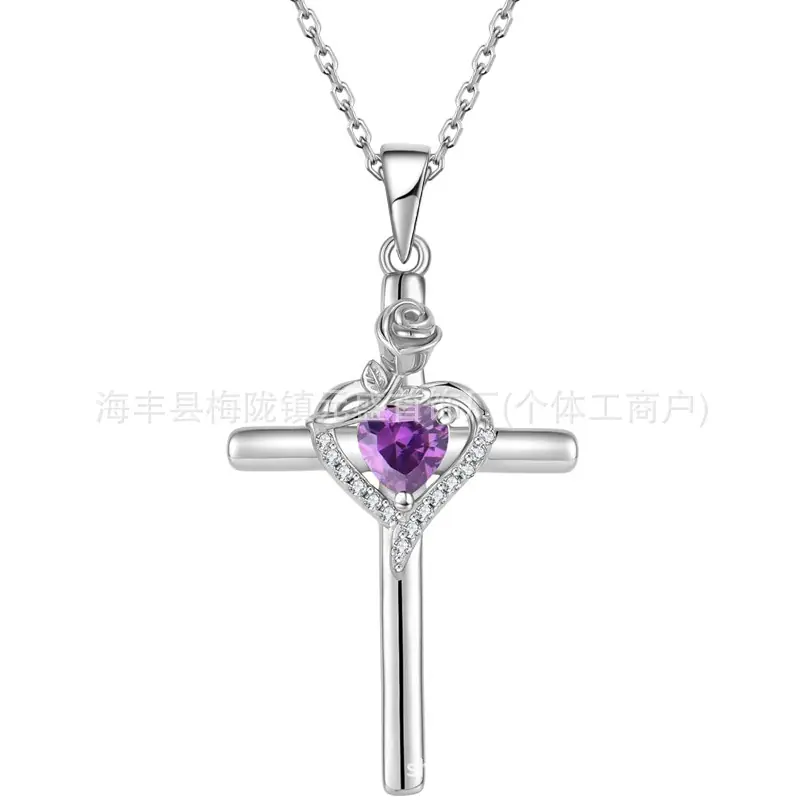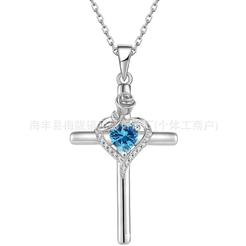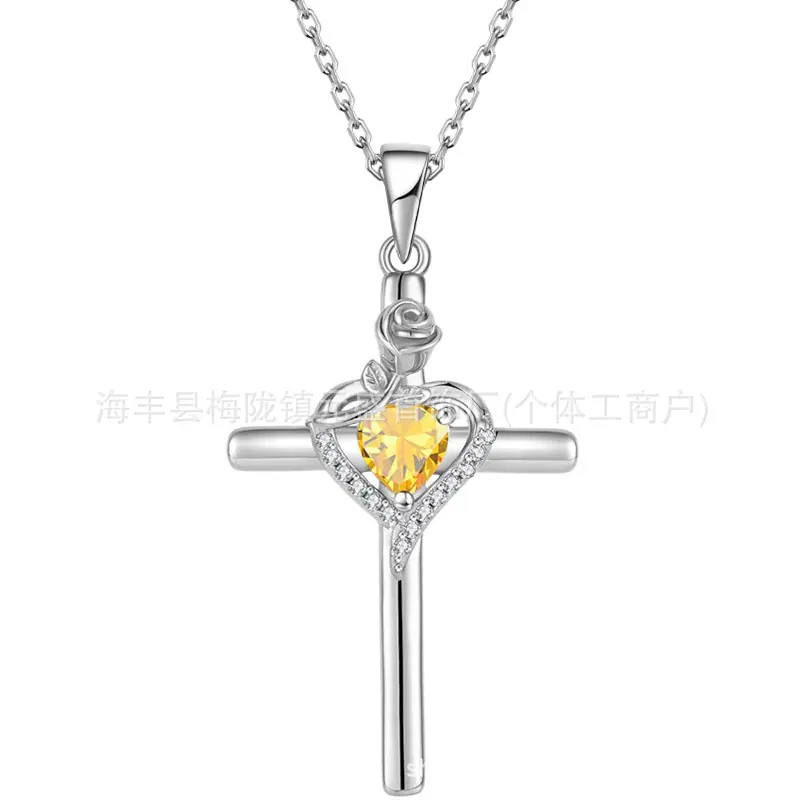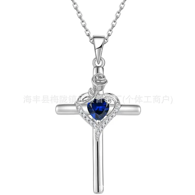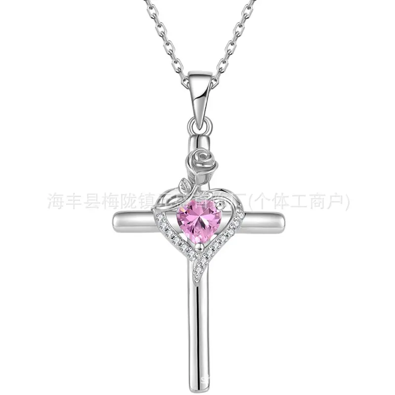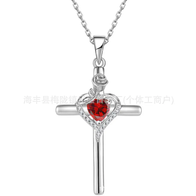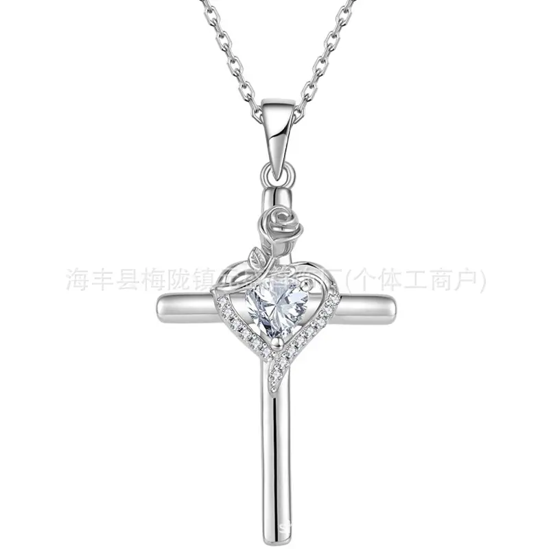 Collar con colgante de cruz de diamantes y cadena de clavícula con nicho de plata esterlina s925 transfronterizo europeo y americano, joyería personalizada retro