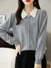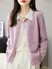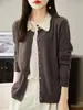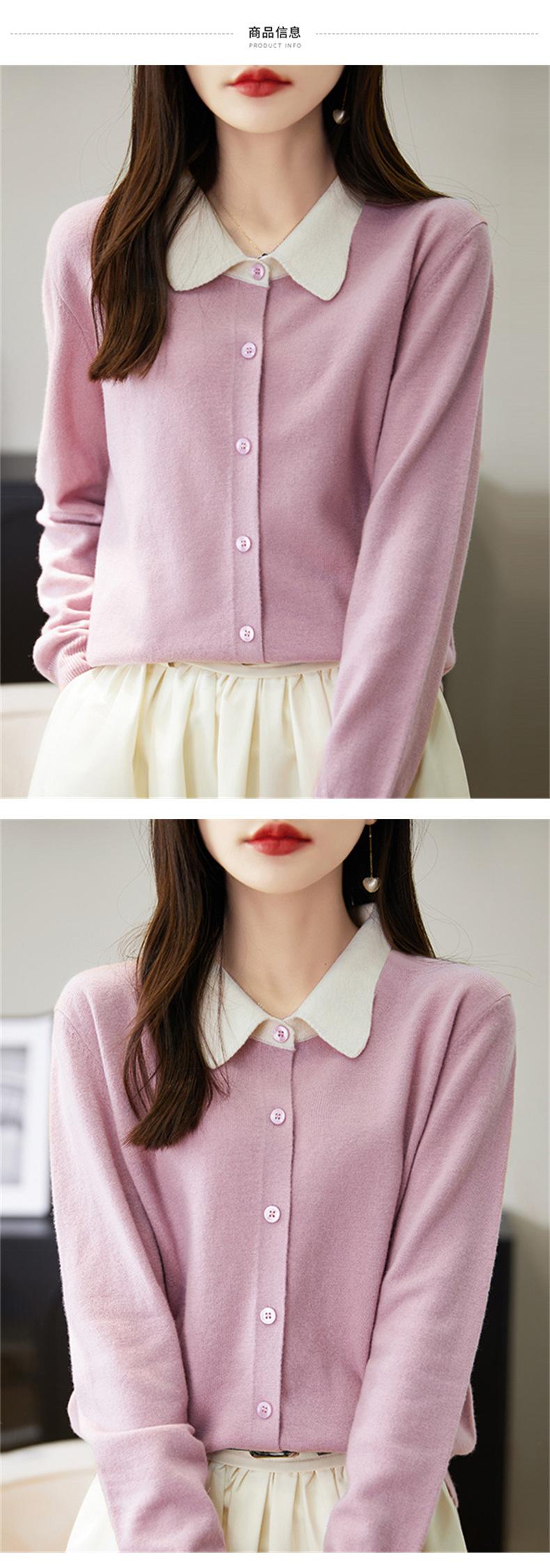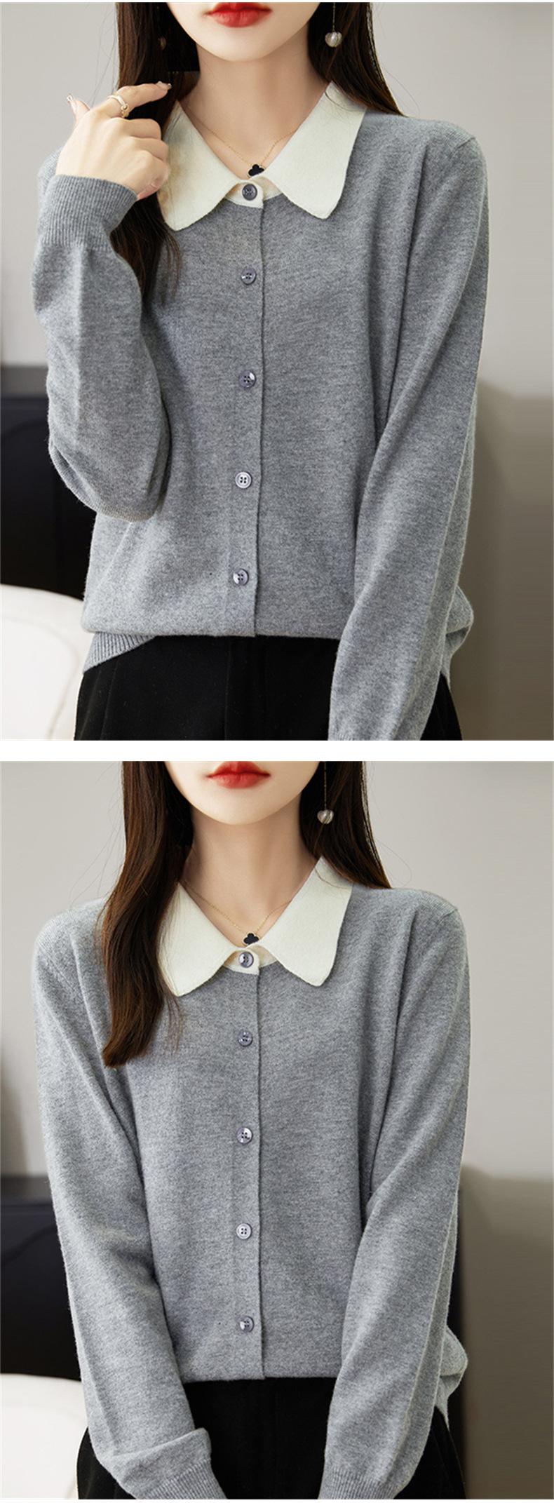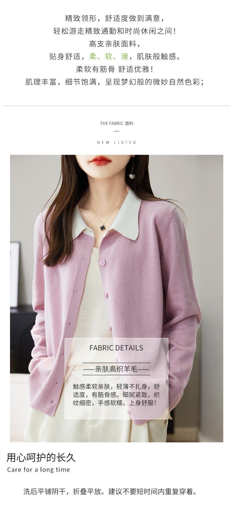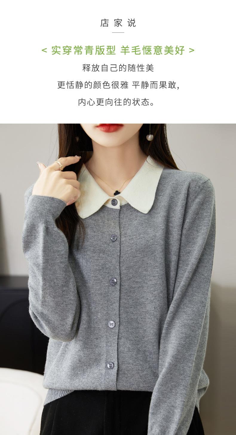 Suéter de lana de despacho de comercio exterior con solapa a juego de colores, cárdigan de punto 100% lana, abrigo pequeño de primavera y verano para mujer al por mayor