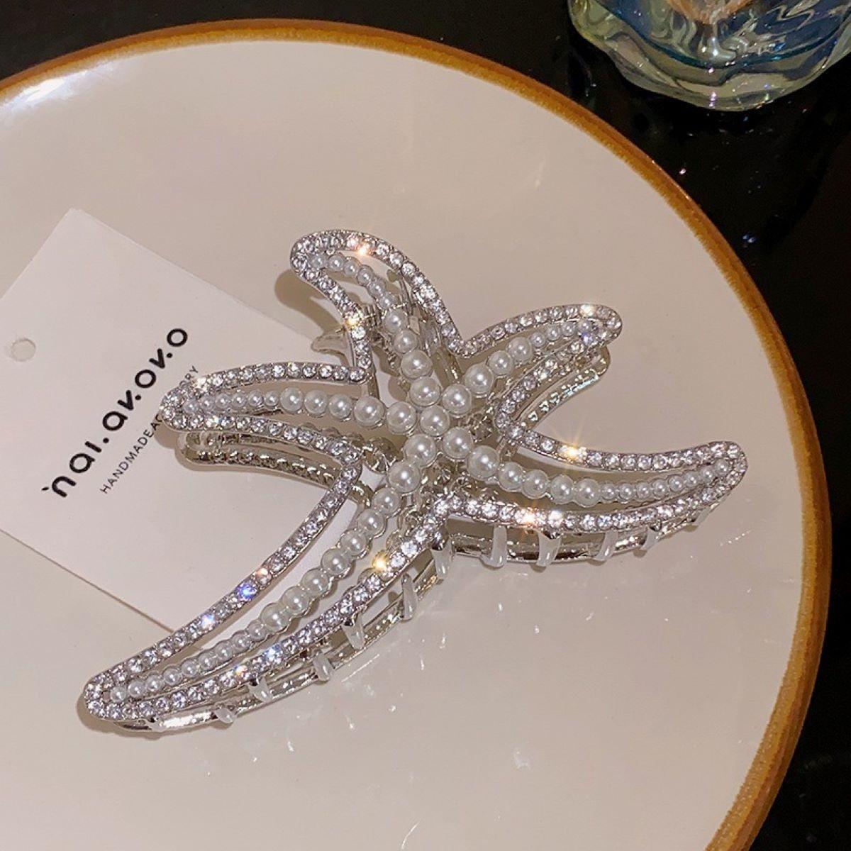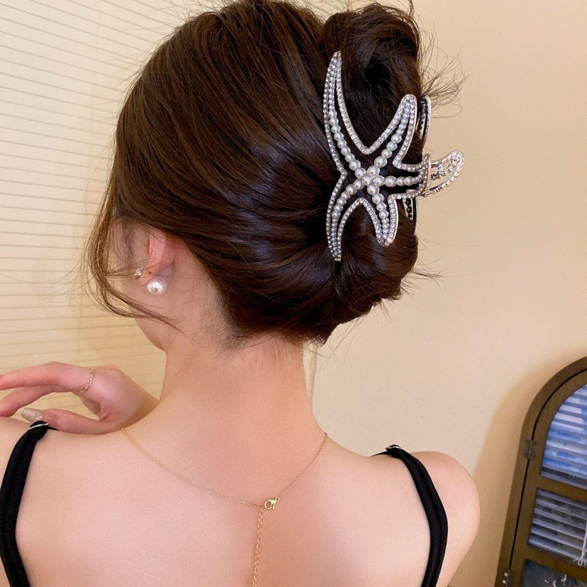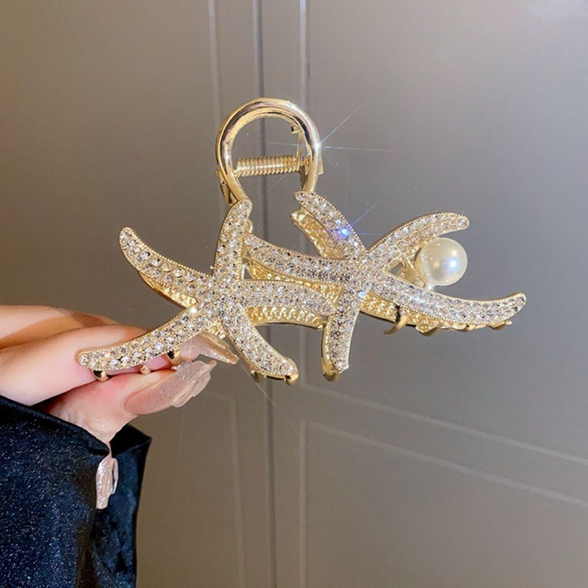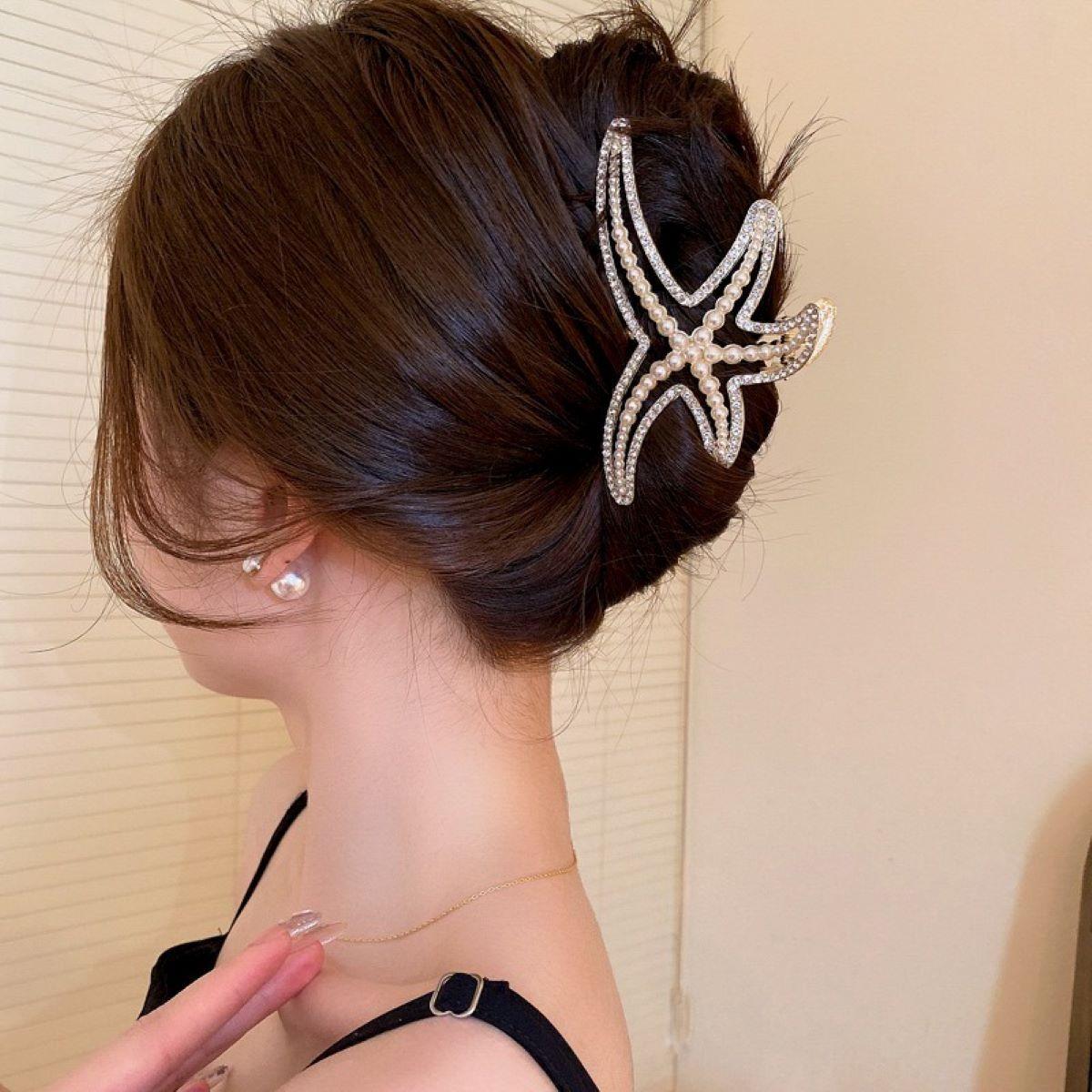 Pinza de Estrella de Mar de Diamantes Completo para Mujer 2023 Nuevo Clip para Parte Trasera de la Cabeza Horquilla Adorno para la Cabeza Clip de Tiburón Accesorios para el Cabello de Alta Gama Mujer