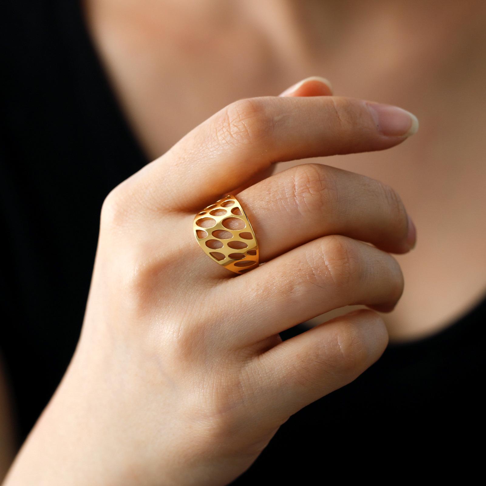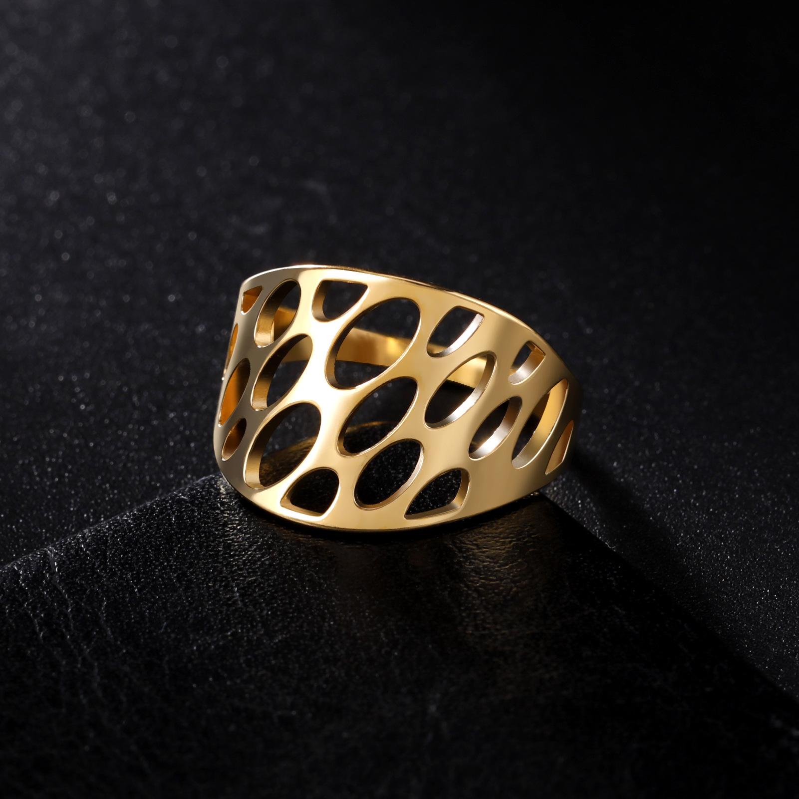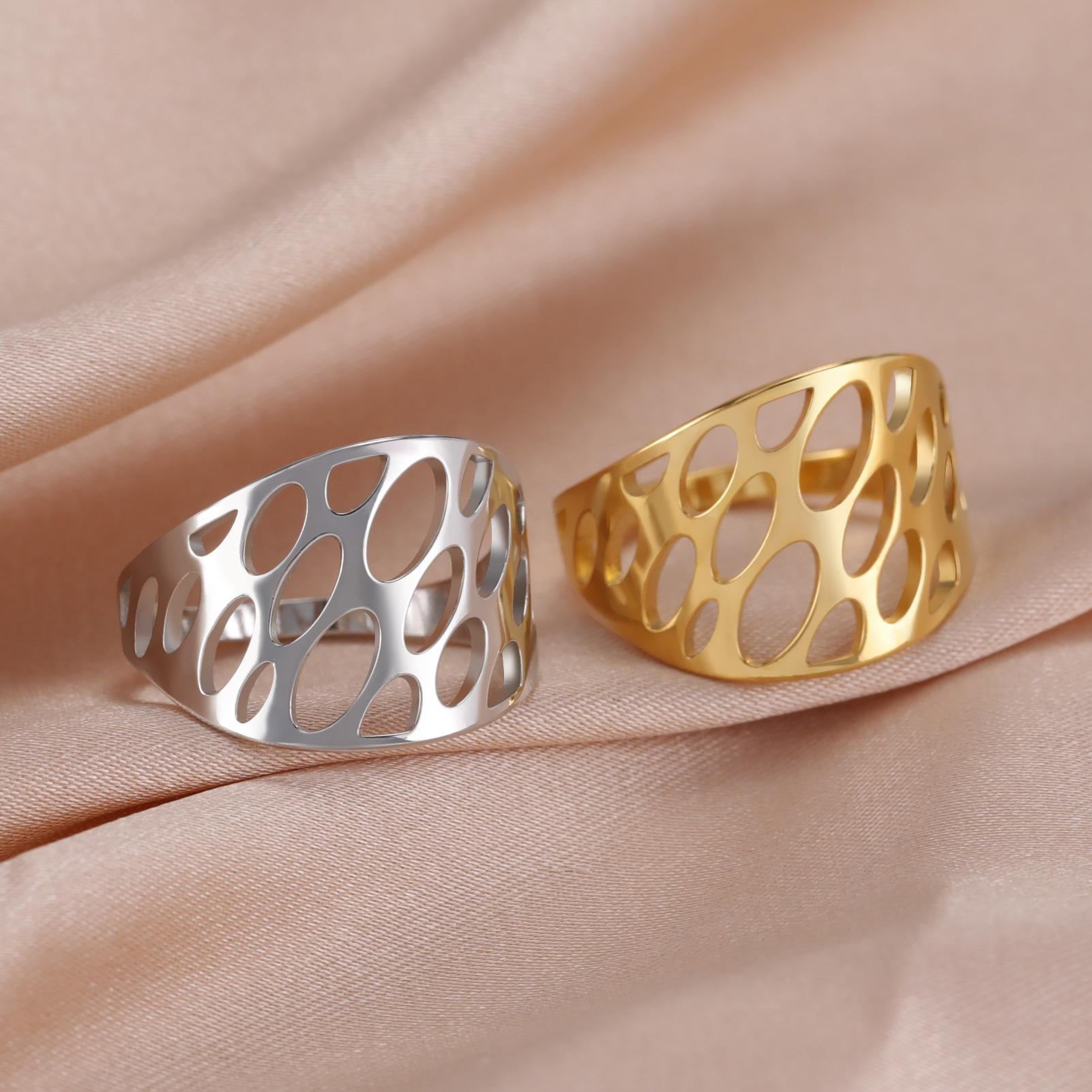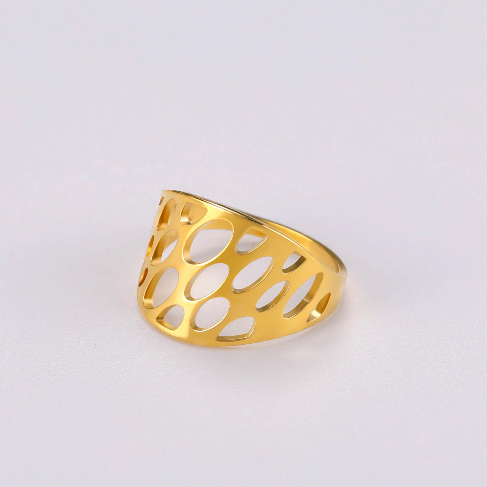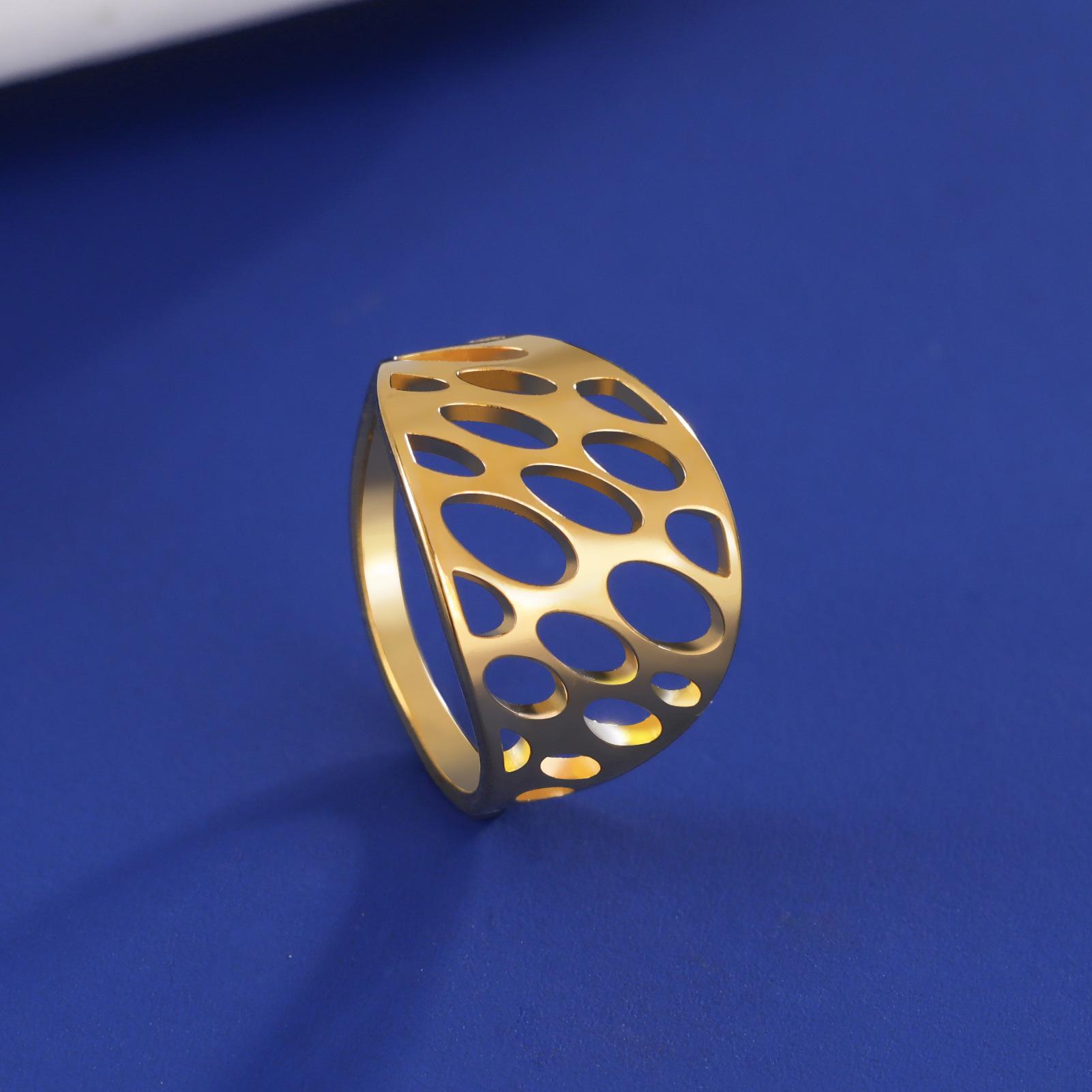 Anillo Ovalado Hueco Minimalista de Acero Inoxidable con Baño de Oro de 18K de Venta Caliente Europeo y Americano, Elegante y con Estilo, Anillo Unisex No Ajustable