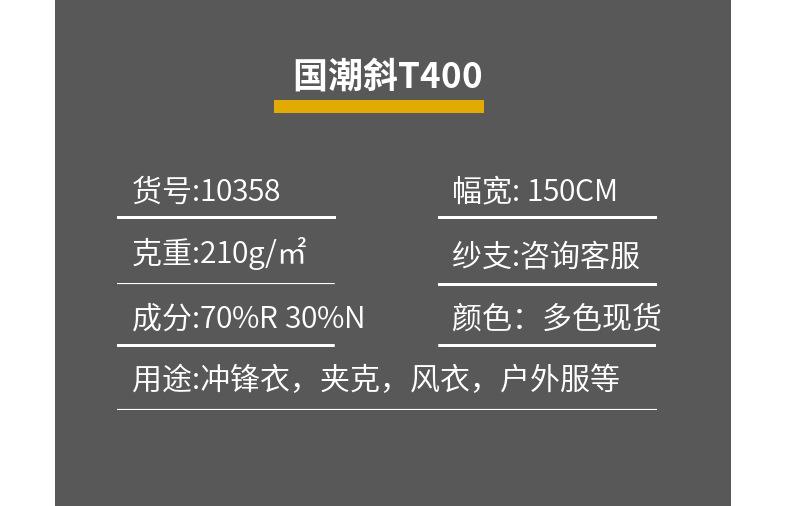 Tela de sarga T400 con memoria estilo chino oblicua impermeable 210g chaqueta ropa exterior abrigo tela de ropa casual