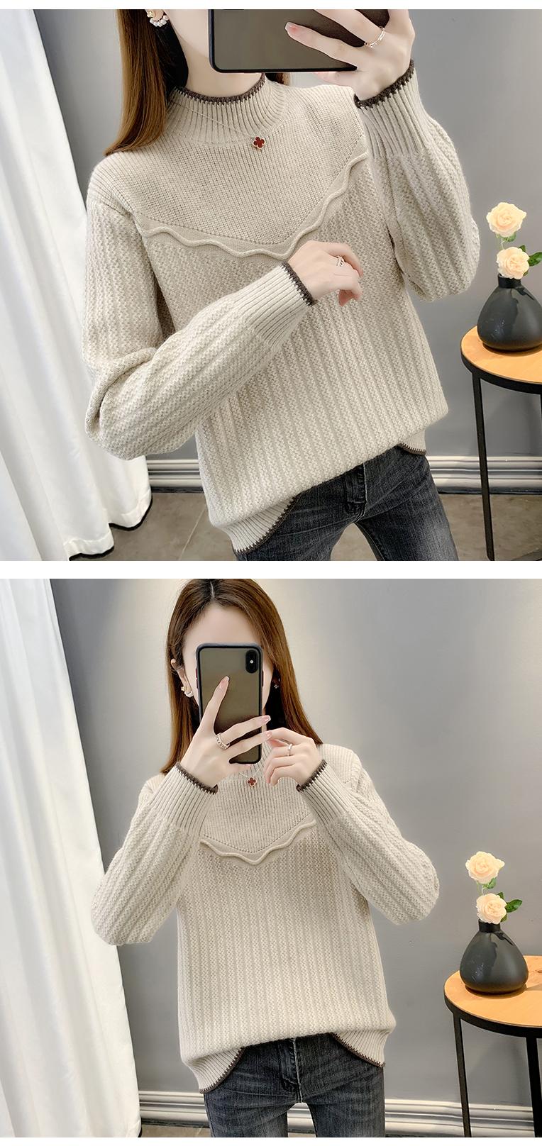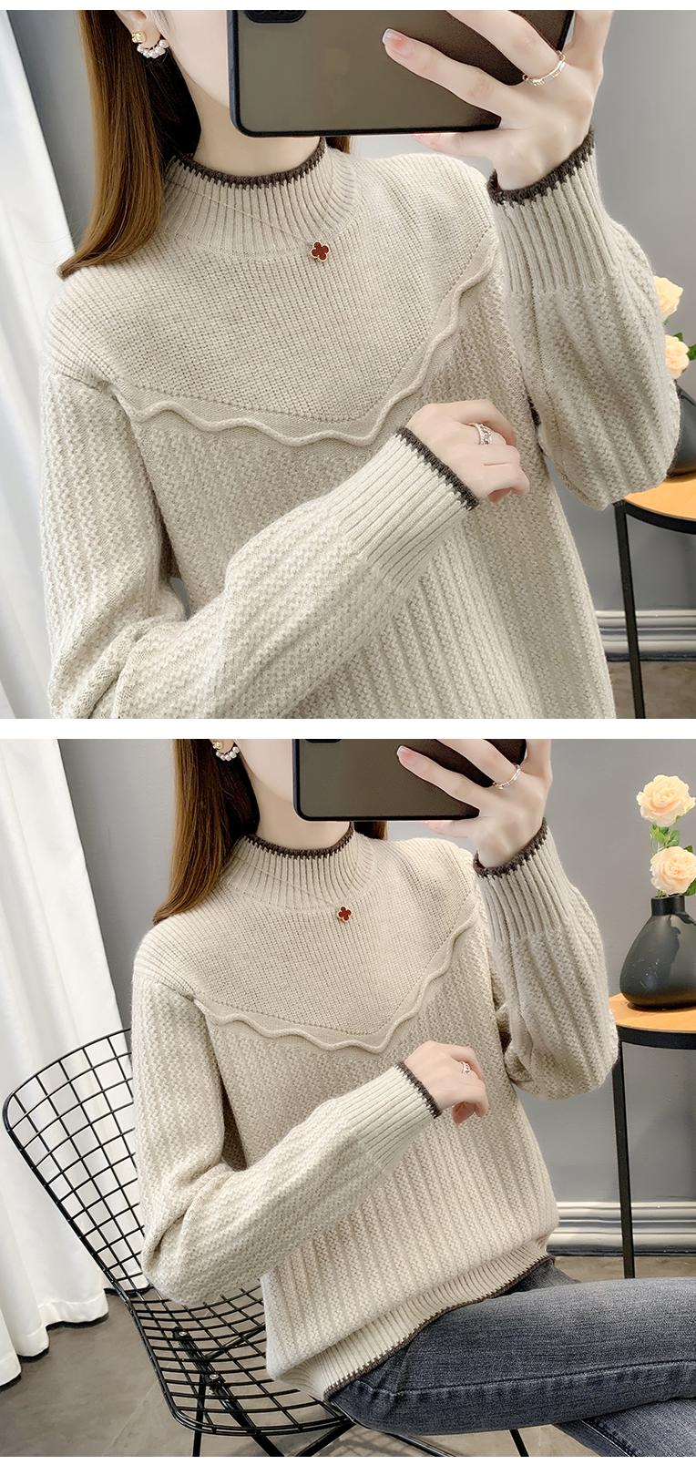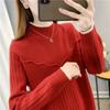 Suéter de cuello medio alto para mujer, nuevo otoño e invierno 2023, estilo popular y grueso, ropa interior cálida, camisa de punto de moda