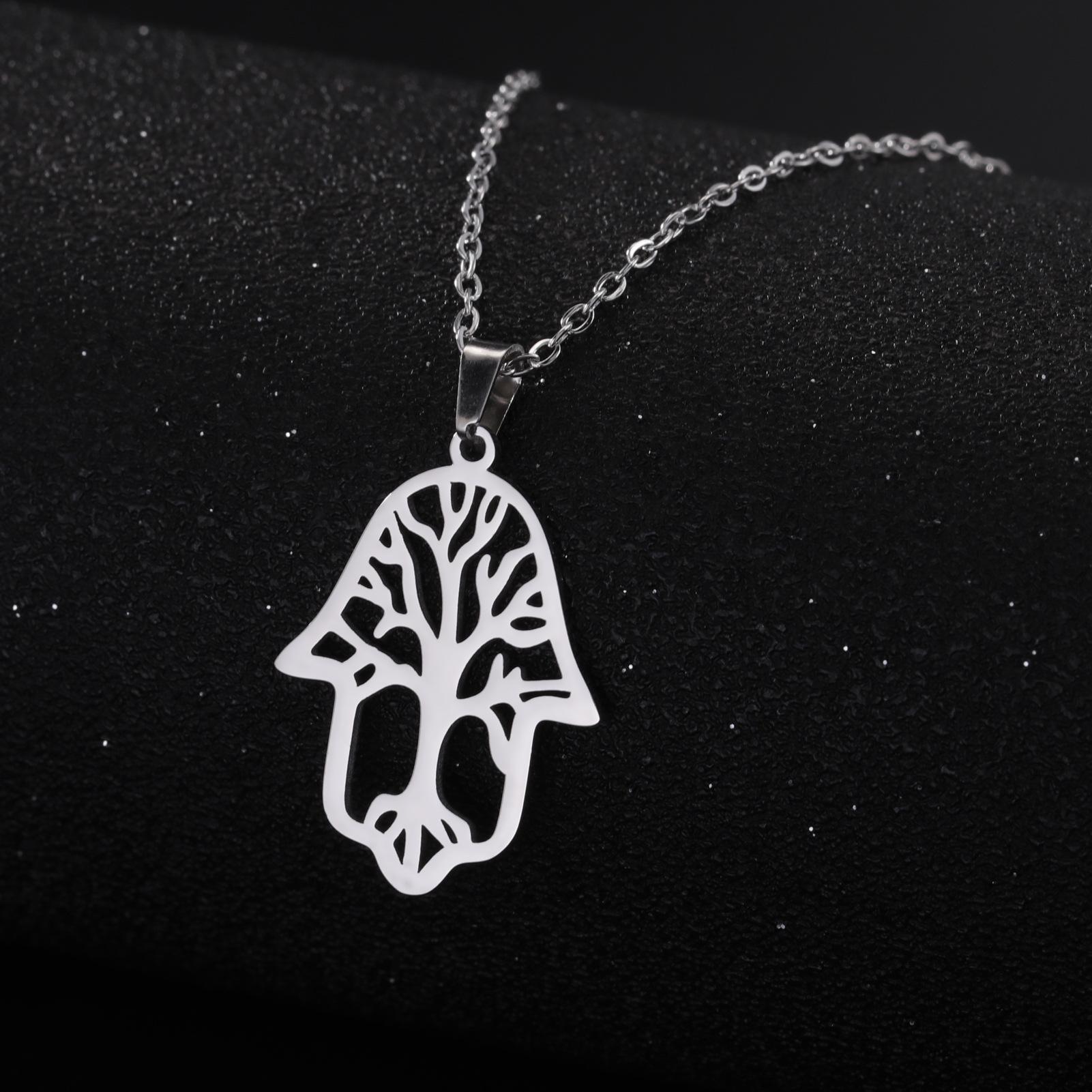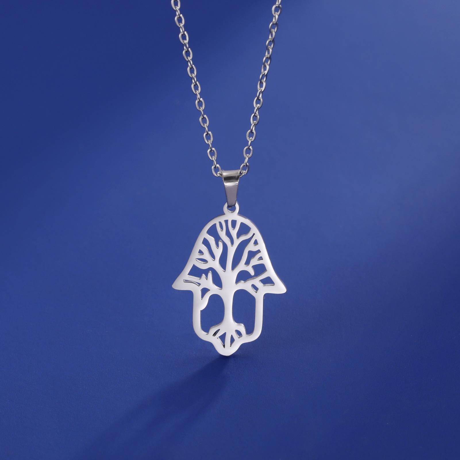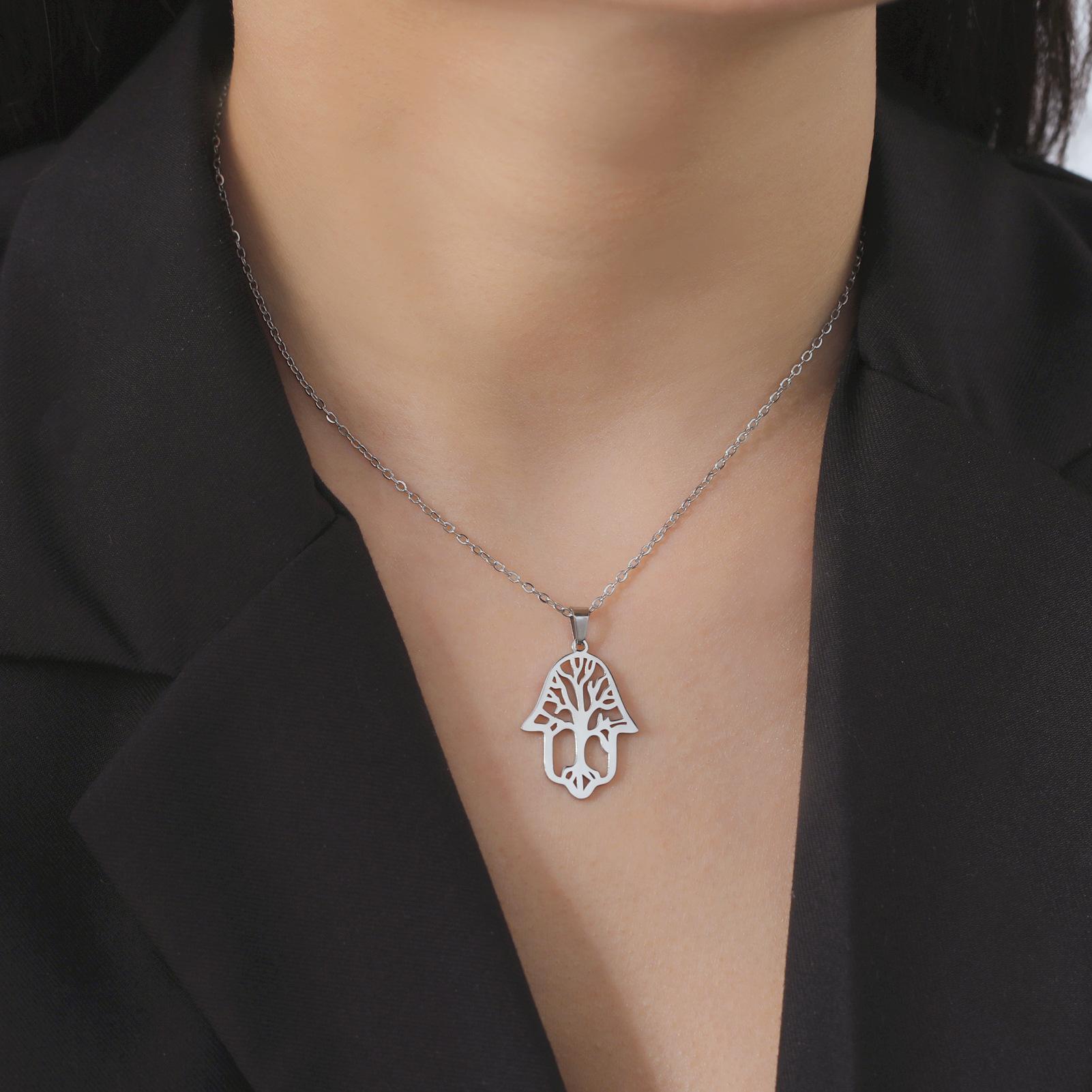 Collar árbol de la vida estilo artístico retro de venta caliente de comercio exterior transfronterizo acero inoxidable hueco árbol enraizado cadena clavicular de acero titanio para mujer