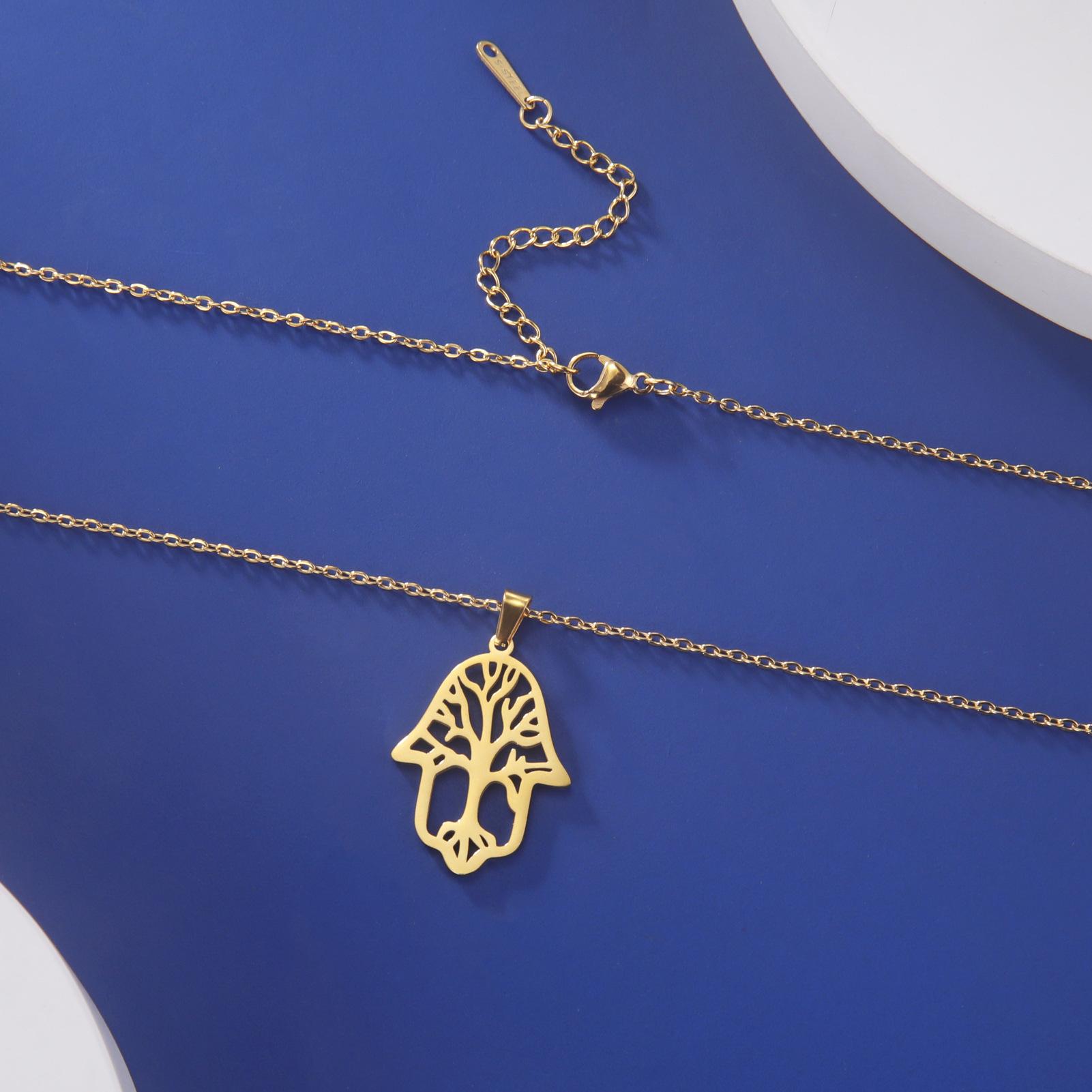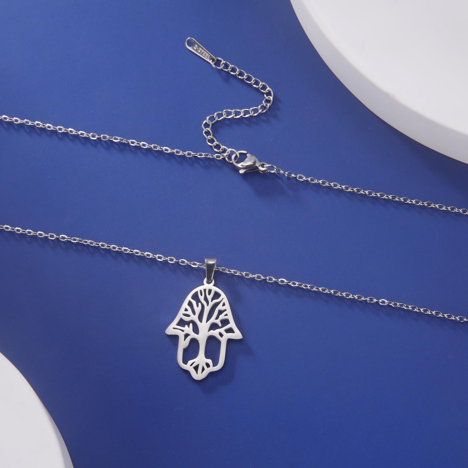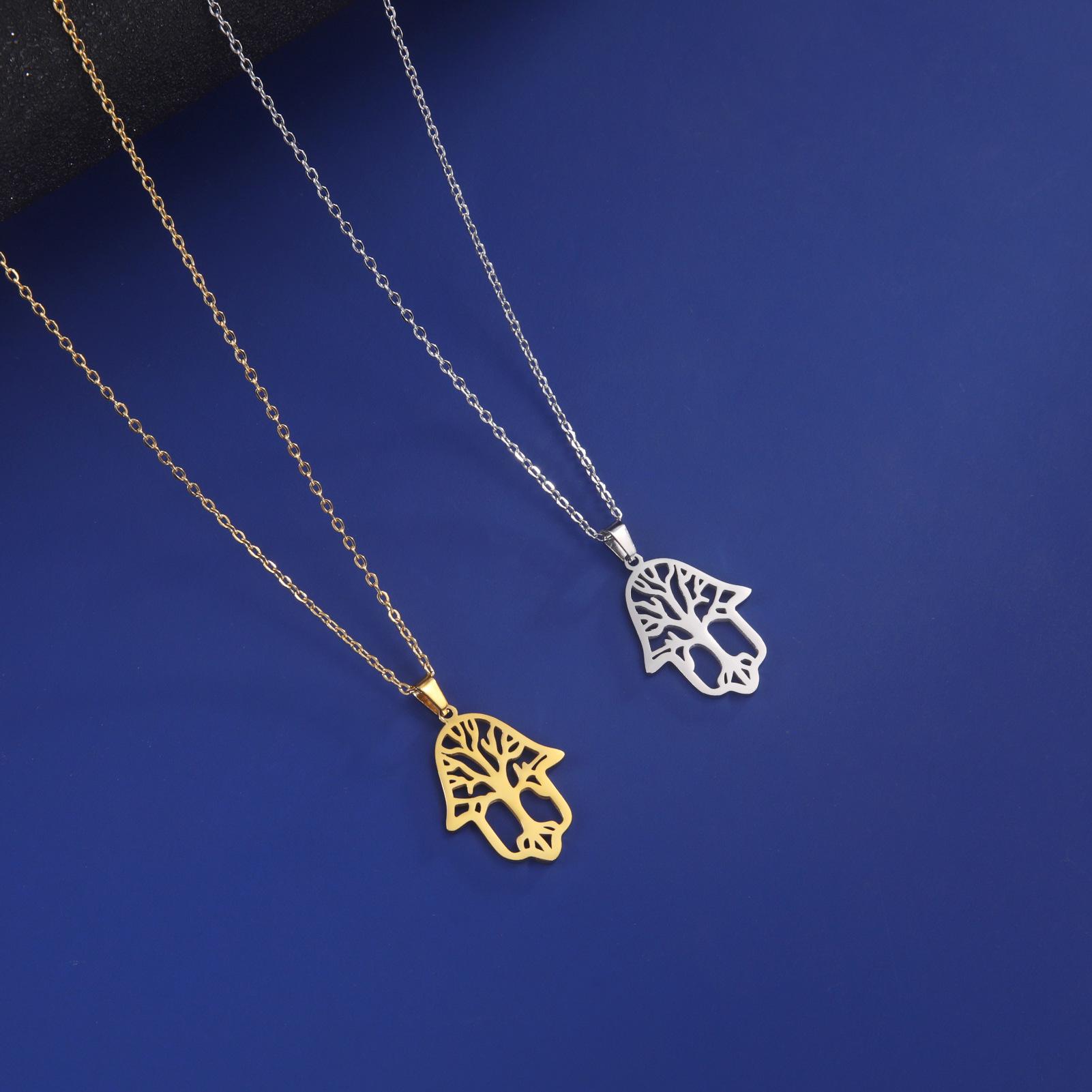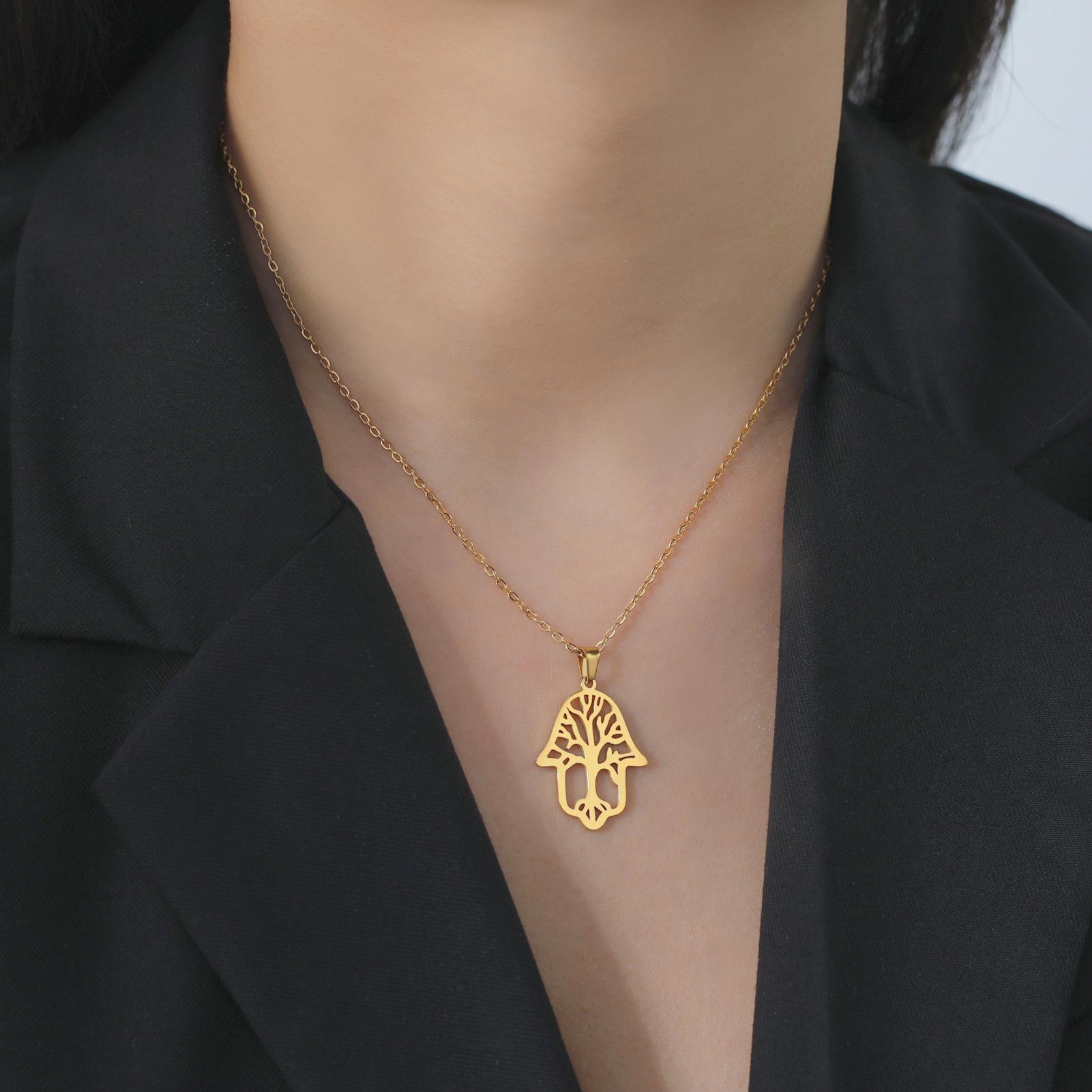 Collar árbol de la vida estilo artístico retro de venta caliente de comercio exterior transfronterizo acero inoxidable hueco árbol enraizado cadena clavicular de acero titanio para mujer