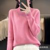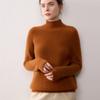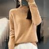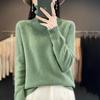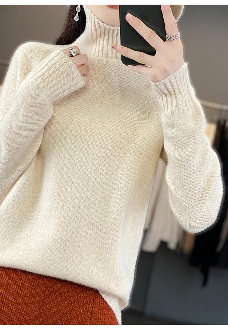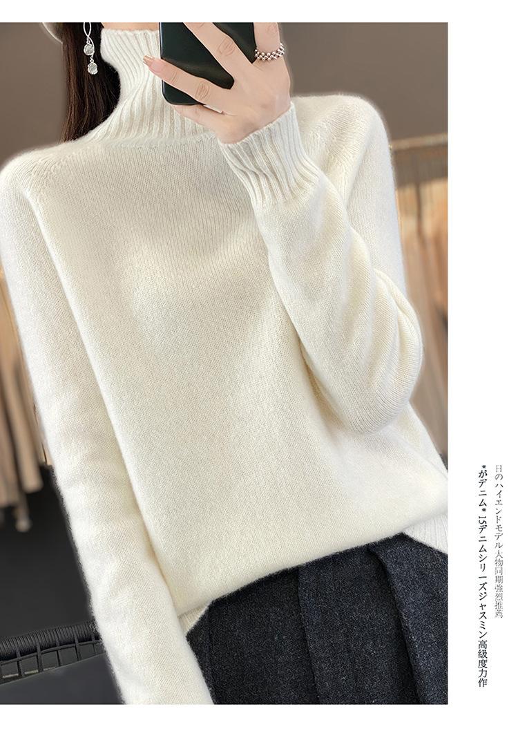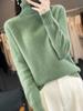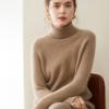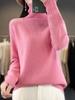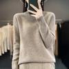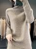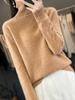 Suéter de cuello alto 100% lana pura para mujer, jersey de cachemira de manga larga, suéter de punto holgado versátil, camisa base para otoño e invierno