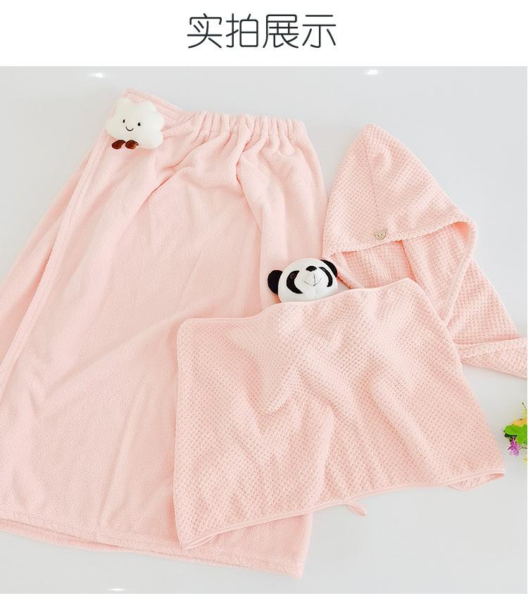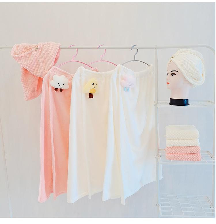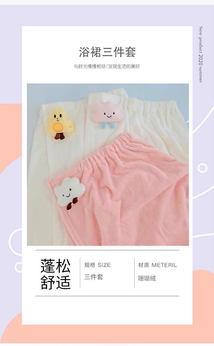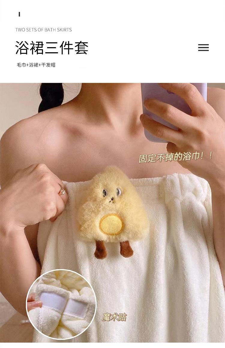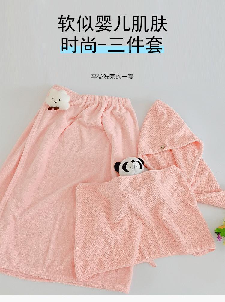 Bata de baño de dibujos animados para llevar, estilo envolvente, toalla de baño para adulto absorbente de secado rápido, juego de toalla de tres piezas, gorro para secar el cabello, falda de baño, terciopelo coral