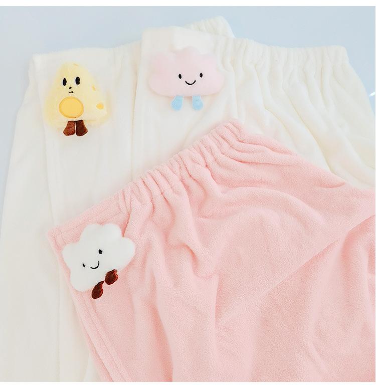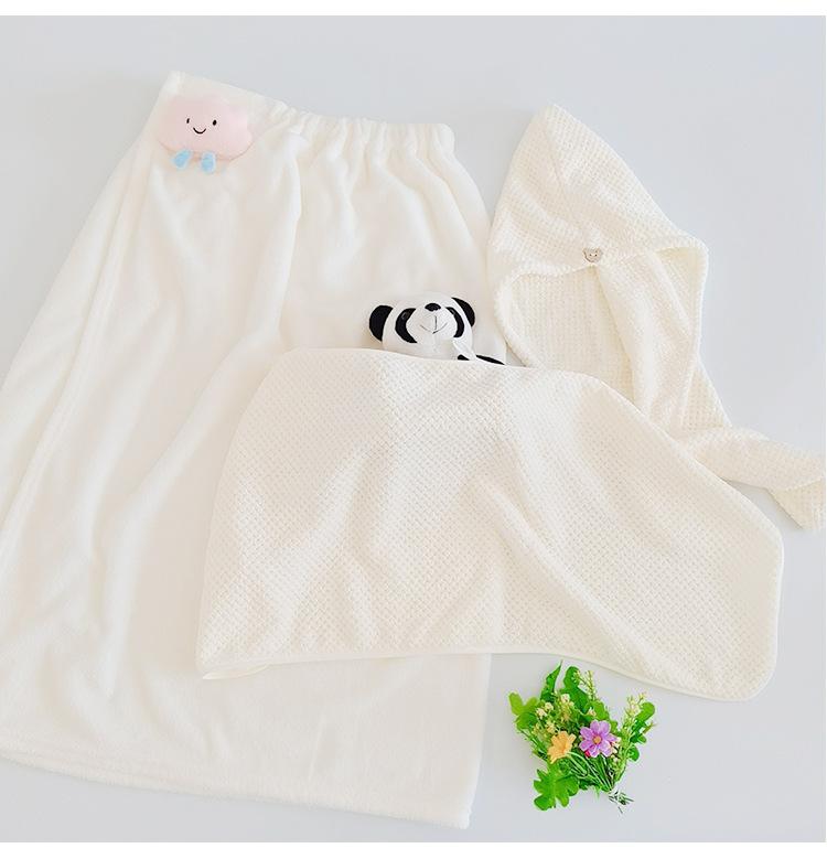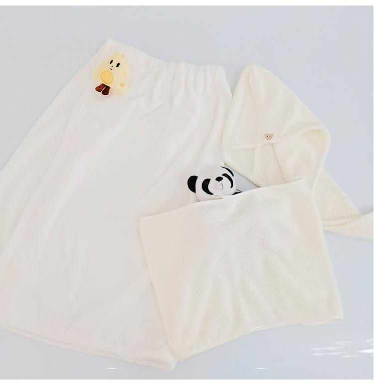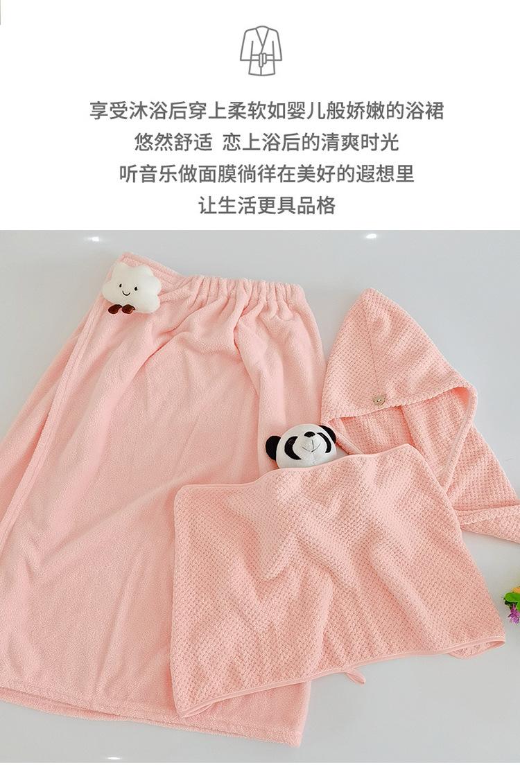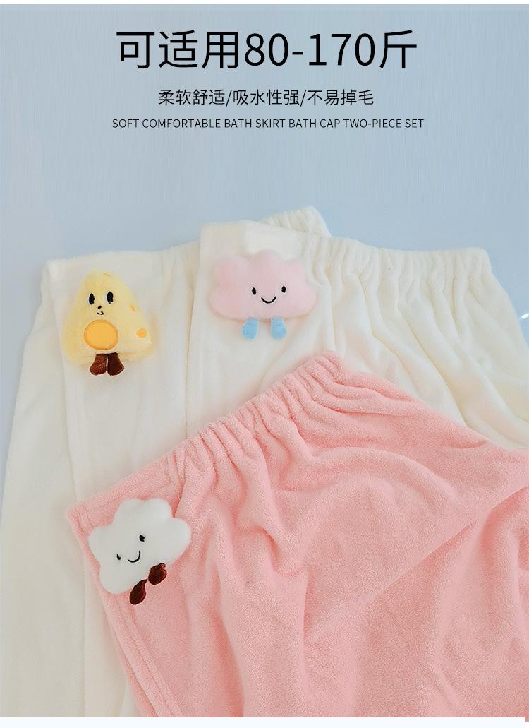Bata de baño de dibujos animados para llevar, estilo envolvente, toalla de baño para adulto absorbente de secado rápido, juego de toalla de tres piezas, gorro para secar el cabello, falda de baño, terciopelo coral