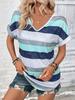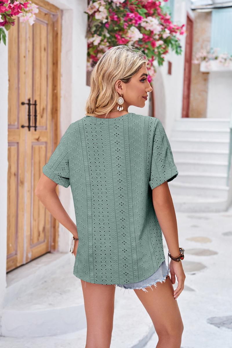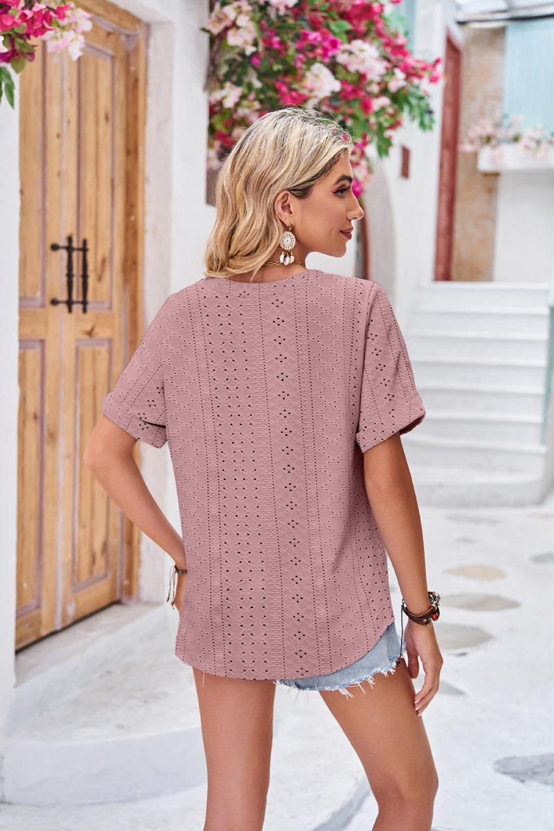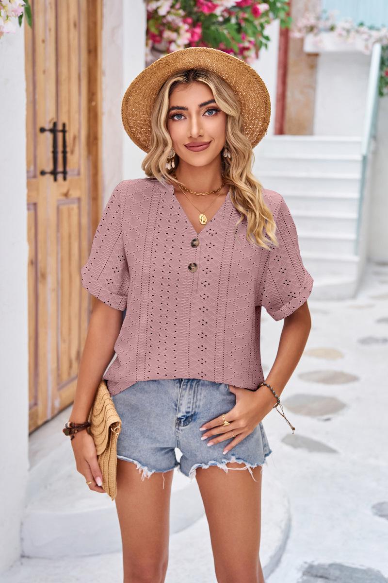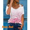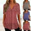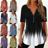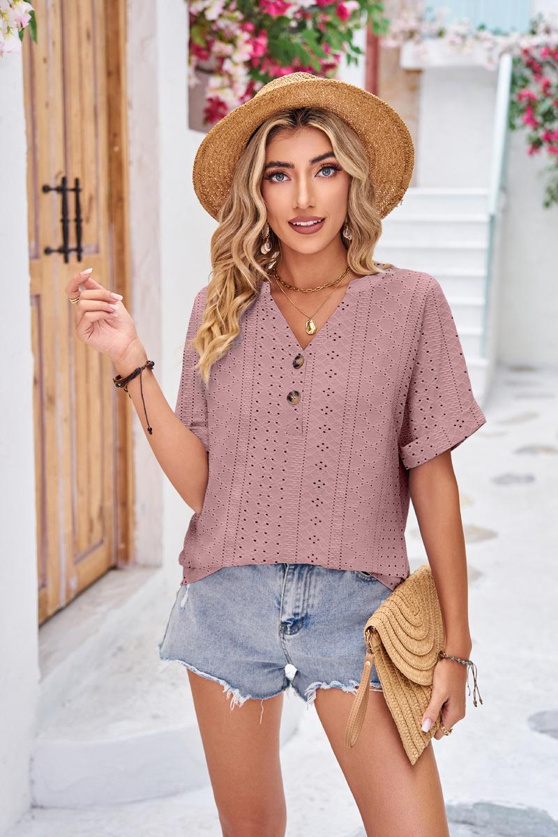 Nueva camiseta de manga corta con cuello en V y botones rizados para mujer de Amazon europea y americana transfronteriza, estilo casual y holgado.