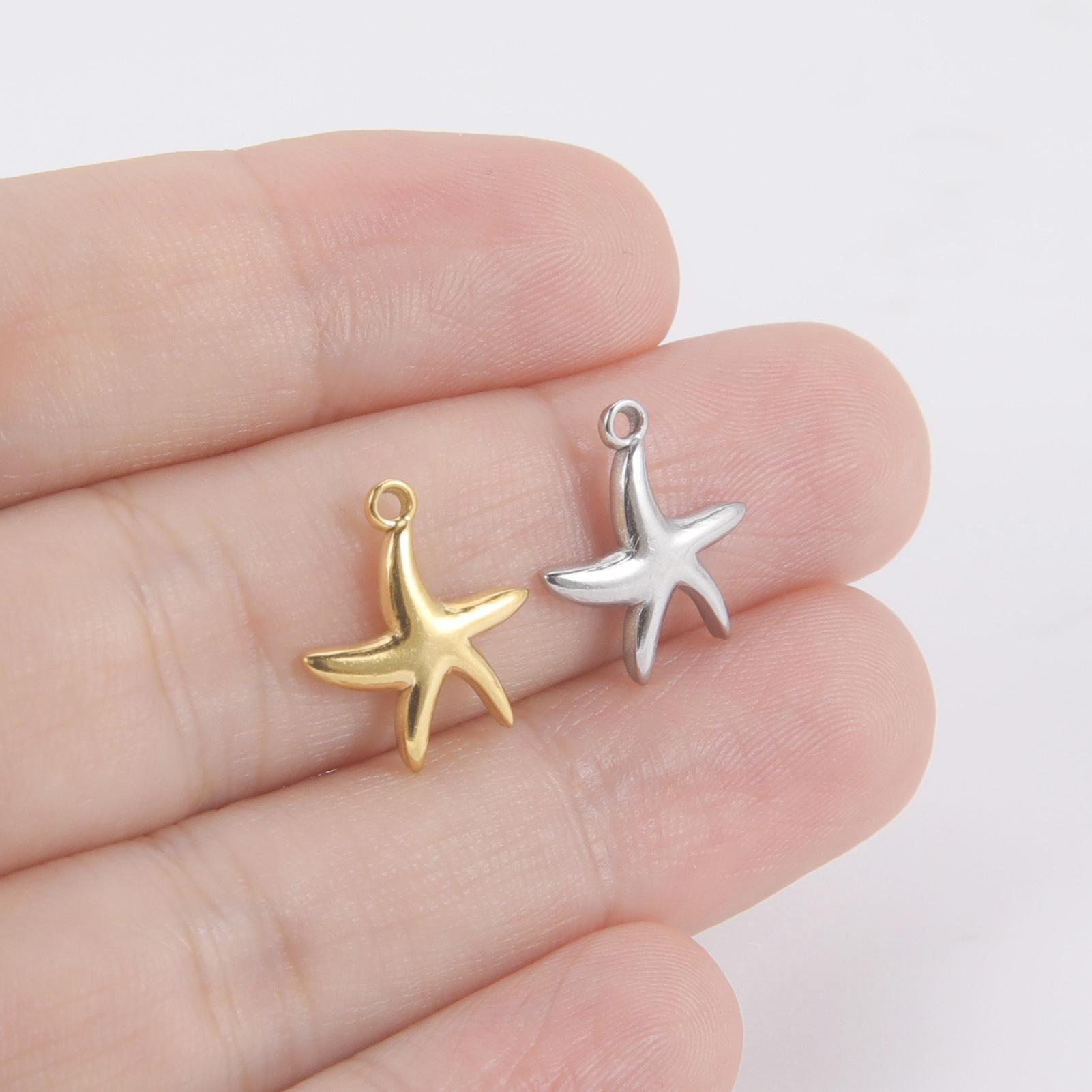 Accesorios de joyería de acero inoxidable chapado en oro real de 18K DIY no se decolora brillante curvo estrella de mar pulsera aretes collar colgante
