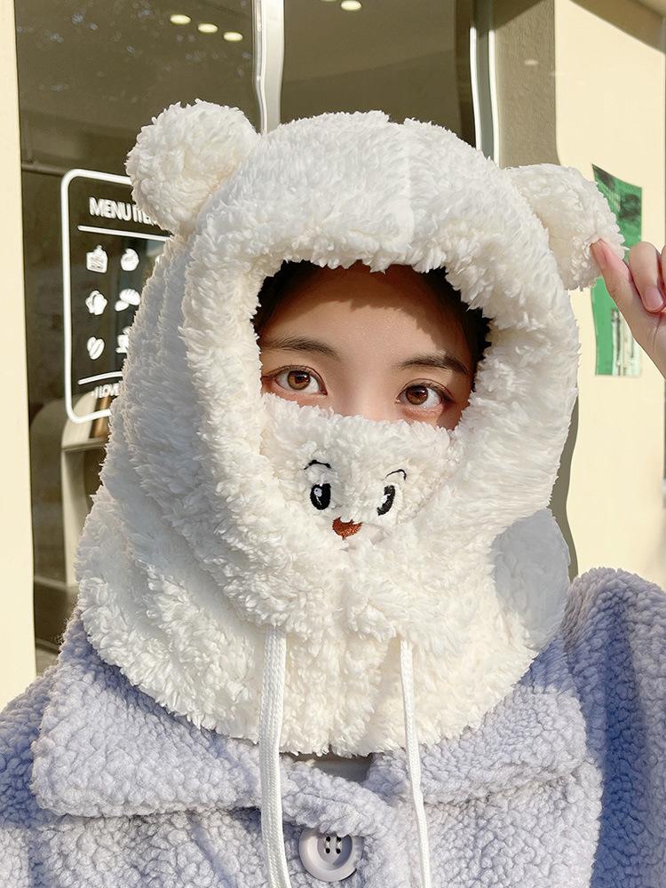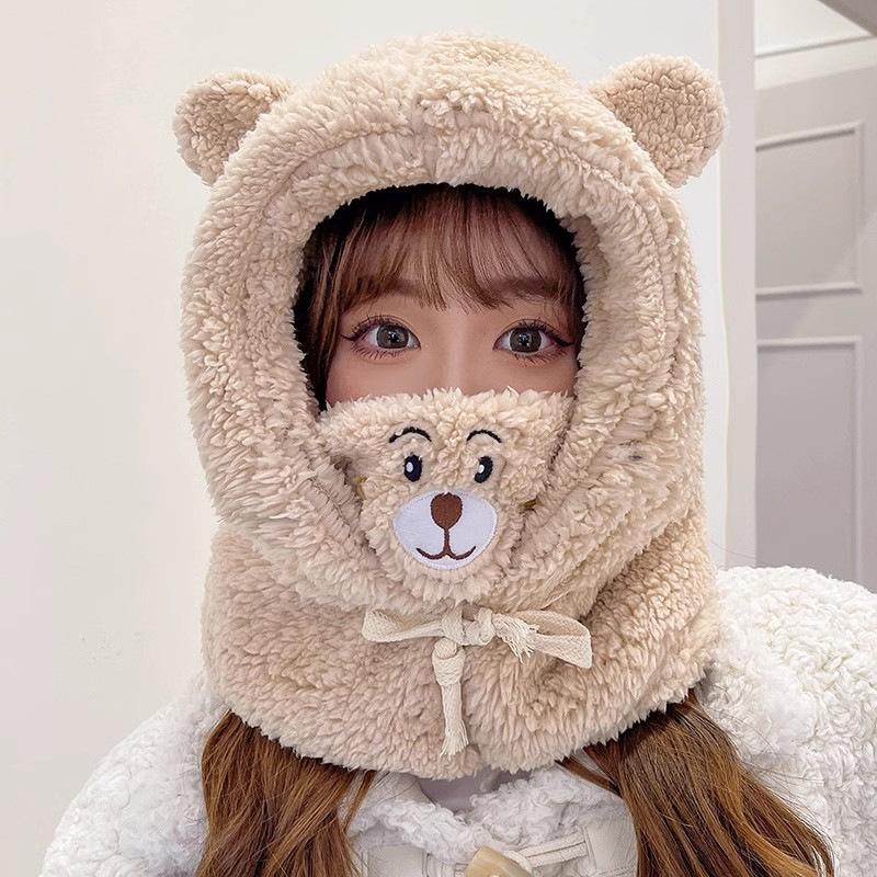 Gorro de oso para ciclismo, cálido, bonito, resistente al viento y al frío, bufanda integrada, máscara, bufanda, gorro para coche eléctrico, invierno