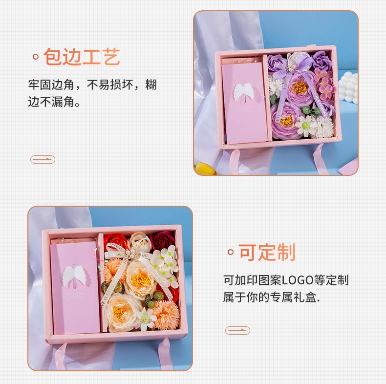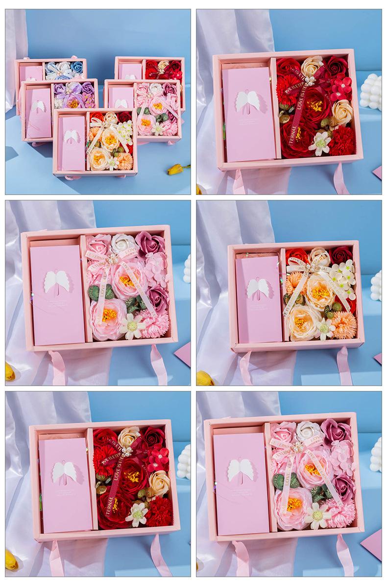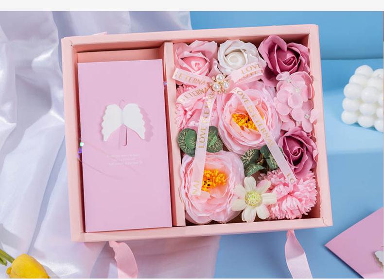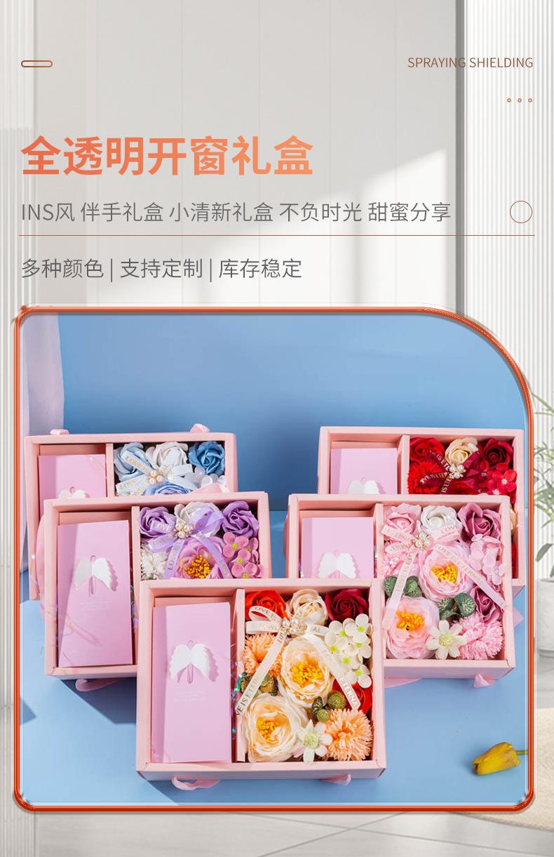 Caja de regalo con ventana transparente que se abre, ideal para el Día del Maestro, con rosas eternas, ramo y regalo de diosa.