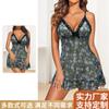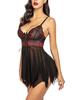 Lencería Sexy Europea y Americana Tirantes Lencería Sexy Camisón de Encaje con Dobladillo de Malla para Mujer Pijama Sexy para Mujer