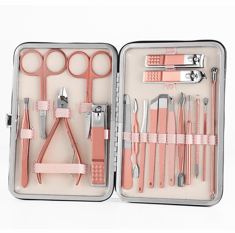 Cortaúñas de 18 piezas, accesorios de acero inoxidable, cortaúñas, herramientas de manicura y pedicura, logotipo impreso.