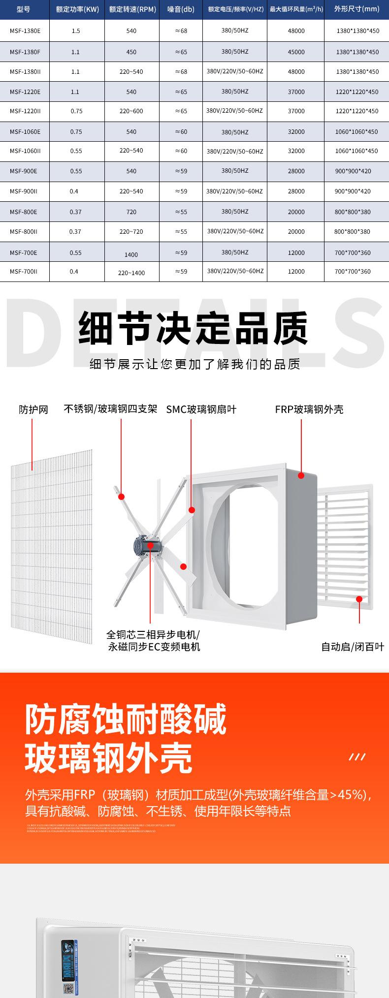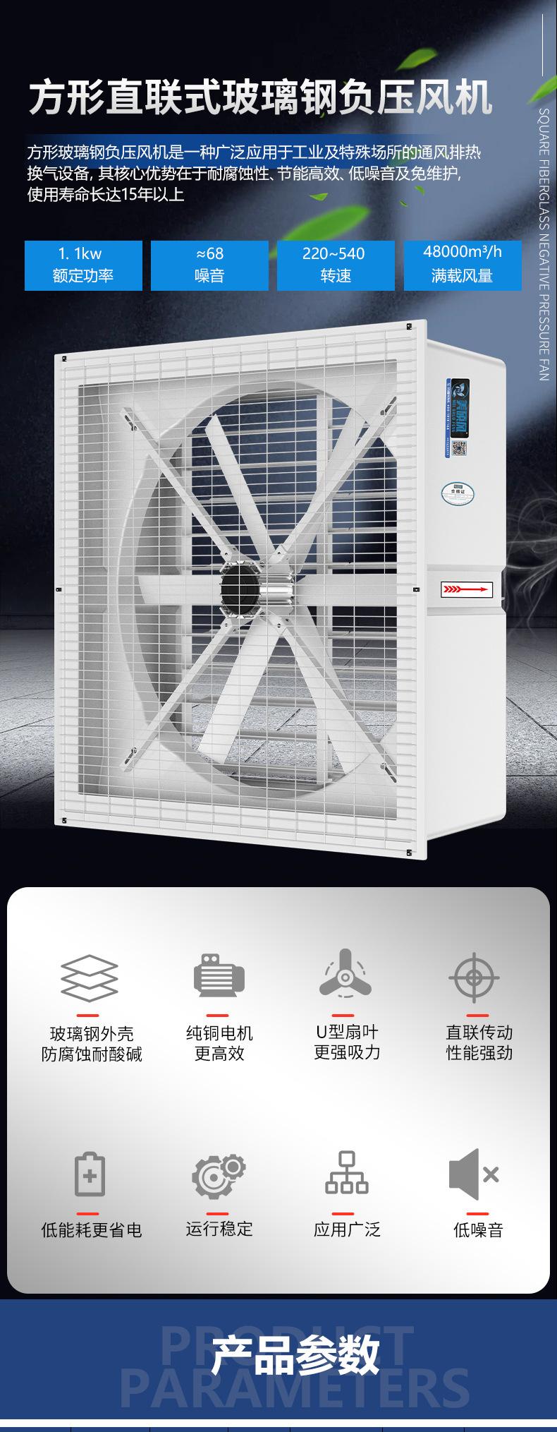 Ventilador de Fibra de Vidrio de Transmisión Directa de Presión Negativa Ventilador de Extracción Industrial Ventilador de Extracción para Ventilación y Enfriamiento de Fábrica Ventilador de Extracción de Ventana