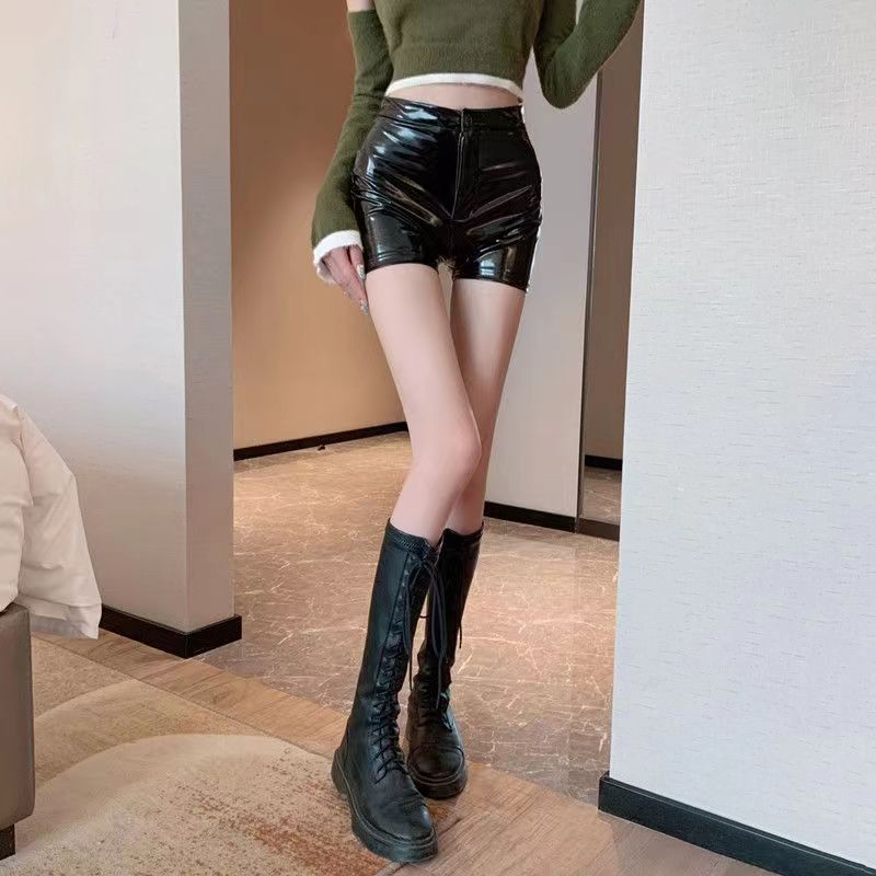 Bolso de cuero brillante cadera shorts de cuero 2023 versátil nicho sexy chica hot resaltador ropa de escenario de club nocturno shorts ajustados para mujer