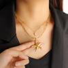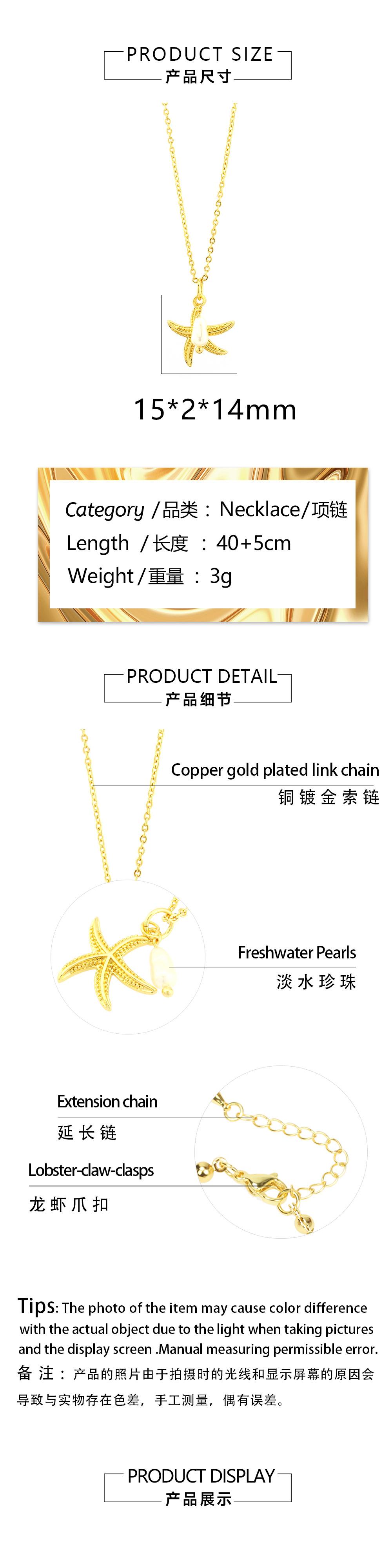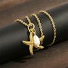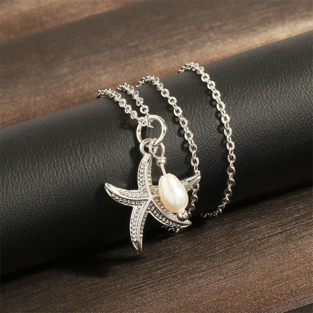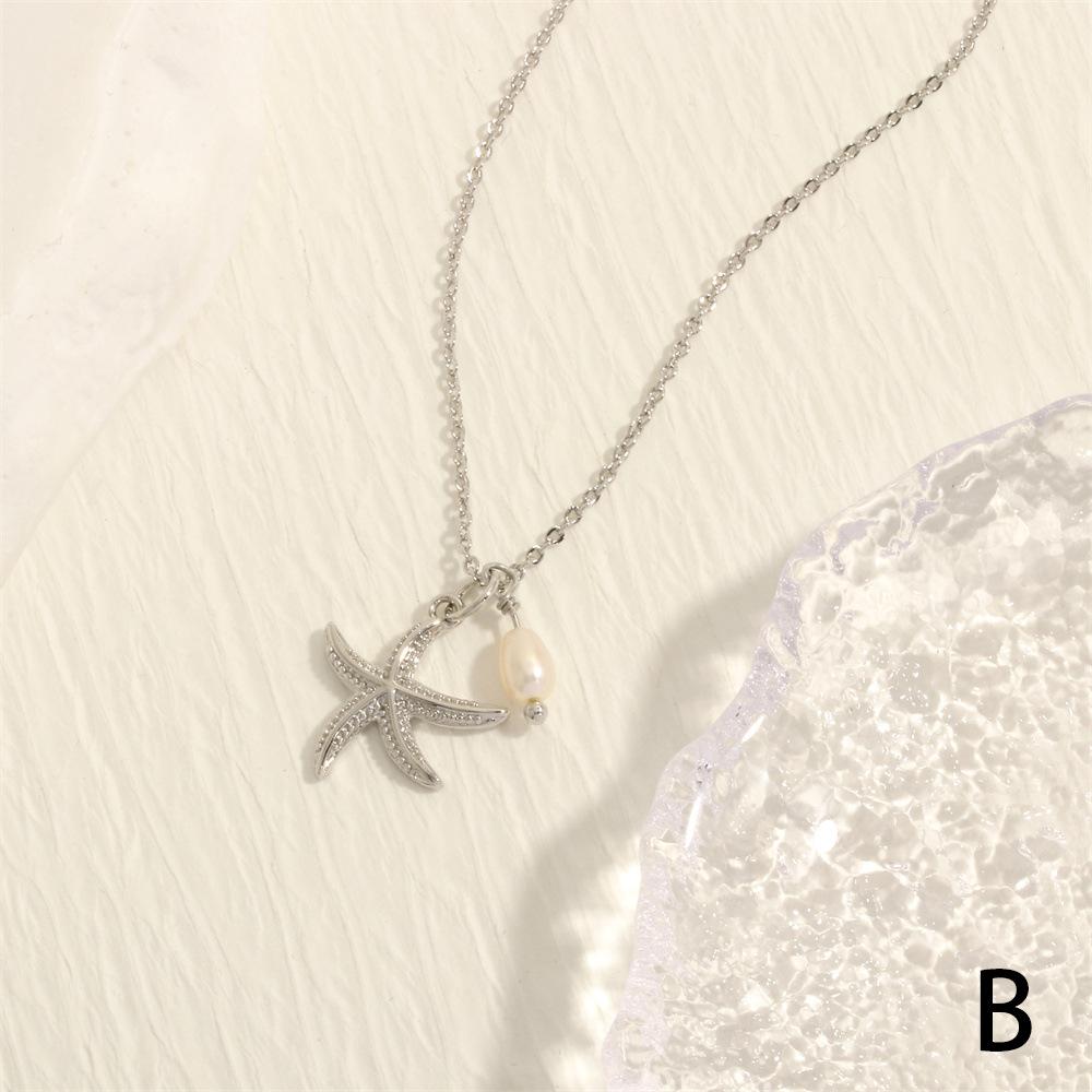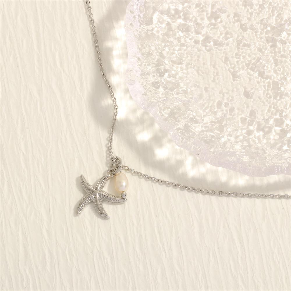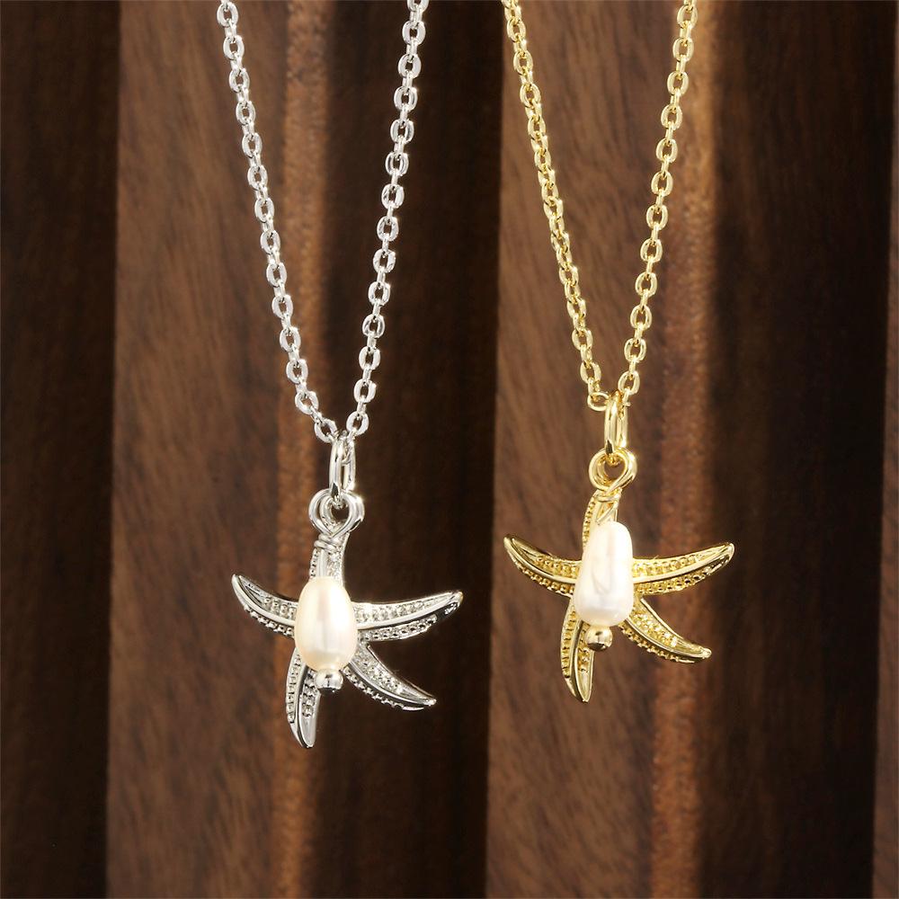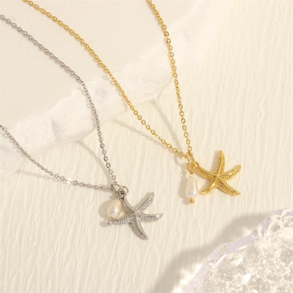 Collar con colgante de estrella de mar y perlas de estilo coreano transfronterizo, elegante y sencillo, con cadena de clavícula chapada en oro de 18 quilates.