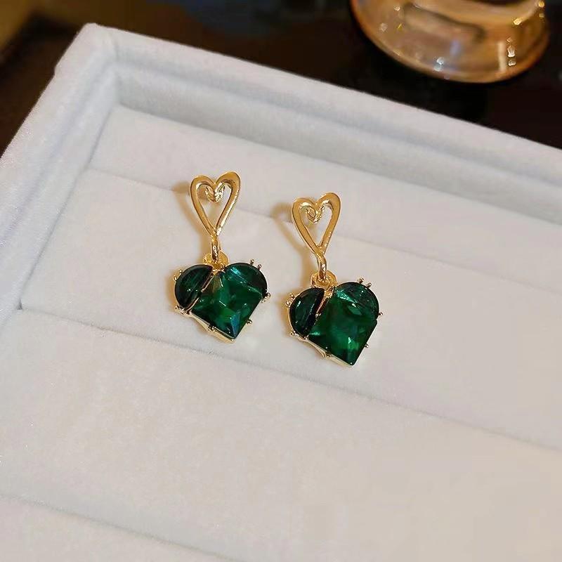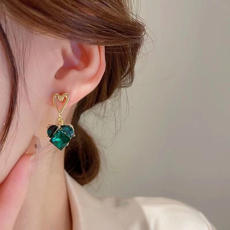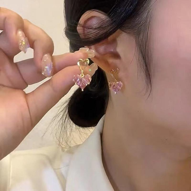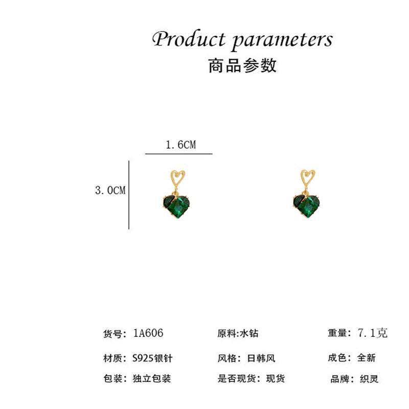 Pendientes pequeños con diseño de Dongdaemun de Corea del Sur con aguja de plata S925 y diamantes de imitación de amor. Pendientes de viaje súper exquisitos que combinan con todo para mujer.
