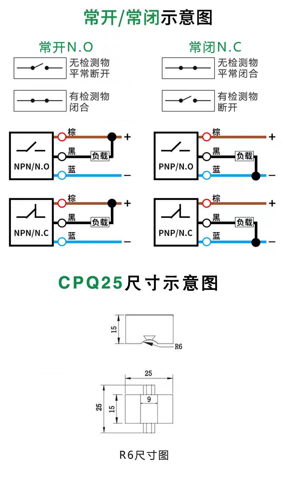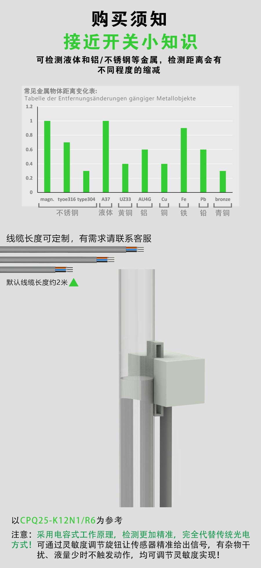 CPQ25-K12N1/R6: distance: 2-12mm adjustable NPN normally open convex head non-embedded Q25, CPQ25-K12N2/R6: di...