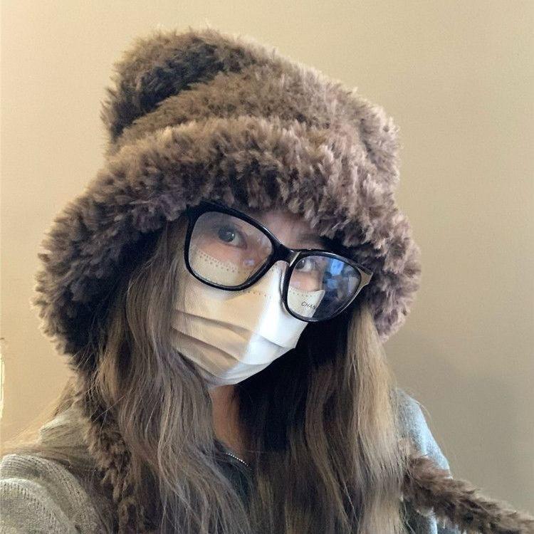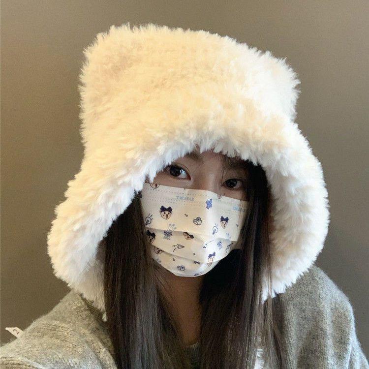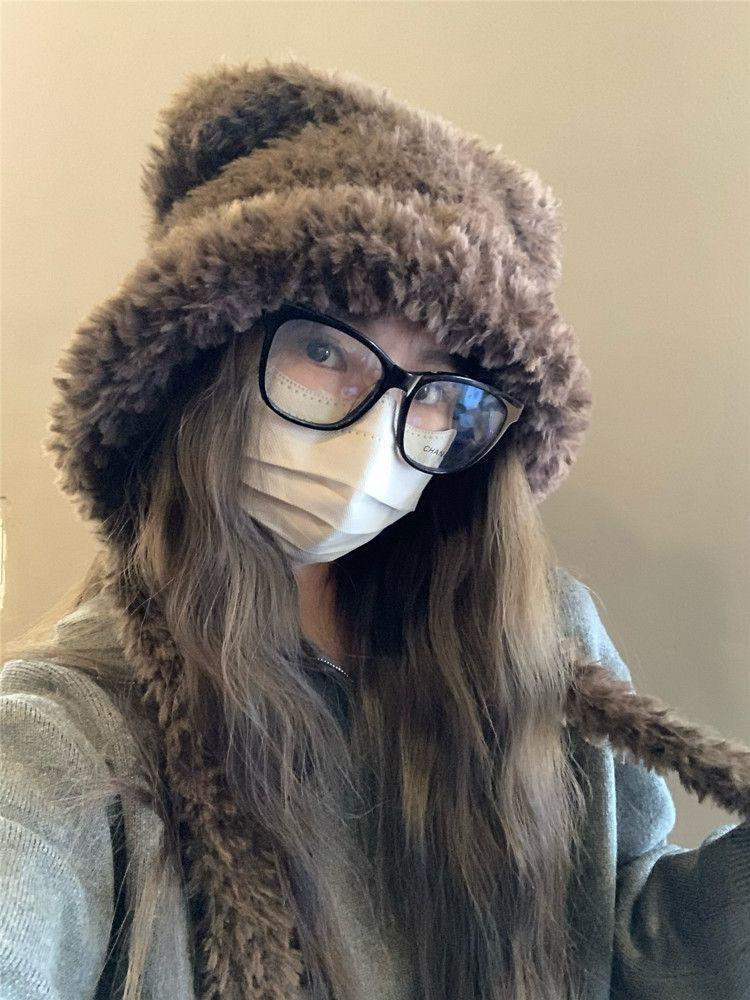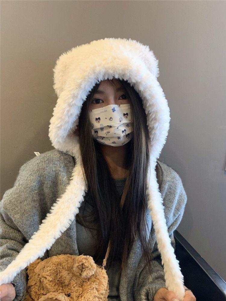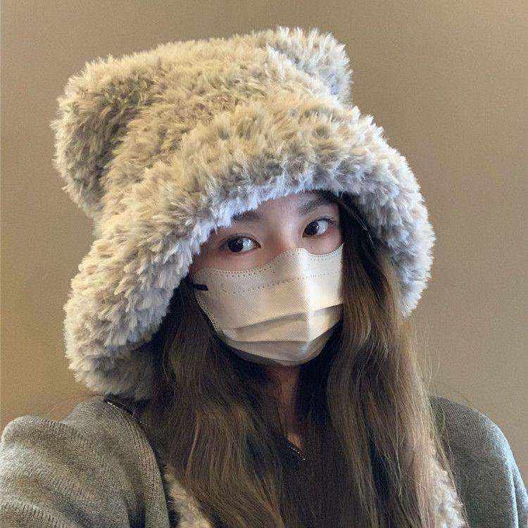 INVERNADEROS lindo gorro de oso de peluche con orejas para mujer otoño e invierno cálido protección para las orejas circunferencia de cabeza grande sombrero Lei Feng