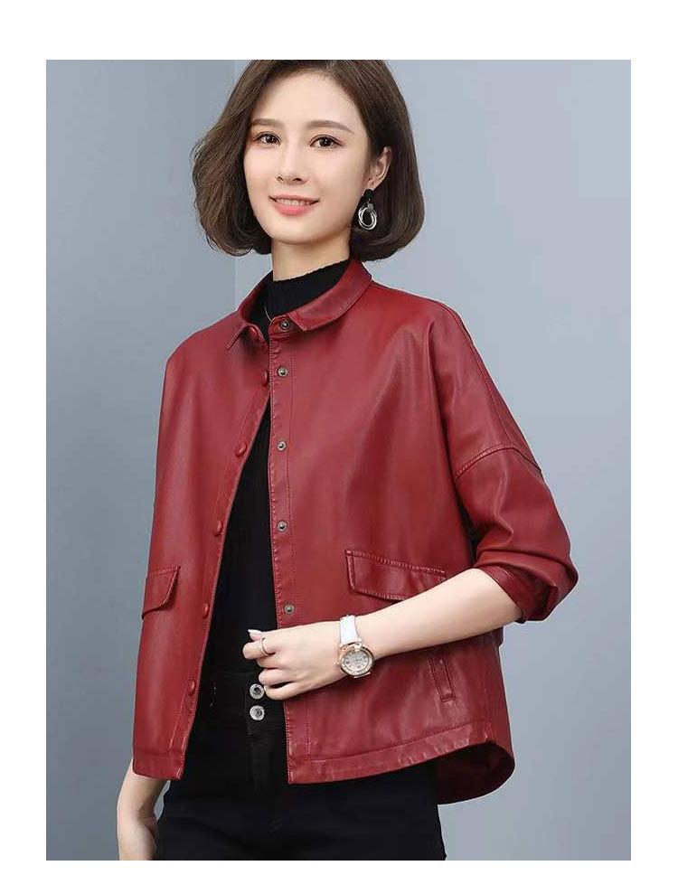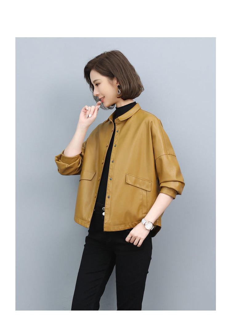 Chaqueta de cuero sintético para mujer, chaqueta corta de cuero holgada de primavera, informal, adelgazante, 2023
