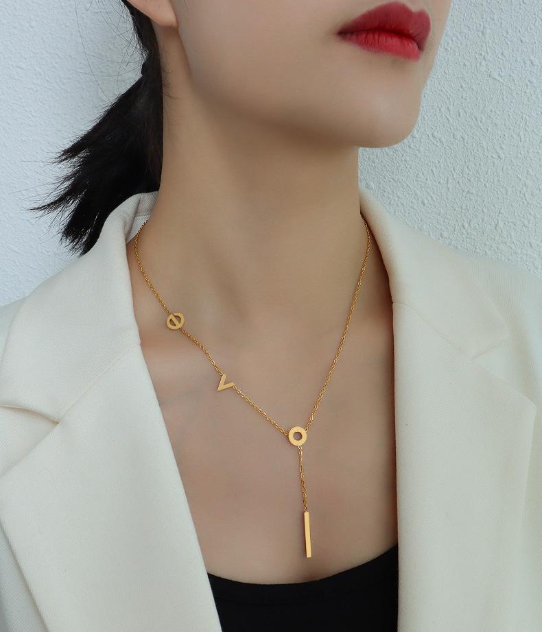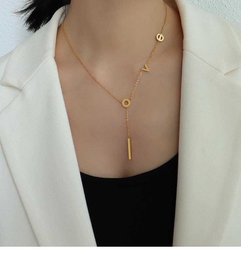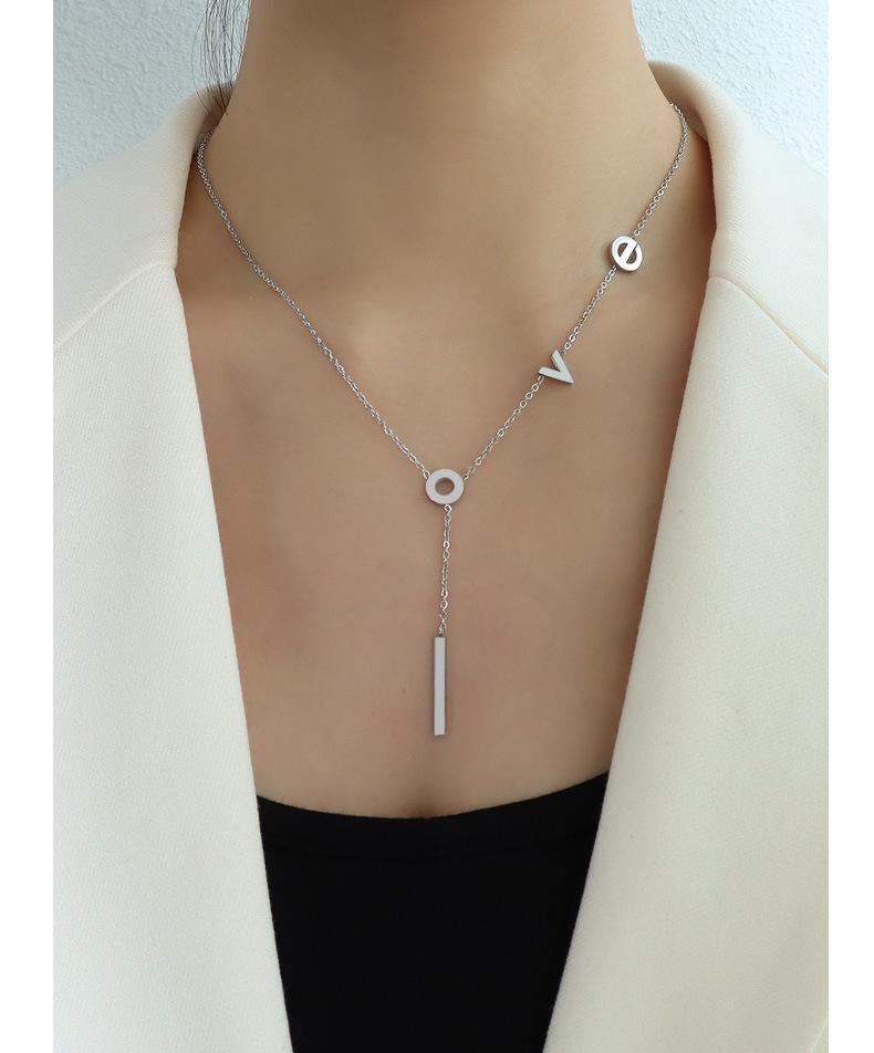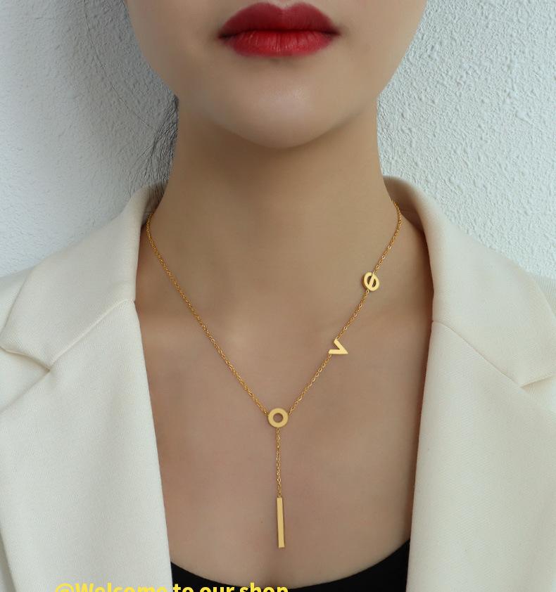 Corea acero titanio chapado en oro 18K que no se desvanece accesorios colgante carta de amor collar clavícula P025