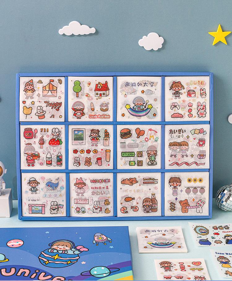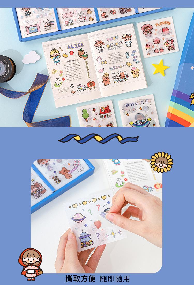 Caja de regalo con pegatinas de papel teñido, suave y esponjosa, serie Treasure Box, pegatinas decorativas con forma de mano para niña, juego de 13