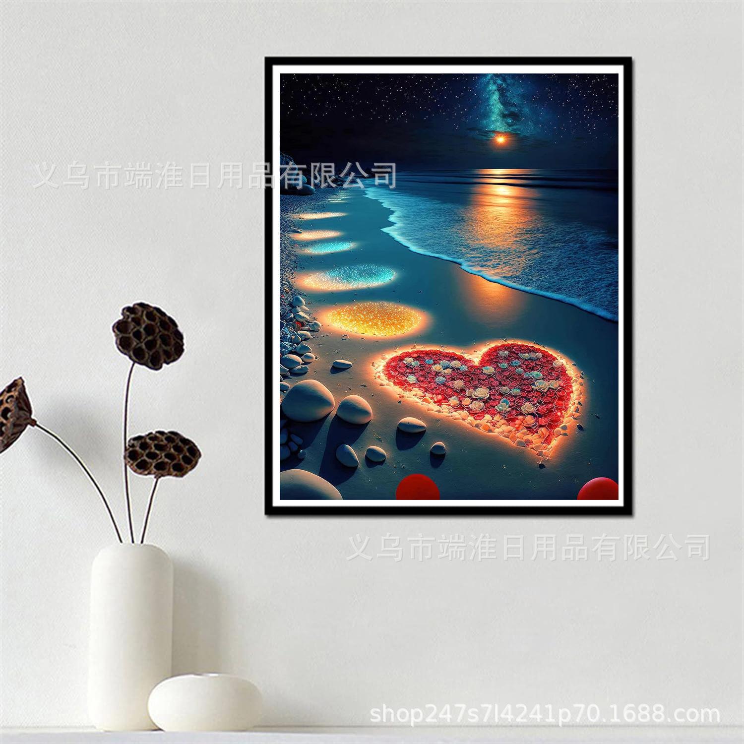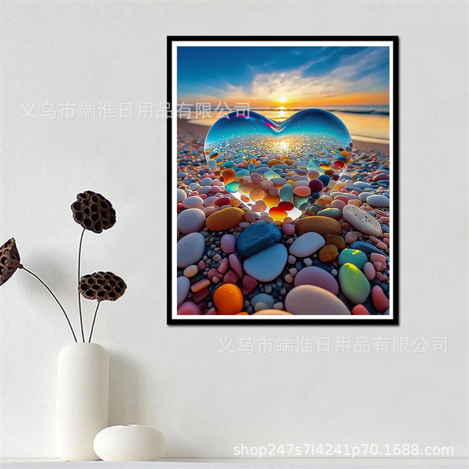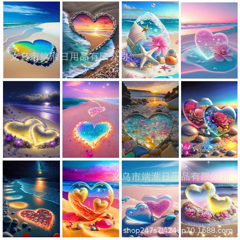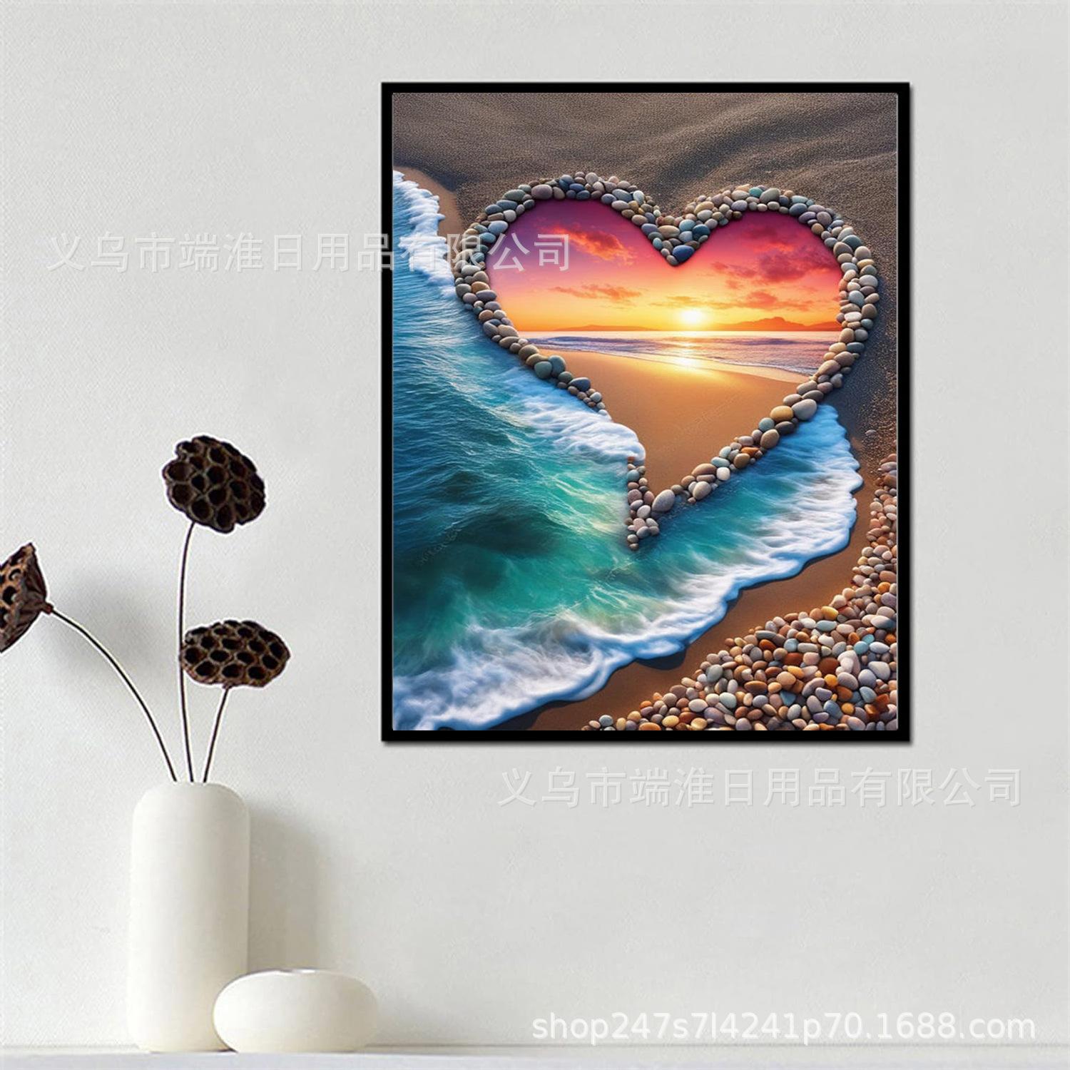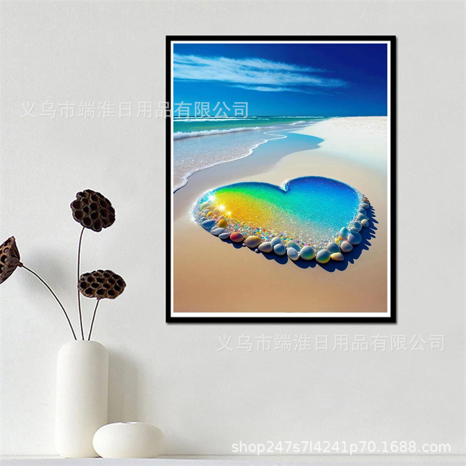 Kit de pintura de mosaico con diamantes 5D, pintura de paisaje de playa, kit de pintura decorativa de diamantes DIY, fabricantes de venta caliente transfronterizos