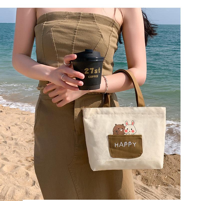 Bolso de lona bolso de mano para mujer mini bolso japonés 2024 nuevo bolsa para lonchera bolsa para el almuerzo una generación de cabello
