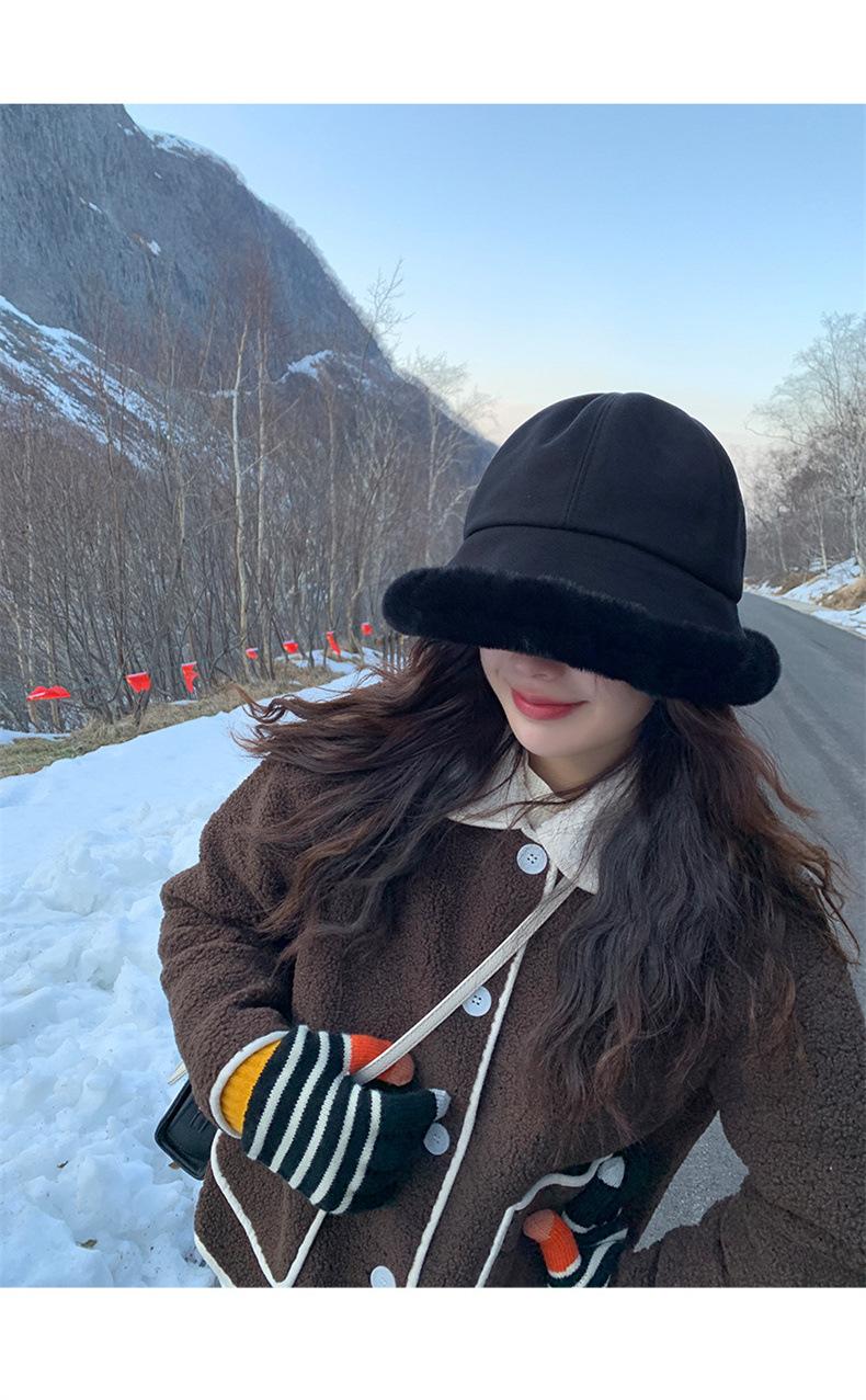 Estilo Coreano Ins Otoño e Invierno Nuevo Estilo Showface Sombrero de Pescador Pequeño para Mujer Cálido Espesado Orejeras a Prueba de Viento Estilo Extranjero Sombrero Mongol
